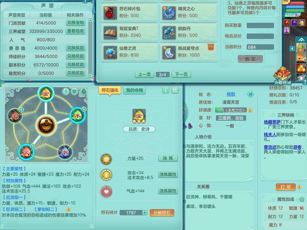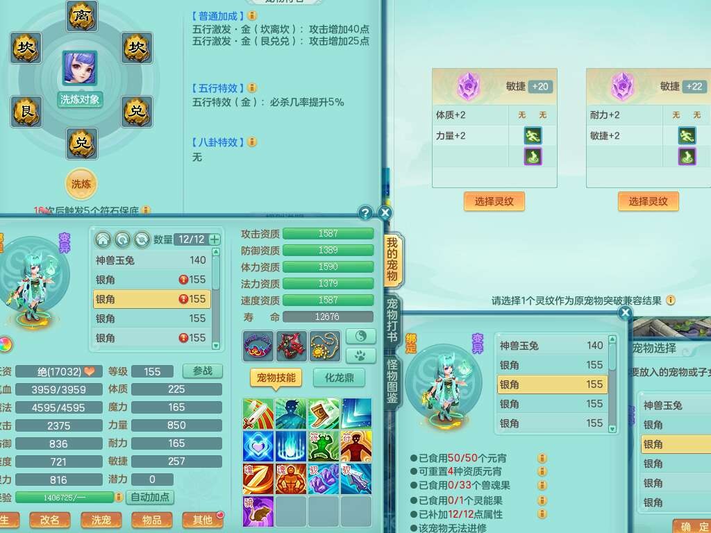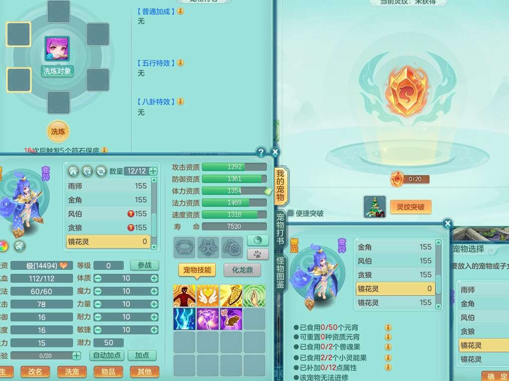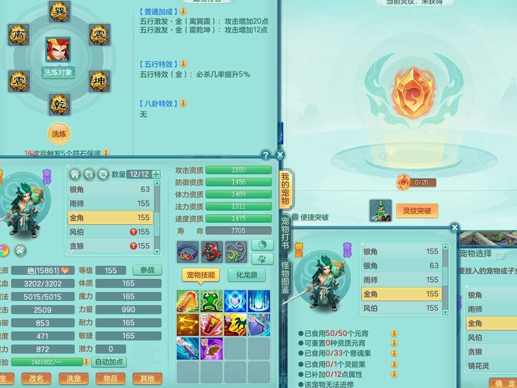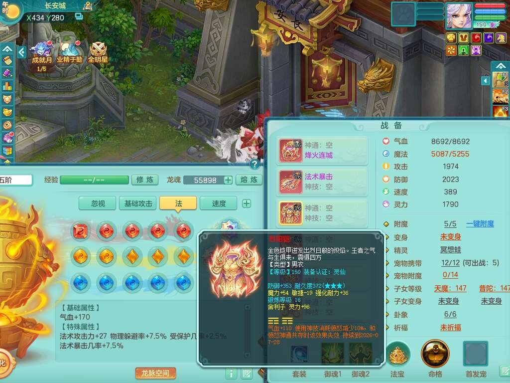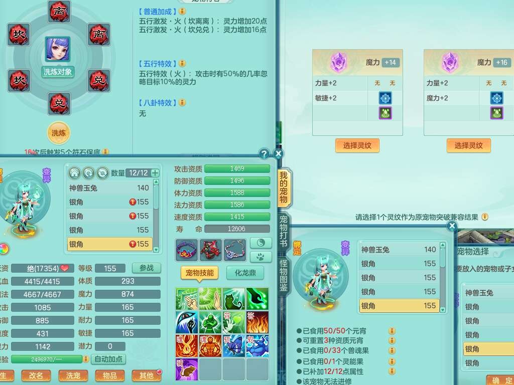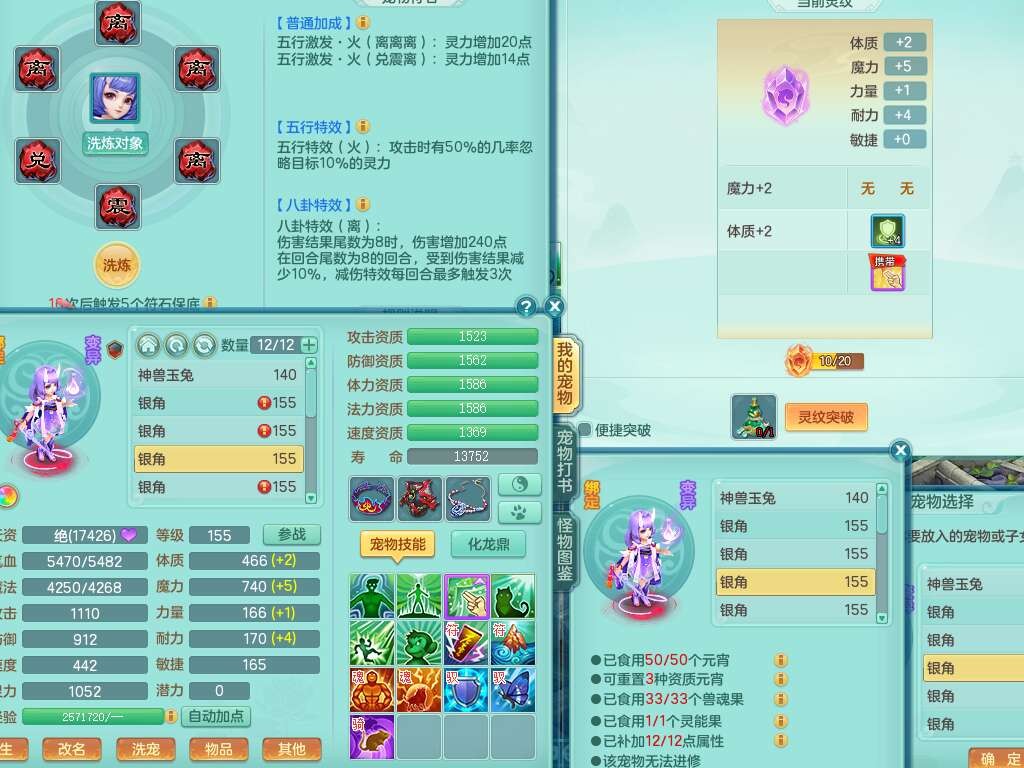 K22419超凡入圣159男魔王,1神兽,1只六技能镜花灵,法爆单加51武器,243易成长单加50链子,4.5基础鼎,4只满果子,仓库还有31个果子,双人坐骑,带3994金币,2416w神武币。