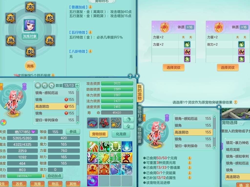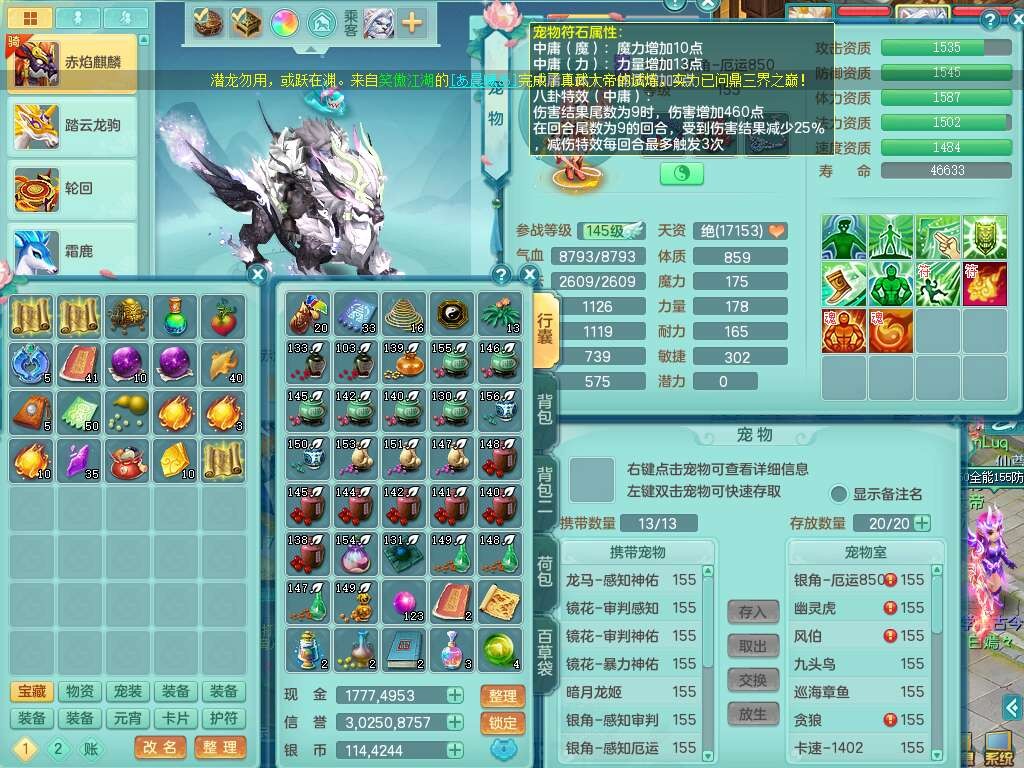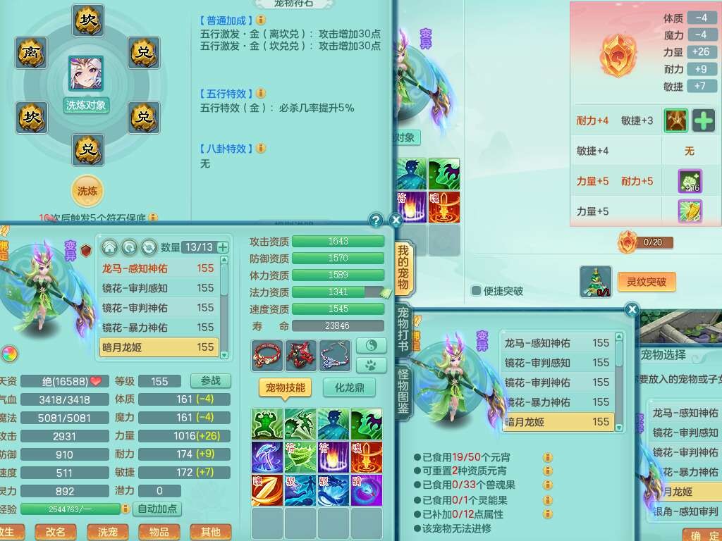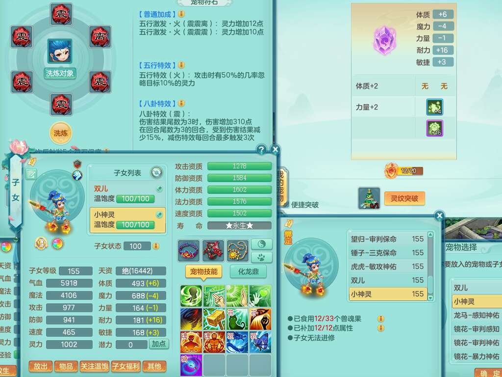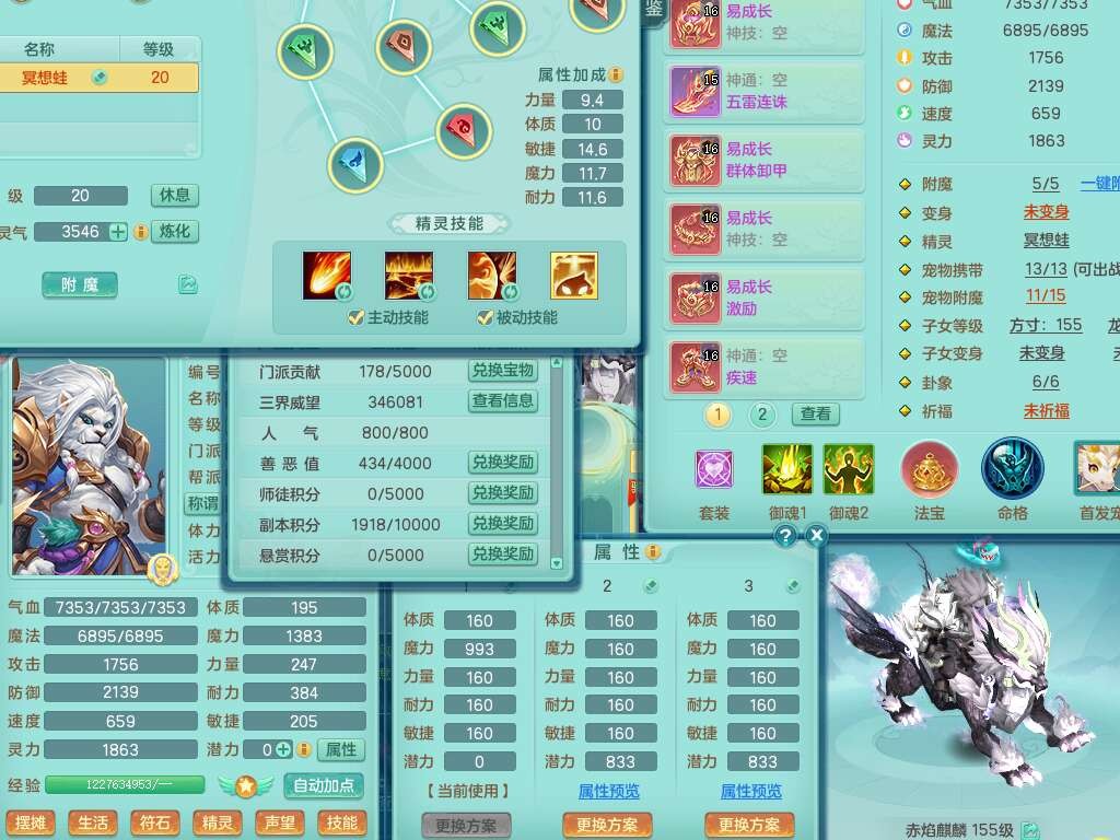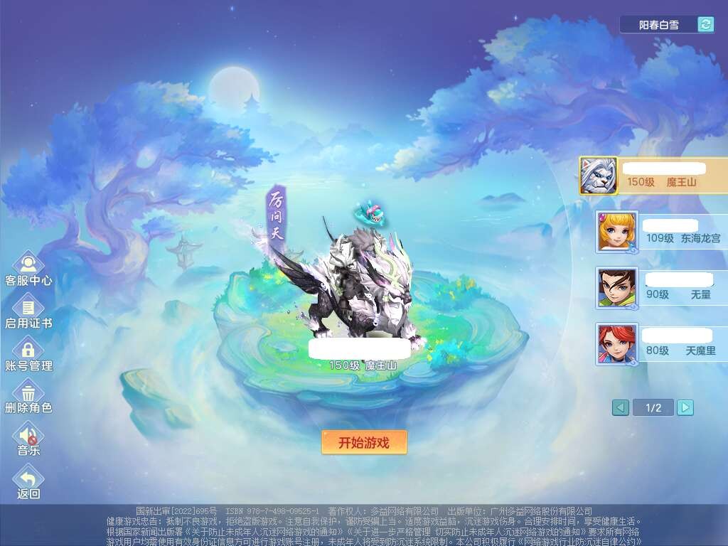 K22417阳春白雪159男魔王,精灵歌,1内胆神,1特殊(虎虎),3只六技能镜花灵,易成长单加51头,五雷单加武器,易成长群体卸甲衣服,262易成长单加50链子,易成长野兽51腰带,有法缭鞋子,274易成长链子,5.0基础鼎,2个五字,5只满果子,2只双人坐骑,有35个神兽内丹碎片,30天月卡。