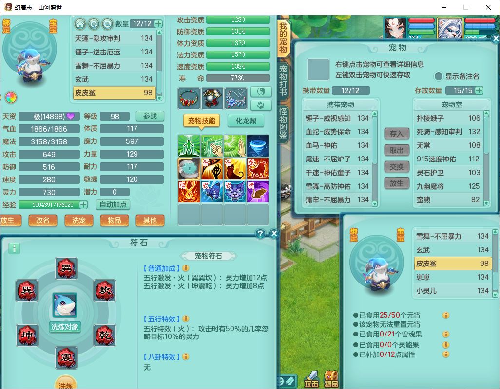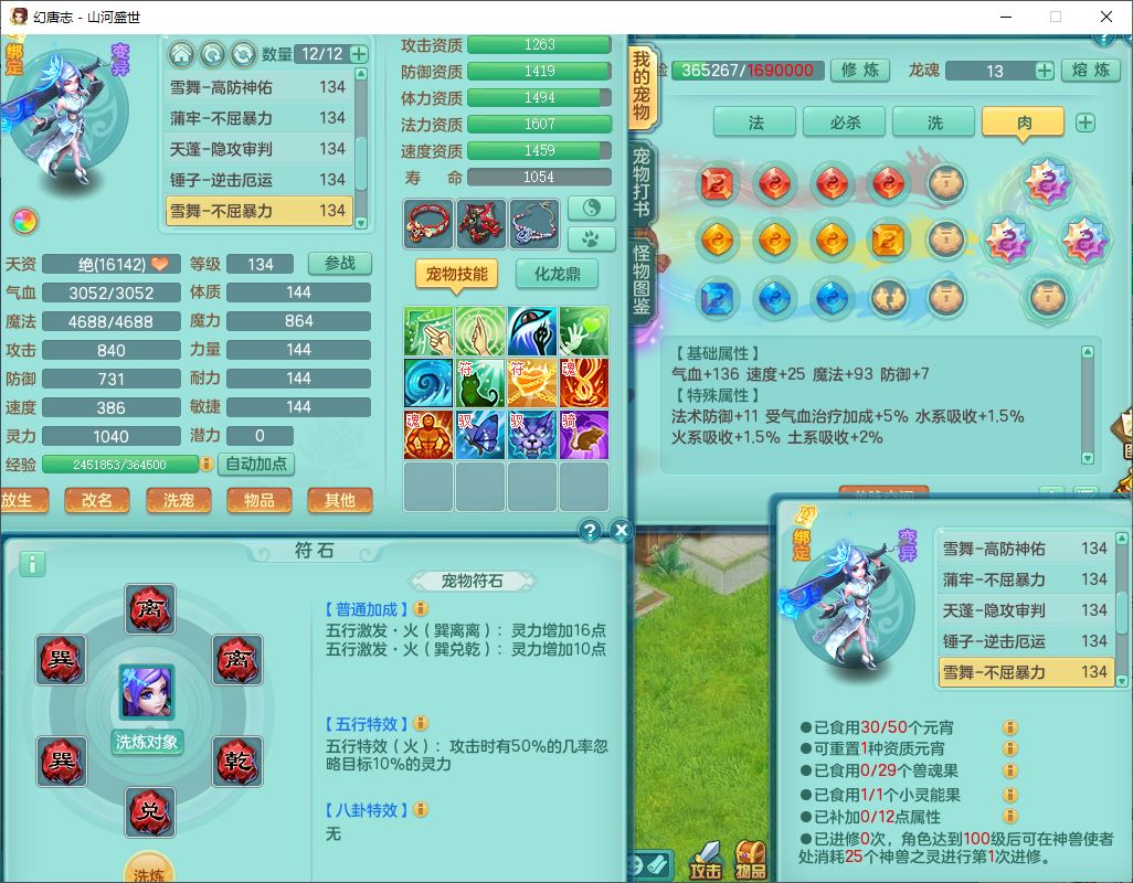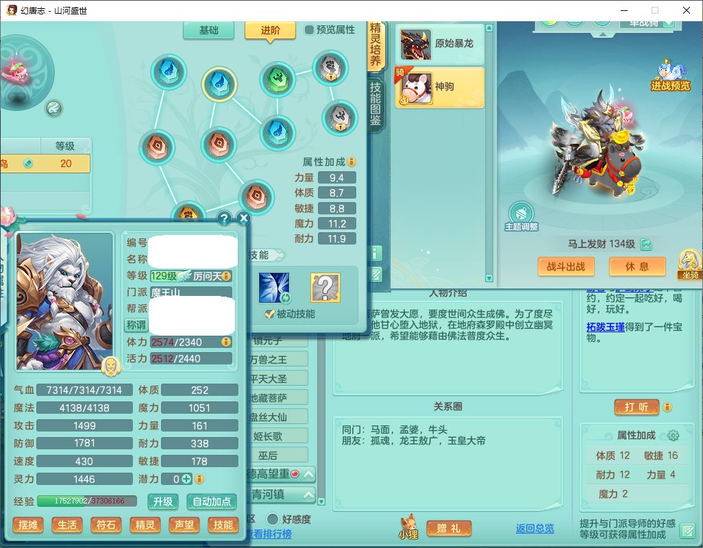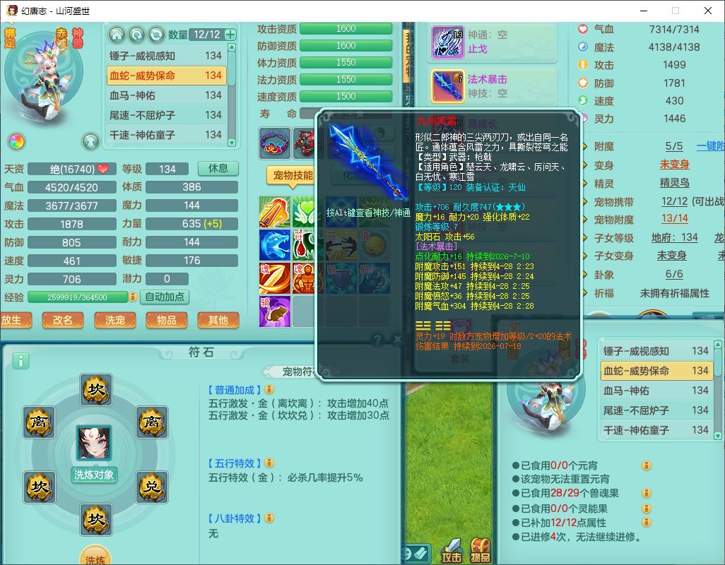 62451山河盛世129男魔王【马上发财+暴龙逍客+火焰之力+西瓜冰】18j小精灵,2内(1青蛇)1龙马(无内)1金炉1童子1九幽,16只成品满高书宝宝,2宠皮2孩子(地府+龙宫),装备齐全,法爆武器,愤怒腰带,Y项链,五雷鞋子,鼎2.5,聚灵五件套,147天月卡,永久背饰、精灵皮肤,仓库多染色、礼包存货,4000多金币,65个内丹碎片