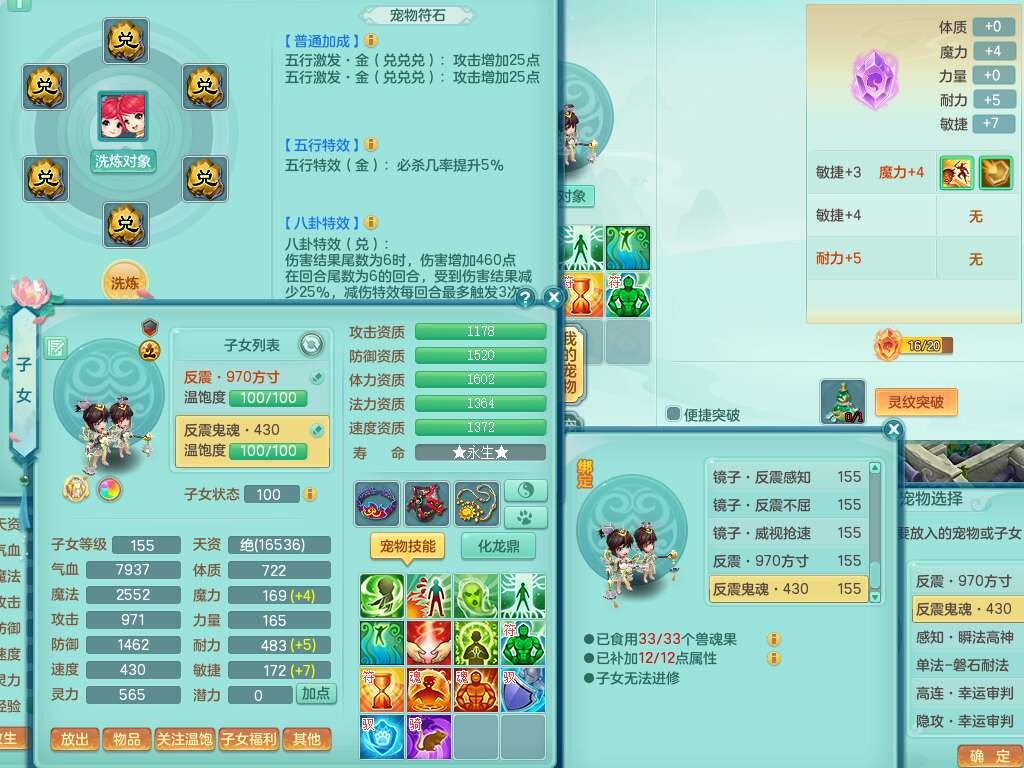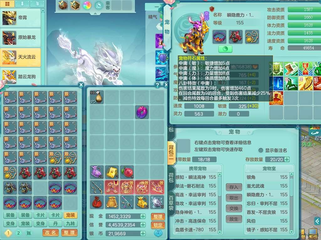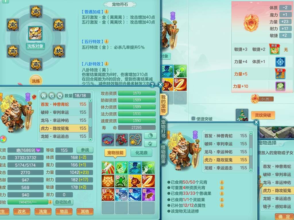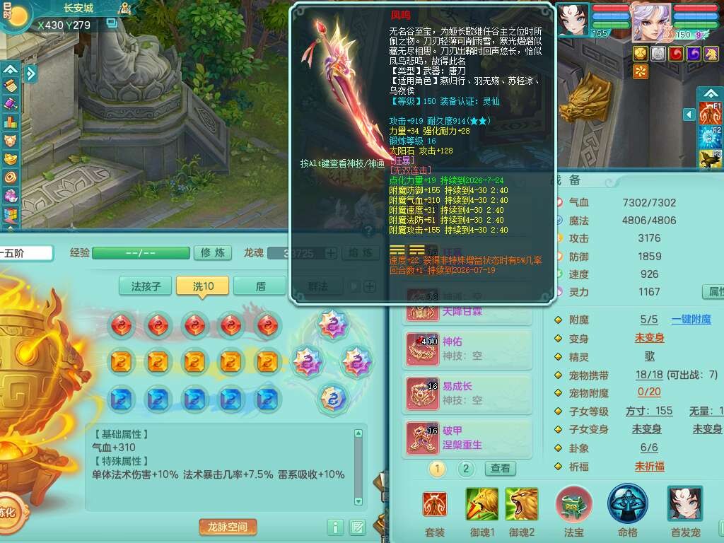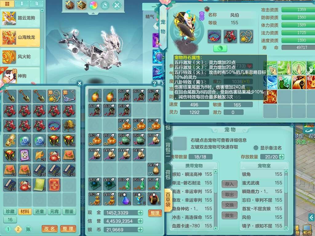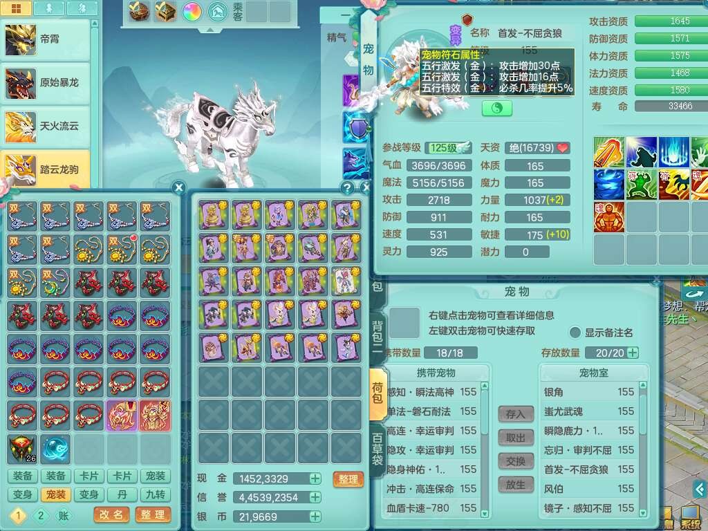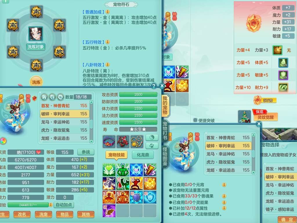 J22440风驰电掣159男万兽,精灵歌+舞,8龙4内胆神(2蛇1马),2破镜,【20只觉醒,已潜龙】,4位靓号ABAB不含4,4宠皮,1特殊(雷光),1只六技能龙姬,5只六技能镜花灵,6.0基础鼎+70攻、280血,双破甲,破甲单加头,破甲慈航鞋子,919狂暴破血武器,有双易成长崩山单加51鞋子,可玩法系,法暴单加53武器,法缭野兽衣服,五雷鞋,275易成长单加项链,266易成长单加54项链,回春封锁武器都有,15个永久格子,13个纯六字,6个五字,30只+满果子,宠排在榜,修炼在榜,永久称谓,7个坐骑,暴龙逍客+神驹心想事成+火焰之力武器皮肤,带159天月卡。