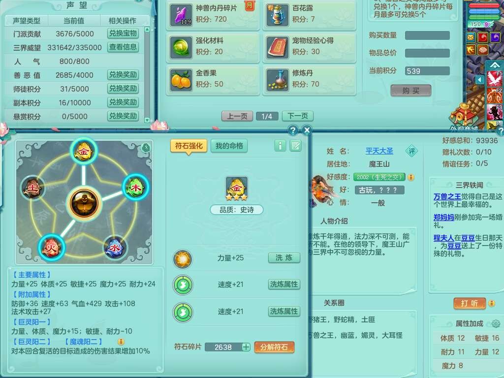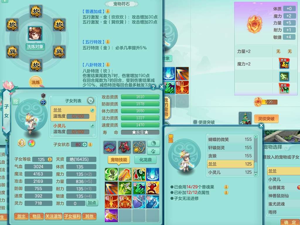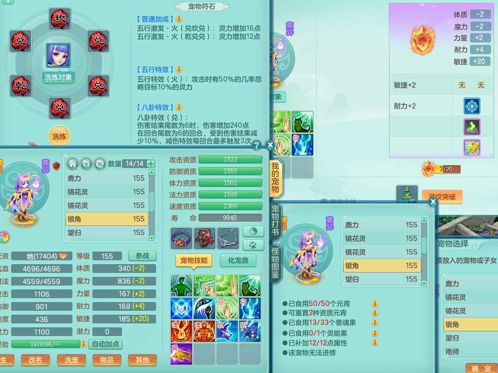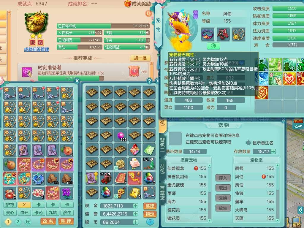 K22435任剑逍遥159男万兽,精灵歌,1龙没内,1内胆神,1只觉醒,2只六技能镜花灵,1只六技能龙姬,923狂暴单加55武器,崩山单加51衣服,愤怒单加56腰带,4.5基础鼎,综合6只满果子,仓库31神兽内胆碎片,山海烛龙坐骑。