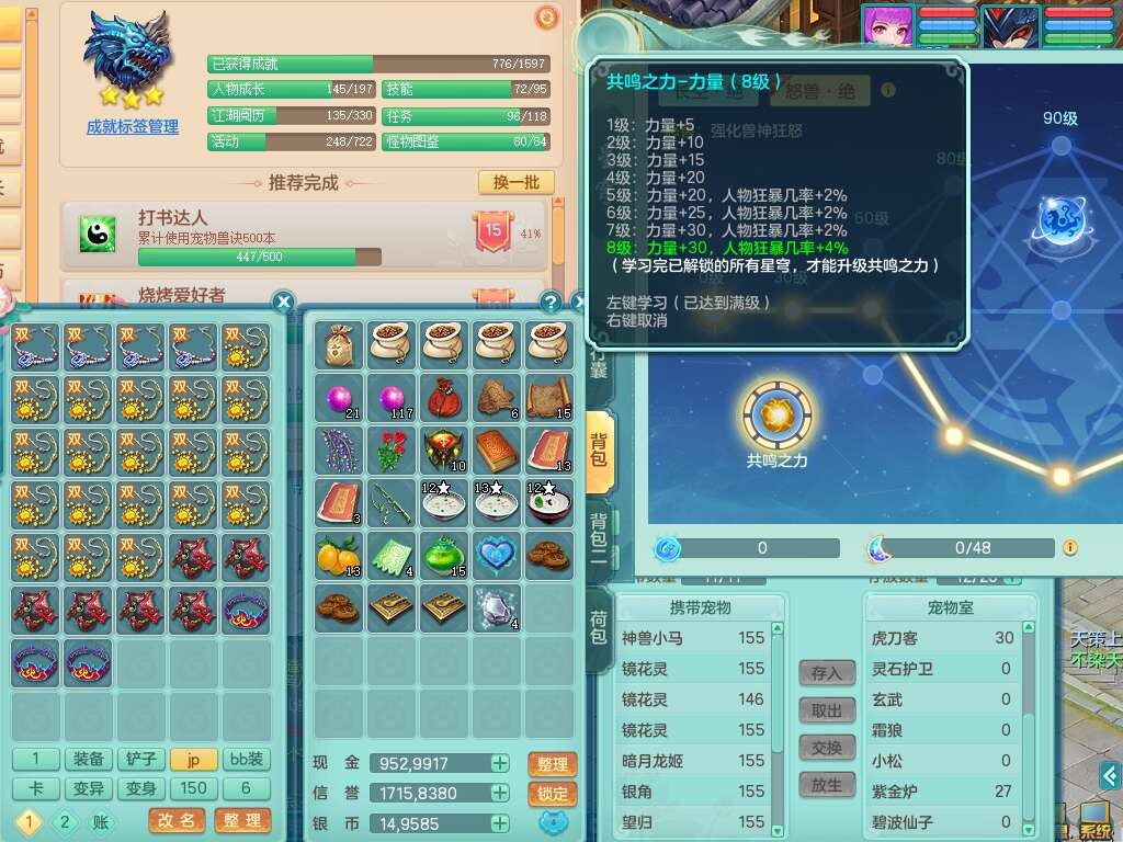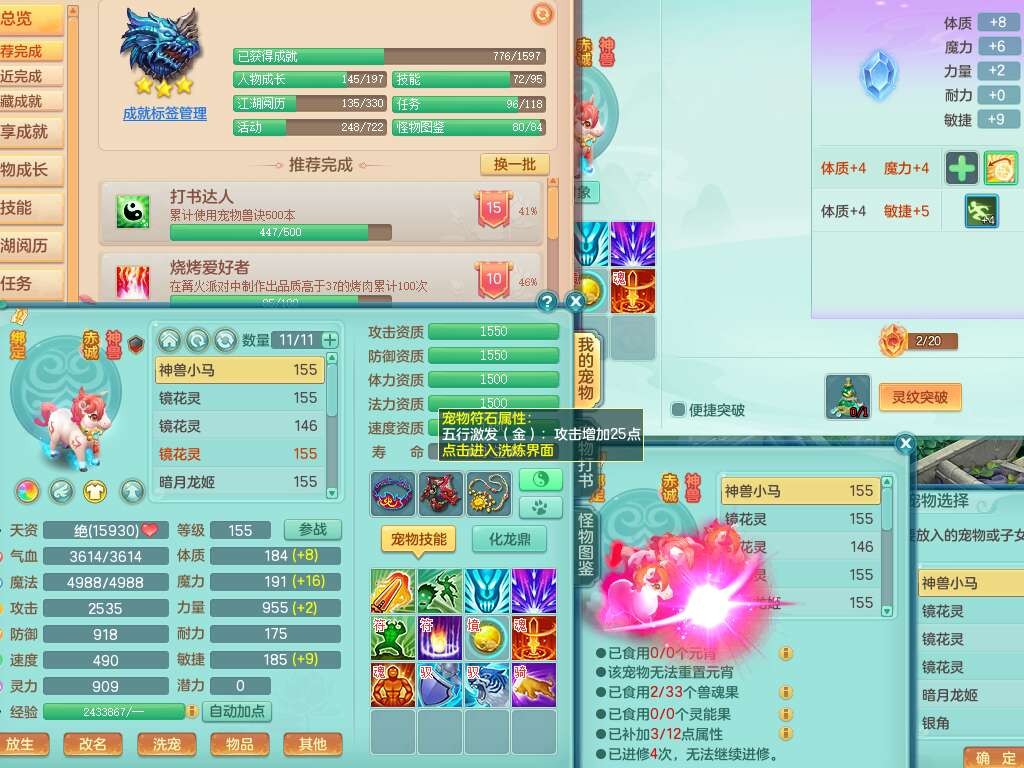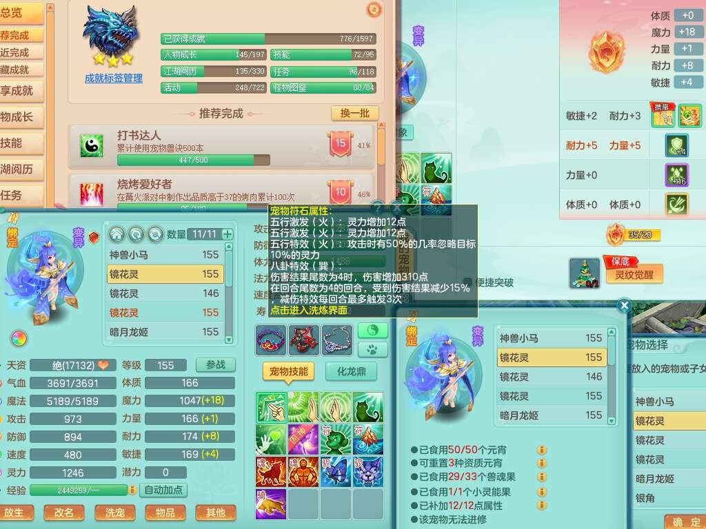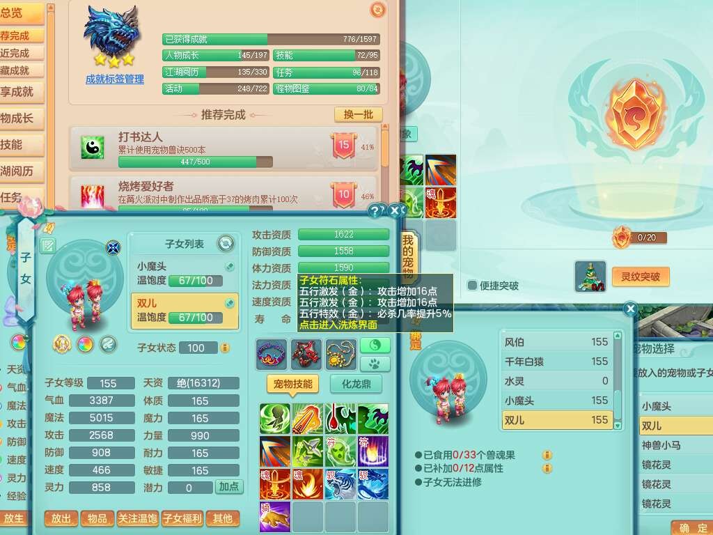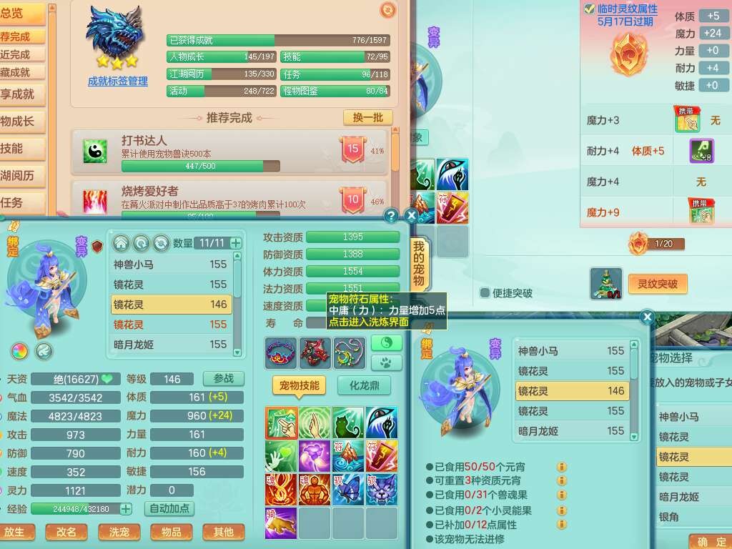 K22434锦绣河山159男万兽,精灵舞,1神兽,1破镜,1觉醒,2只六技能镜花灵,易成长崩山单加57头,893狂暴易成长单加武器,易成长慈航单加头,易成长单加55链子,易成长单加51腰带,易成长单加51鞋子,有917必杀武器,4.5基础鼎,1个五字,1只满果子,有31个神兽内丹碎片。➕159男无量,1神兽,1觉醒,1只六技能镜花灵,回春四海武器,坚毅净心术单加50链子,愤怒五特,带1280金币。➕155男龙宫,1只六技能镜花灵。➕157男方寸,4.5基础鼎。