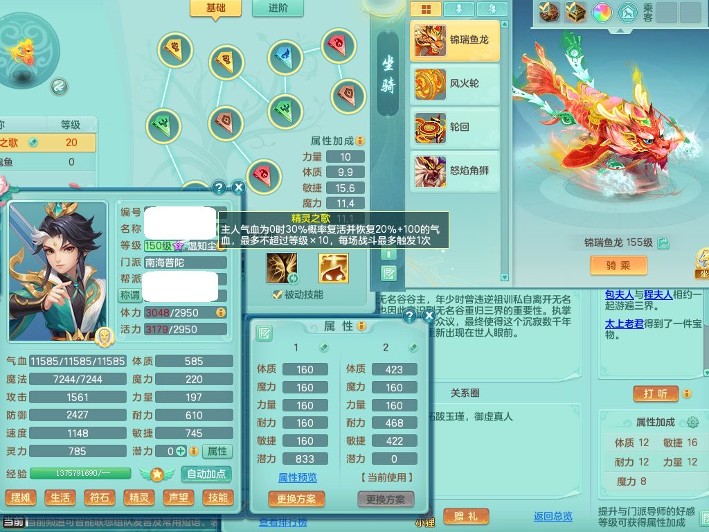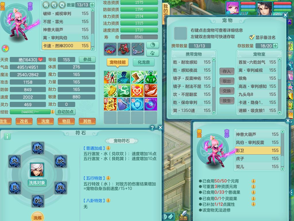 jt10486九天揽月159男普陀精灵歌,满级共鸣,1内丹神,4特殊(翻江/羽袭/号角/堕天兽决)3镜花,10只满果子6觉醒7个纯6字,愤怒5特,鼎5.0+70,32天月卡,庭院153房屋151,28仙兽灵,25内丹碎片,双人坐骑