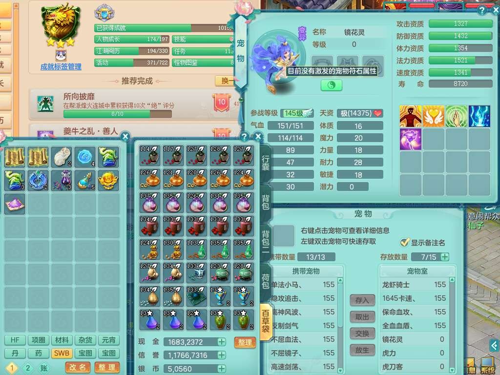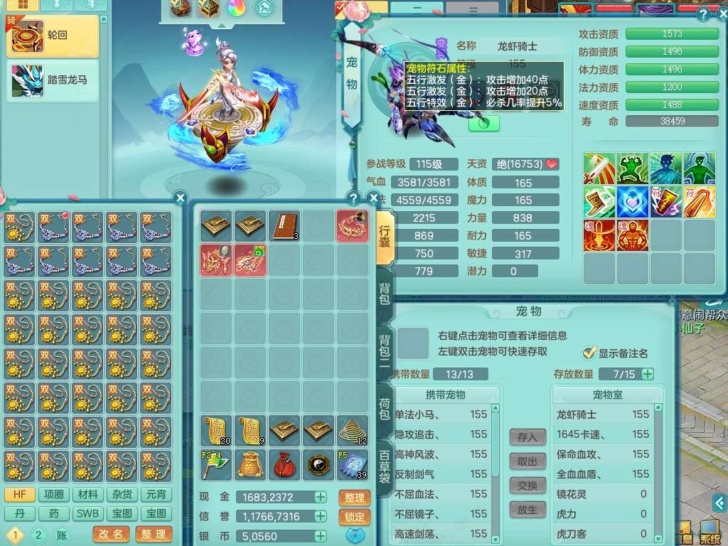 K22445花好月圆159女地府,1神兽马,2觉醒,1特殊(流星),1只六技能龙姬,易成长卸甲单加50头,易成长笑里单加衣服,易成长四海单加链子,愤怒易成长腰带,易成长明镜非台,五特,1个纯六字,3只满果子。