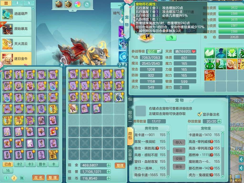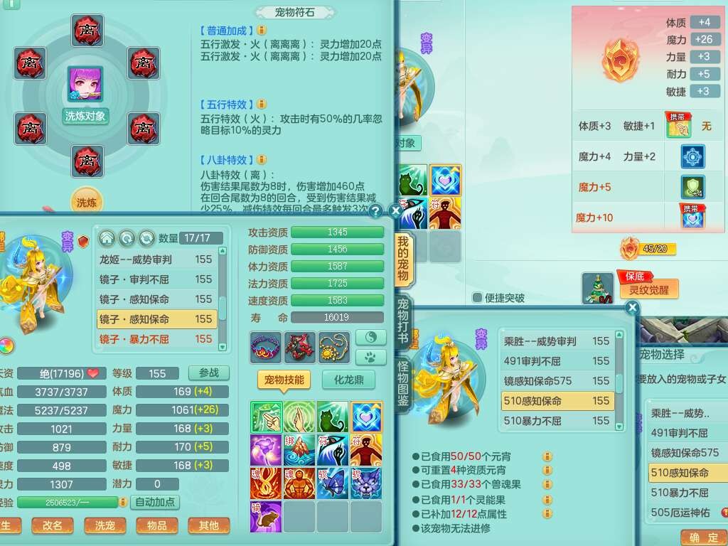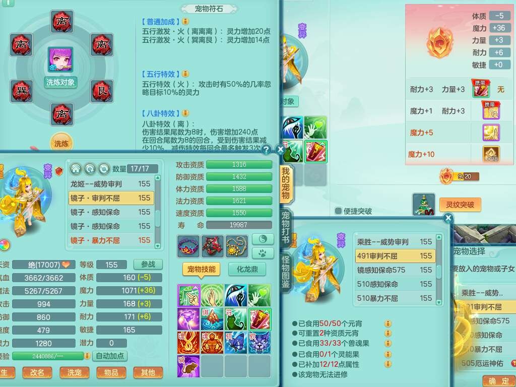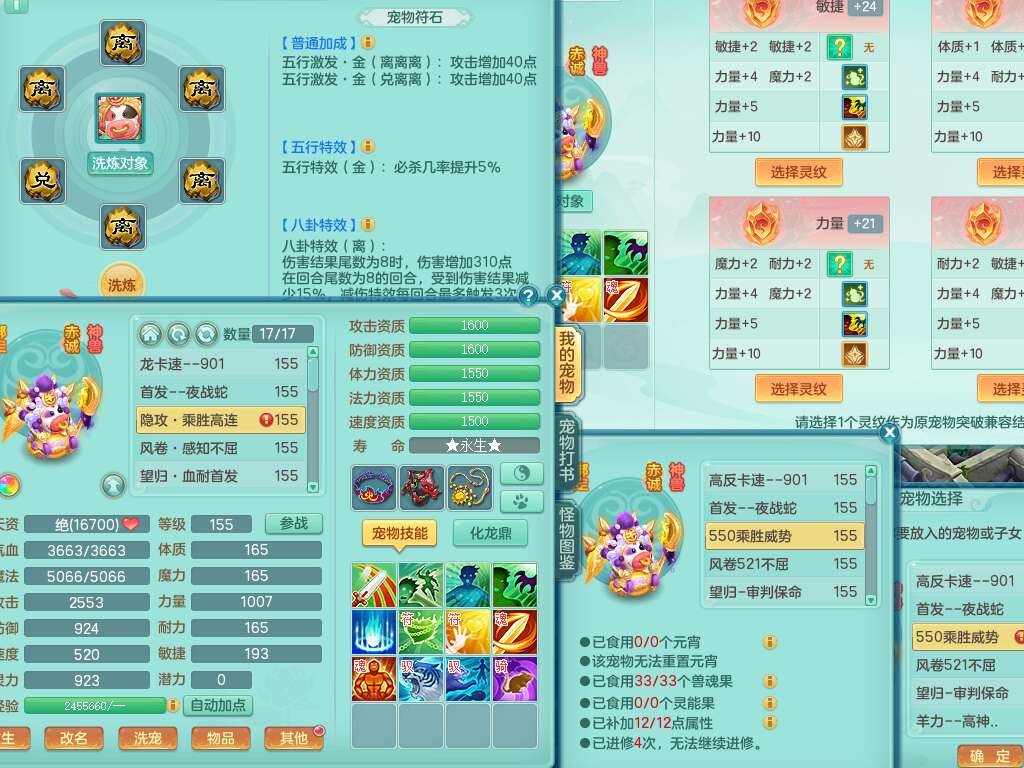 A22447今年勇159男天宫,精灵歌,1龙2内胆神,1破镜,【15只觉醒,已潜龙】,5宠皮,2特殊(善恶,雷厉),6只六技能镜子,2只六技能龙姬,爆炸物理装备,双破甲,破甲头,破甲单加55鞋子,三红神器18段928匠心易成长必杀单加武器,崩山单加51衣服,神佑单加56项链,有易成长野兽单加56鞋子,格挡玉清衣服,迅捷四海鞋子,法缭仙衣云裳单加鞋子,5.5基础鼎,15个永久格子,9个纯六字,3个五字,综合27只满果子,宠排在榜,3个双人,暴龙逍客+西瓜冰,有安全证书,介意勿扰。