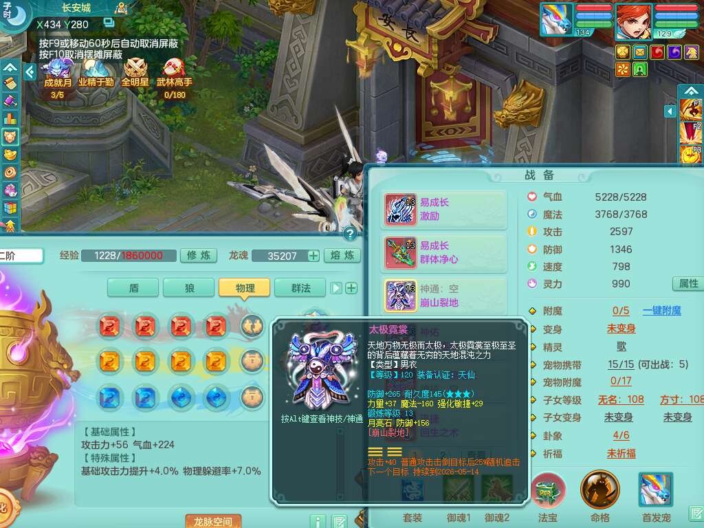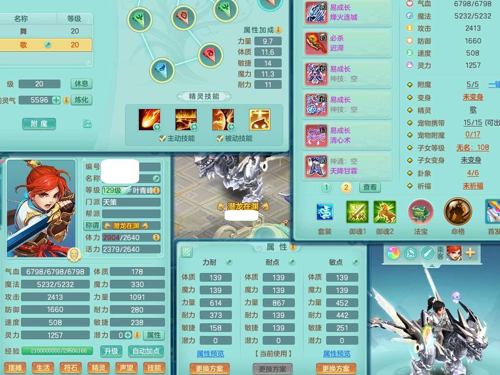 K22433七窍玲珑129男天策,精灵歌 +舞,6龙3内胆神(2蛇),【10觉醒,已潜龙】,4位靓号,6宠皮,易成长野兽单加44头,721易成长晶清单加41武器,崩山单加衣服,神佑破血单加46链子,愤怒易成长腰带,迅捷回生之术单加46鞋子,有212易成长单加43链子,4.0基础鼎+56攻+224血,13个永久格子,17个纯六字,1个五字,28只满果子,仓库还有64个果子,宠排在榜,3只双人坐骑,暴龙泰坦+西瓜冰武器,带14514金币,640w神武币。➕129女盘丝,1神兽马。