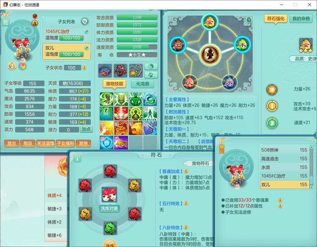 52703任剑逍遥159男天策【潜龙号】精灵歌,2套星穹,8龙(1换,1破境)3内(2青蛇)3镜花2望归2龙姬3.特殊(影袭/兽决风卷/双星),25觉醒7宠皮20六字(1洗练珠)1五字1四字26只满果子,18格子,12红装备,Y破血头,Y止戈武器,格挡崩山衣服,Y神佑项链,愤怒Y腰带,迅捷四海鞋,单加法爆四灵武器,鼎6.0+70+280,冰晶庭院190房屋194,永久外观精灵皮肤,宠排在榜,1时装兑换券,1飞行双人坐骑