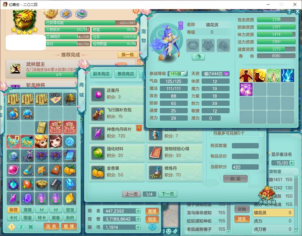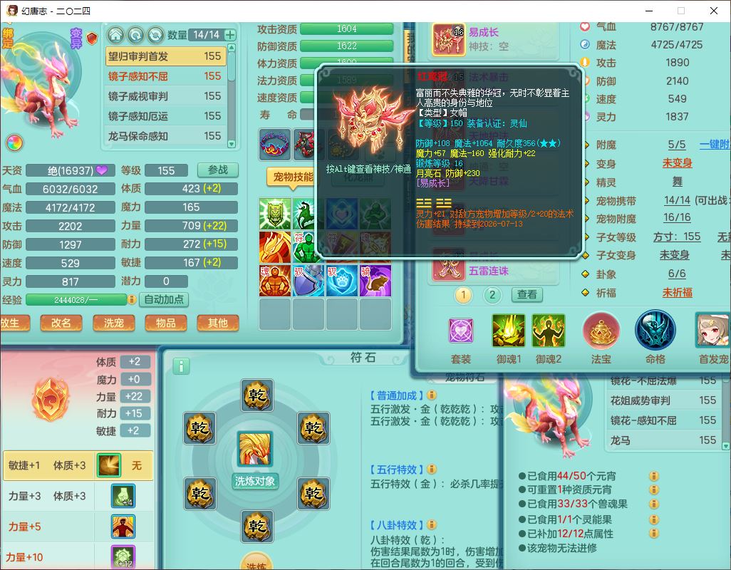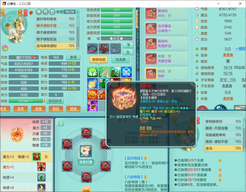 62454,2024区159女魔王【潜龙+心想事成+火焰之力+西瓜冰】精灵舞,5位靓号,3龙(2破境)3内(1青蛇1龙马,3破境)1望归3镜花1金炉1龙姬,11觉醒11宠皮(2幻灵果)8六字25字14四字17只满果子,9红装备,法爆心神武器,Y罗汉衣服,Y五雷鞋子,可出星辰之拥物理装,破甲明镜鞋子,狂暴群体迟滞武器,鼎5.5+70+280,163天月卡,,冰晶庭院156,永久外观精灵皮肤,47个仙兽灵,1仙兽内丹,3坐骑(1双人飞行)