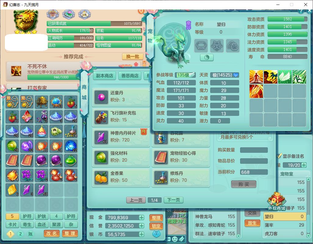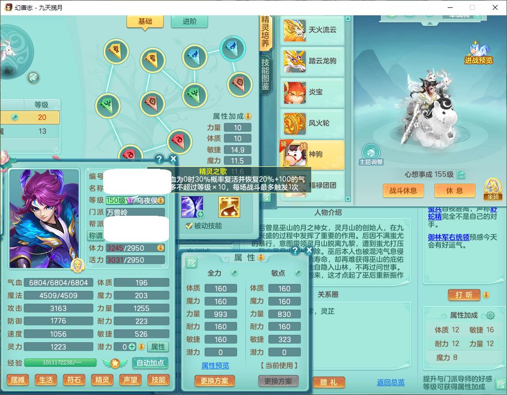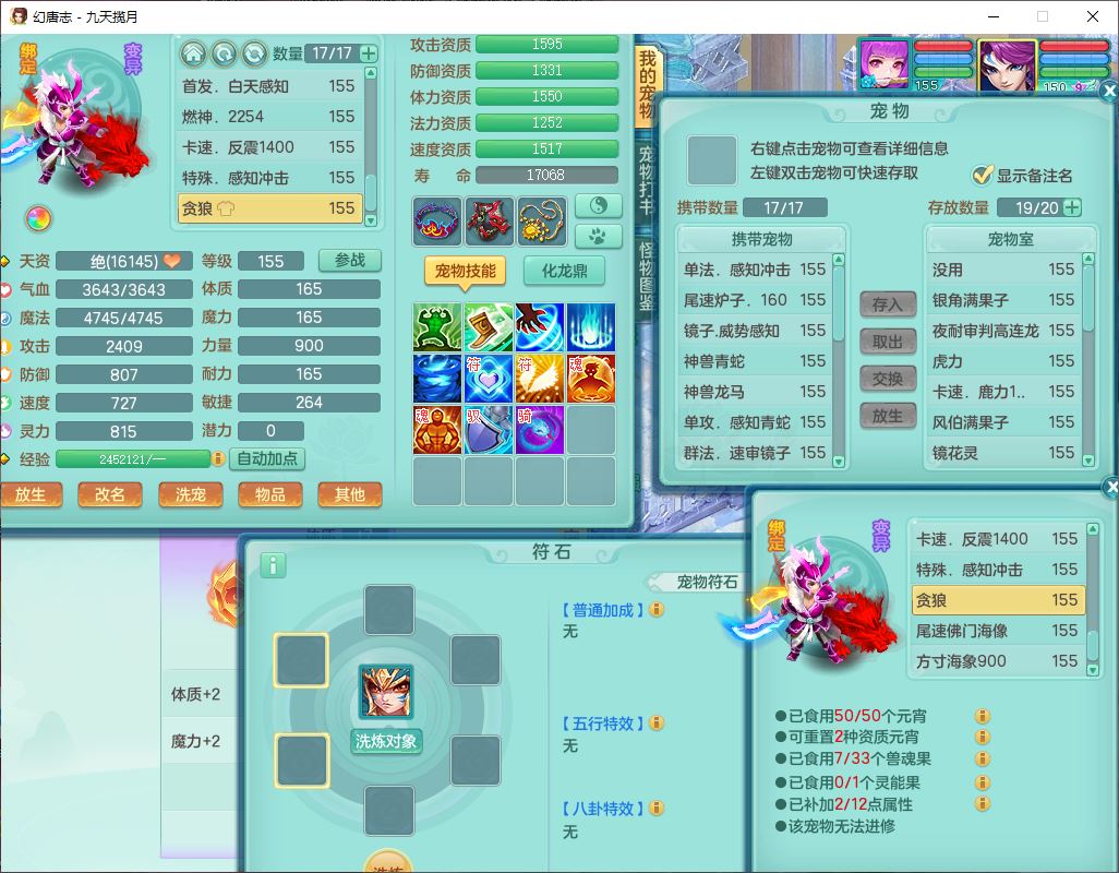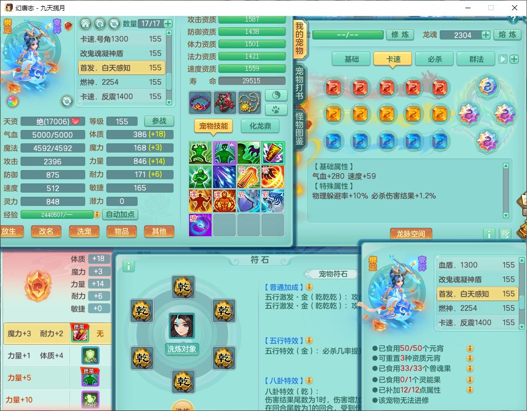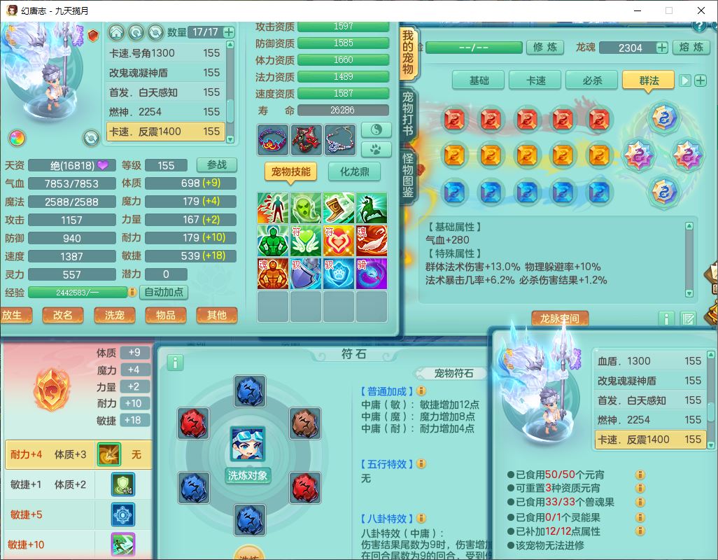 24368九天揽月159男万兽【心想事成+火焰之力+准潜龙号,差5条主符石1条附加】精灵歌,4位靓号,2龙(1换)2内丹青蛇1龙马(无内)2龙姬4镜花5特殊(战争、流星、虎虎,兽决灵傀、逆龙)1金炉,8觉醒4宠皮7六字1五字5四字23只满果子,9红全单加星辰之拥装备,狂暴破体武器,震怒崩山腰带,破甲慈航鞋子,有辅助装,愤怒腰带,Y激励帽子,鼎5.5+70+280,2套符石,133天月卡,冰晶庭院165房屋152,永久外观、精灵皮肤,53个内丹碎片,5坐骑(2双人),带2个150奶粉