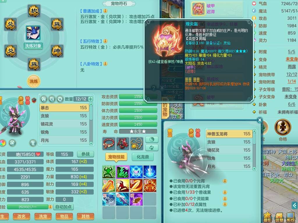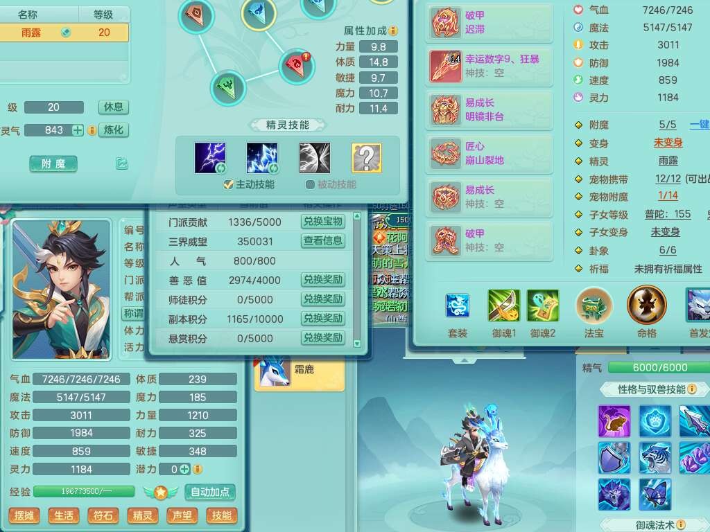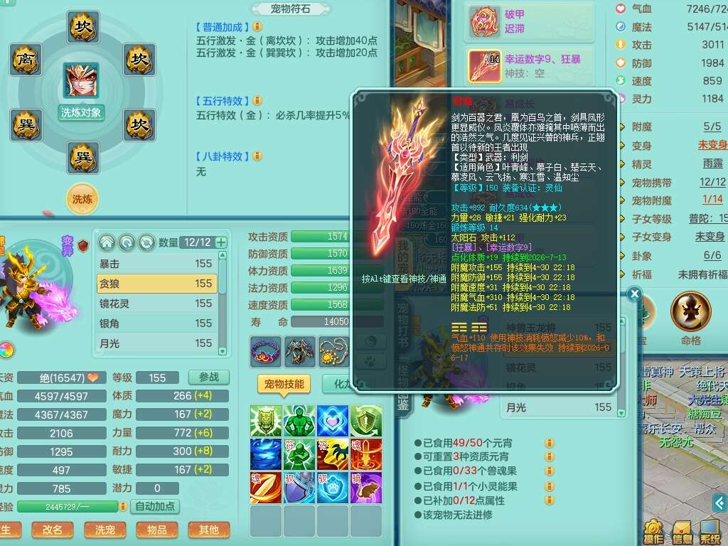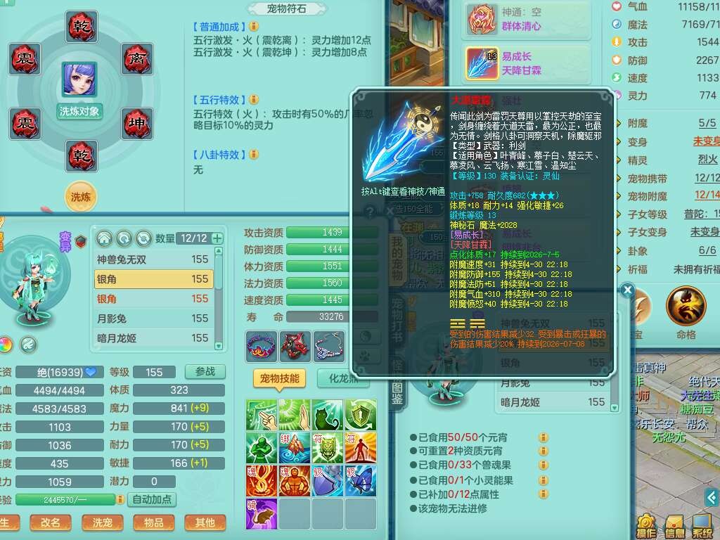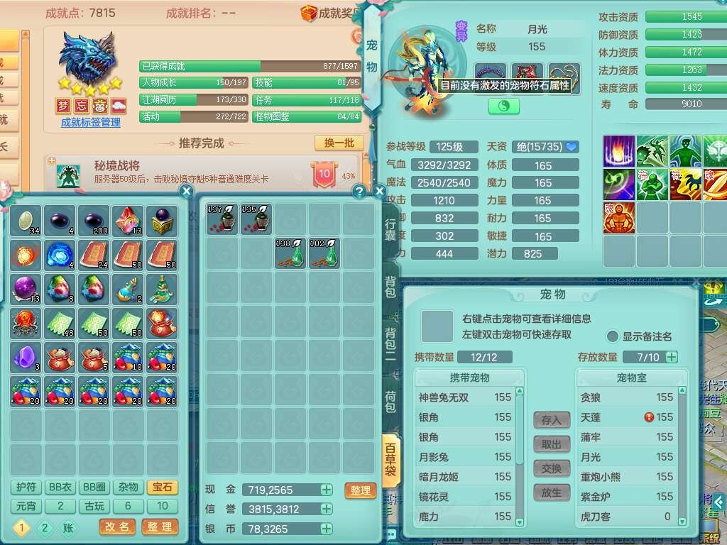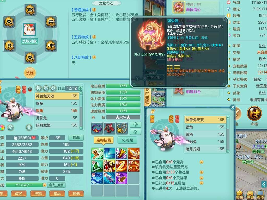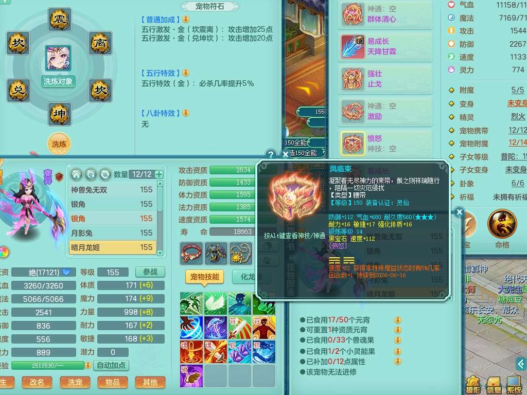 s22464天下无双三开号,159男无量,精灵舞,1神兽(仓库31神兽内丹碎片),1只觉醒,2只6技能龙姬,1只6技能镜花灵,愤怒5特。➕159男天宫,1神兽(仓库30神兽内丹碎片),1只6技能镜花灵,双破甲,破甲迟滞头,破甲单加鞋子,匠心崩山链子。➕159男天宫,1神兽(仓库31神兽内丹碎片),1只觉醒,1只6技能镜花灵,法暴单加56武器,格挡慈航单加53衣服,易成长群体守护单加55腰带。