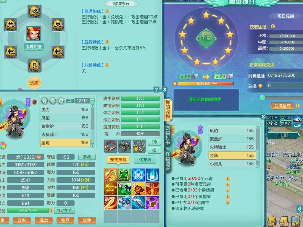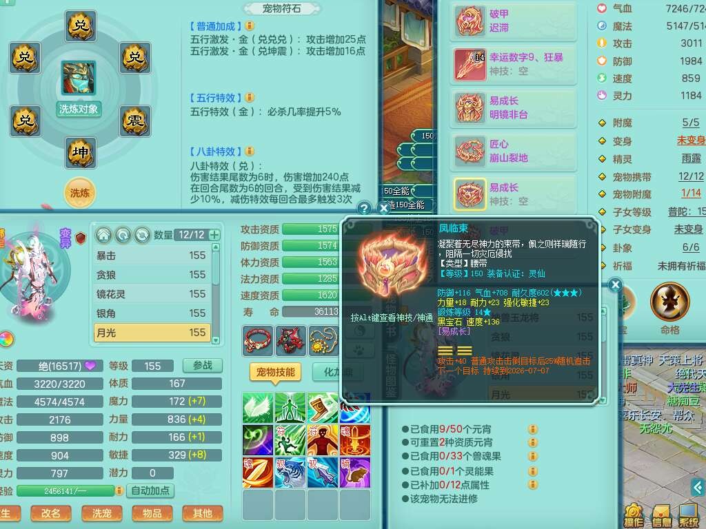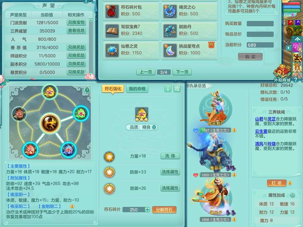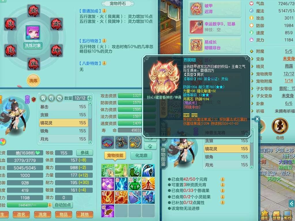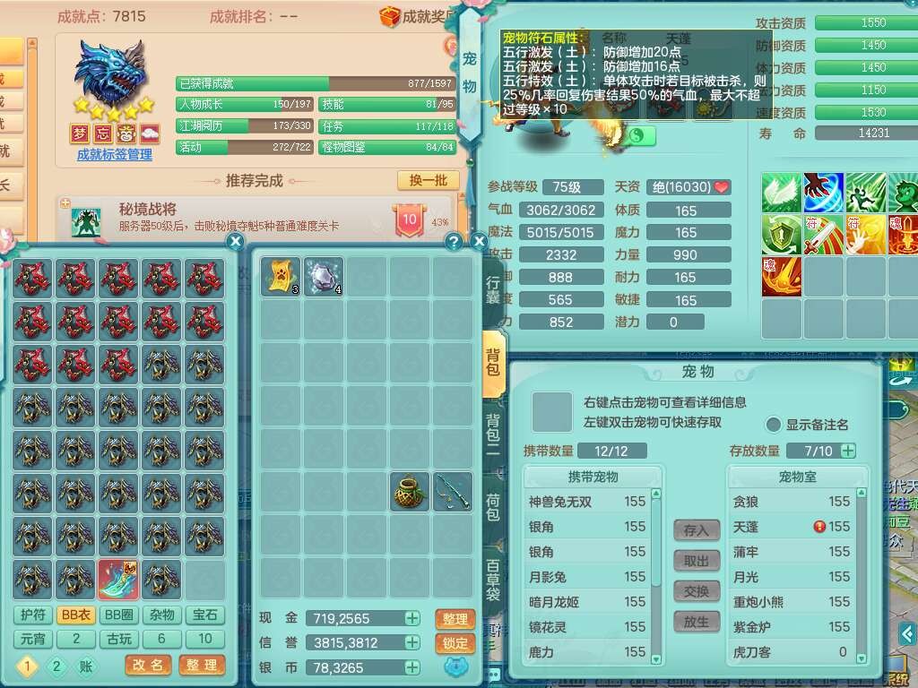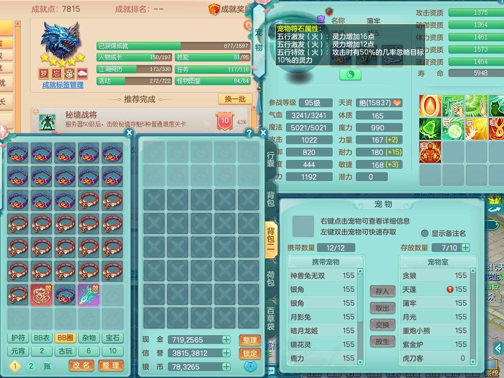 s22464天下无双三开号,159男无量,精灵舞,1神兽(仓库31神兽内丹碎片),1只觉醒,2只6技能龙姬,1只6技能镜花灵,愤怒5特。➕159男天宫,1神兽(仓库30神兽内丹碎片),1只6技能镜花灵,双破甲,破甲迟滞头,破甲单加鞋子,匠心崩山链子。➕159男天宫,1神兽(仓库31神兽内丹碎片),1只觉醒,1只6技能镜花灵,法暴单加56武器,格挡慈航单加53衣服,易成长群体守护单加55腰带。