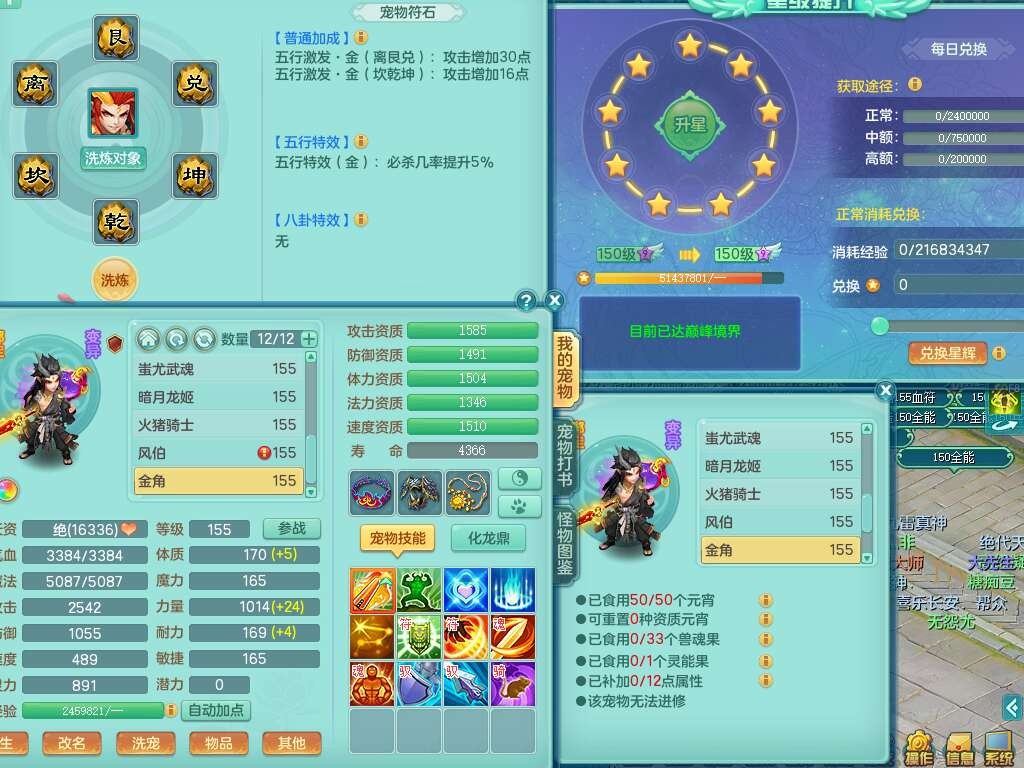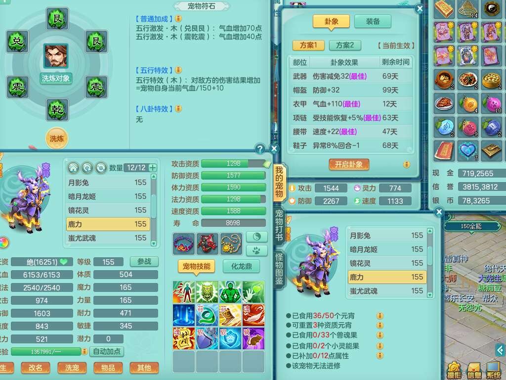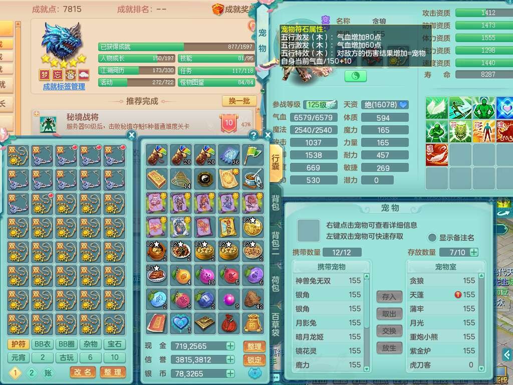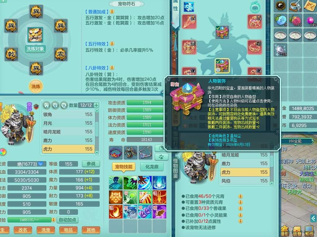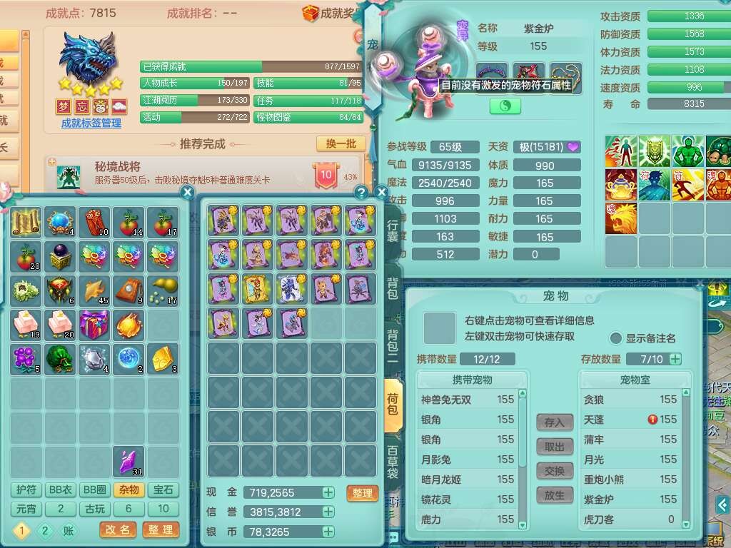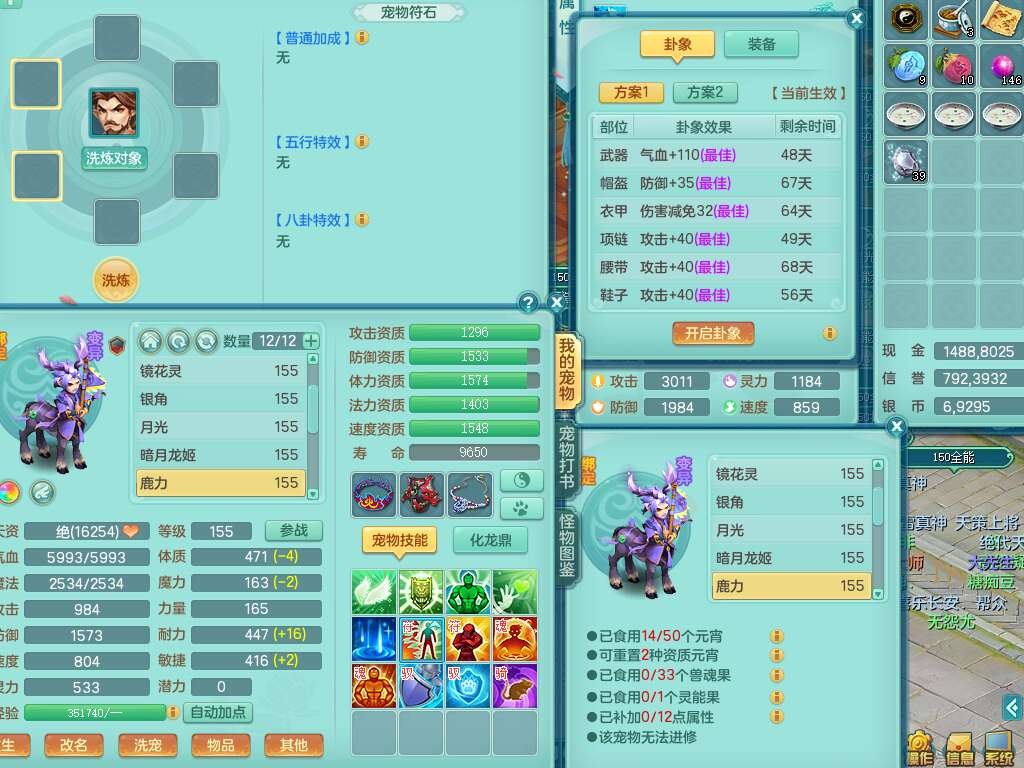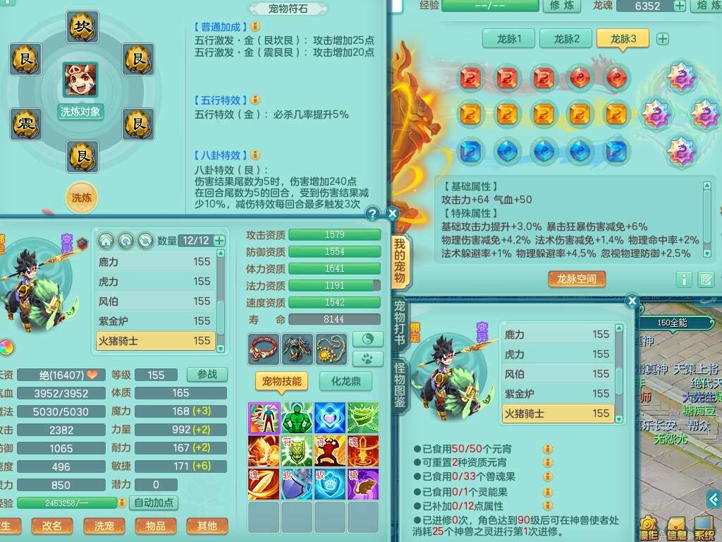 s22464天下无双三开号,159男无量,精灵舞,1神兽(仓库31神兽内丹碎片),1只觉醒,2只6技能龙姬,1只6技能镜花灵,愤怒5特。➕159男天宫,1神兽(仓库30神兽内丹碎片),1只6技能镜花灵,双破甲,破甲迟滞头,破甲单加鞋子,匠心崩山链子。➕159男天宫,1神兽(仓库31神兽内丹碎片),1只觉醒,1只6技能镜花灵,法暴单加56武器,格挡慈航单加53衣服,易成长群体守护单加55腰带。