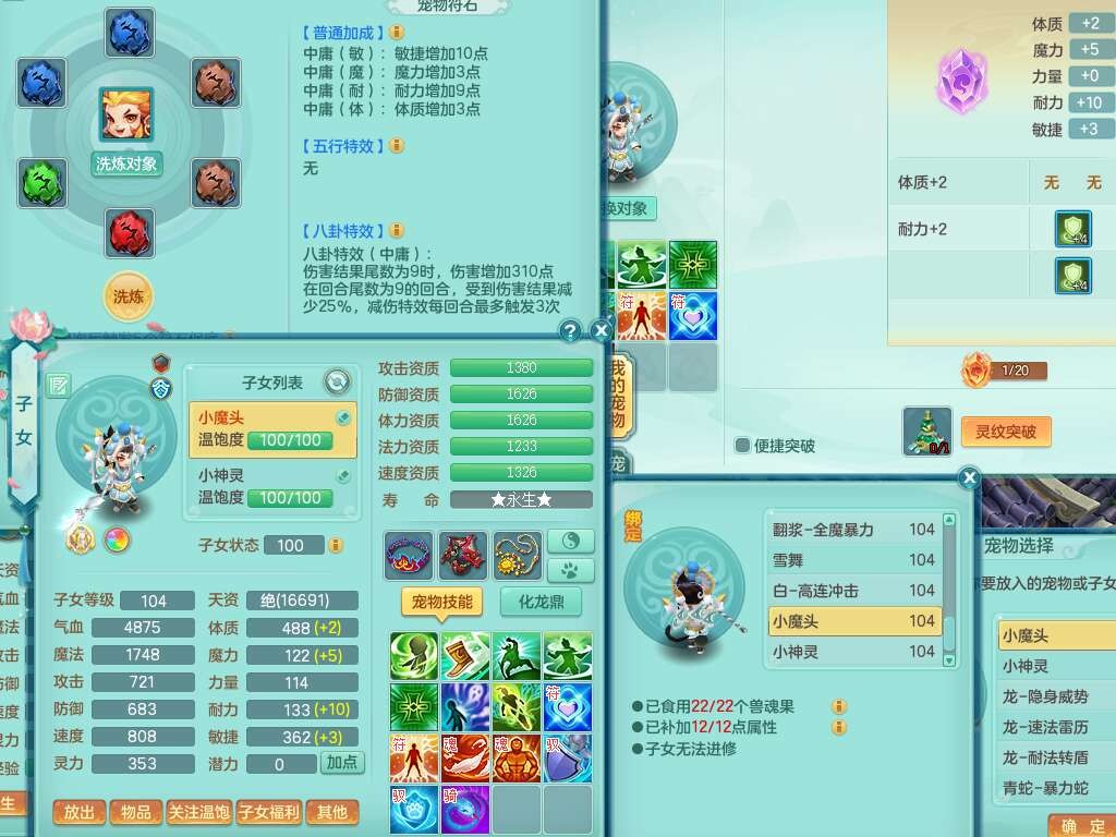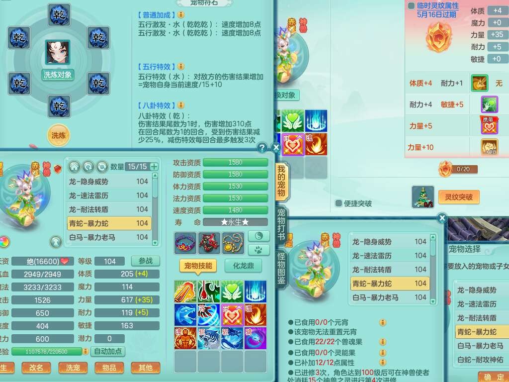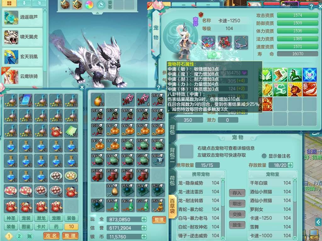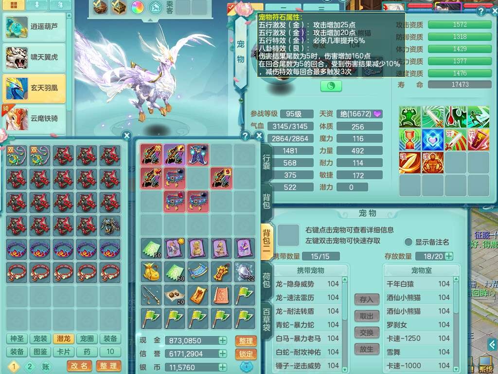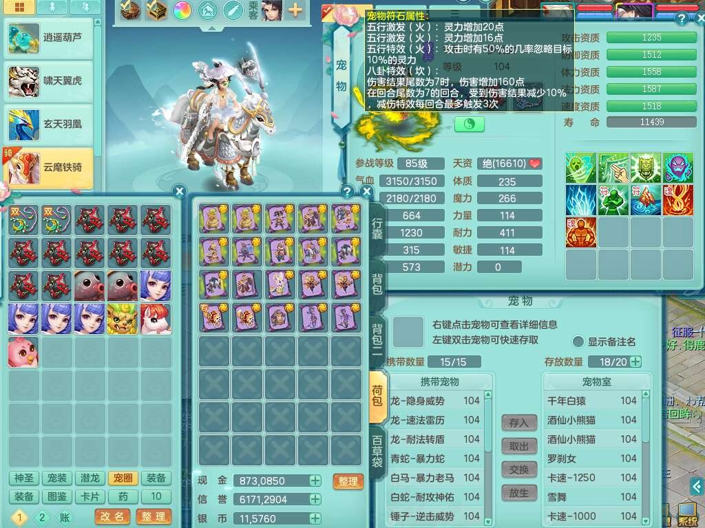 S22457风华绝代99男无名谷,3龙5内胆神(2蛇1马),2破镜,【15觉醒,已潜龙】,8宠皮,易成长唤魂诀单加34头,易成长野兽单加35武器,崩山衣服,神佑单加链子,愤怒破血腰带,迅捷易成长单加34鞋子,有554必杀单加32武器,法系装备有152易成长单加33链子,五雷单加32头,法缭群体守护单加32衣服,仓库装备超多,3.0基础鼎+42攻+168血,11个纯六字,1个五字,23只满果子,宠排在榜,11只坐骑,129天月卡。带1个158奶粉
