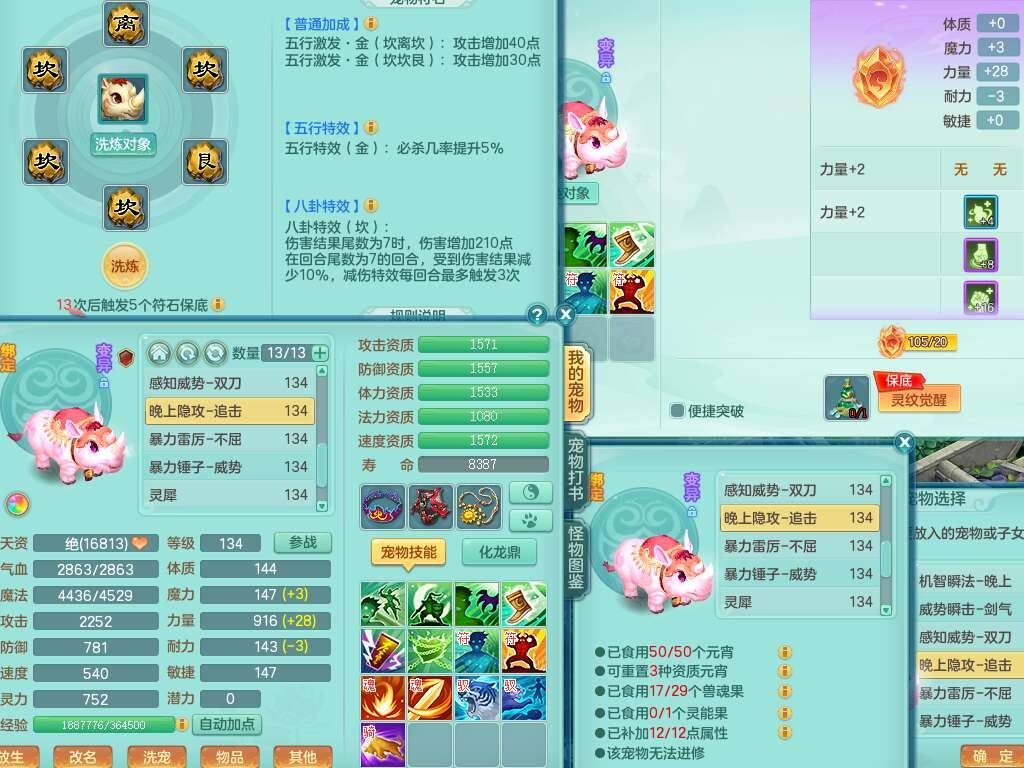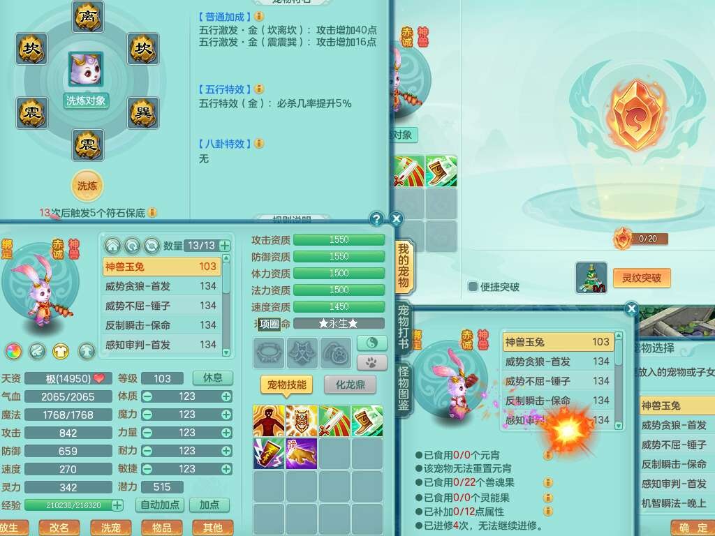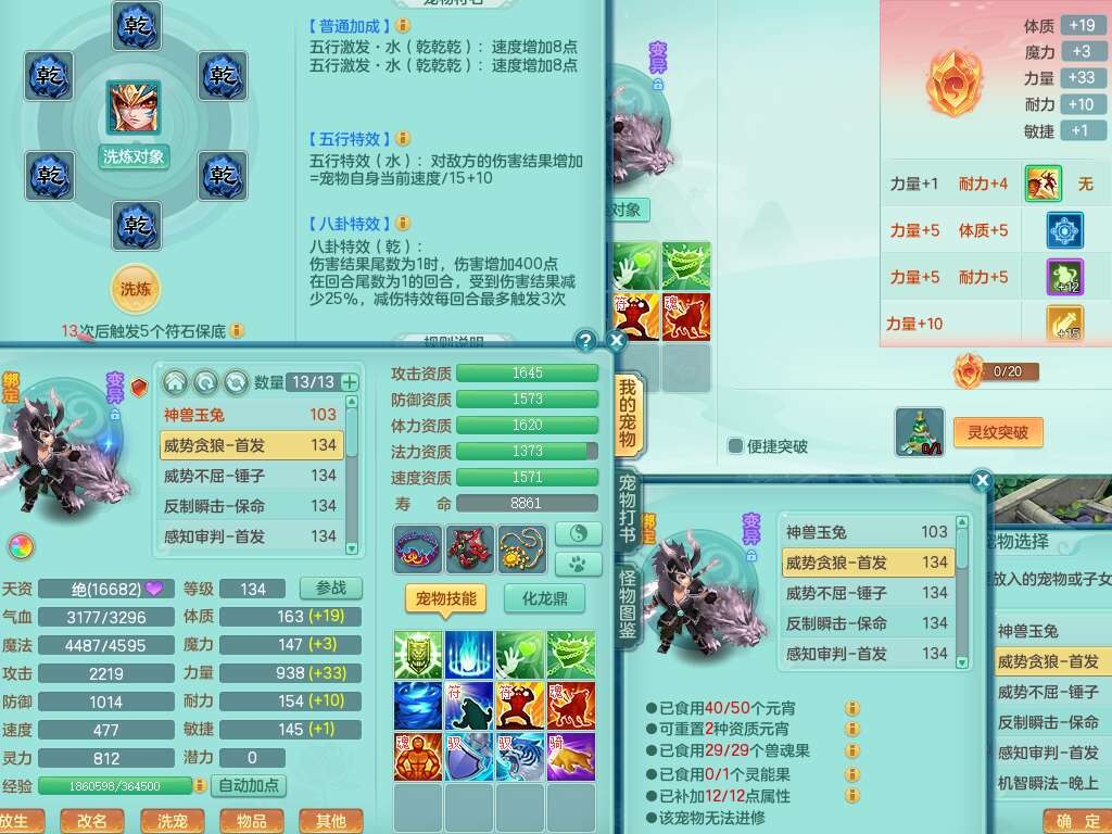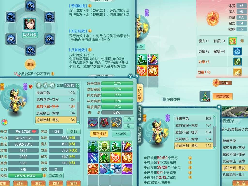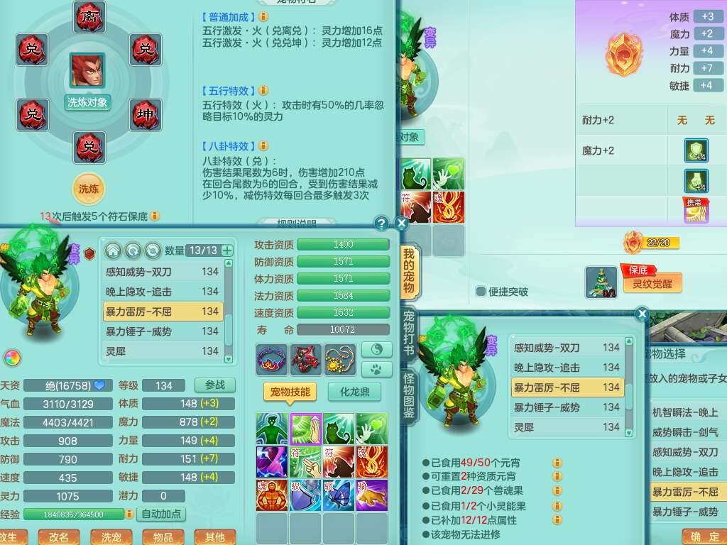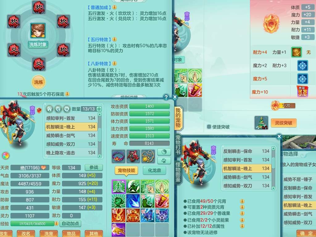 J22454天下无双129女万兽,精灵歌,1内胆神,8觉醒,1只九技能炼妖,三红精准易成长破力式单加42头,729易成长武器,崩山衣服,神佑破血单加链子,易成长单加43腰带,迅捷单加45鞋子,3.5基础鼎,4个纯六字,9只满果子,双人坐骑,带151w神武币。