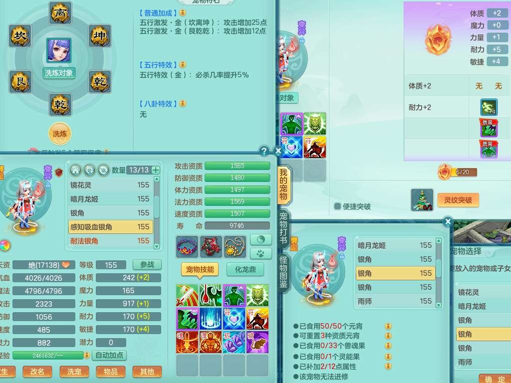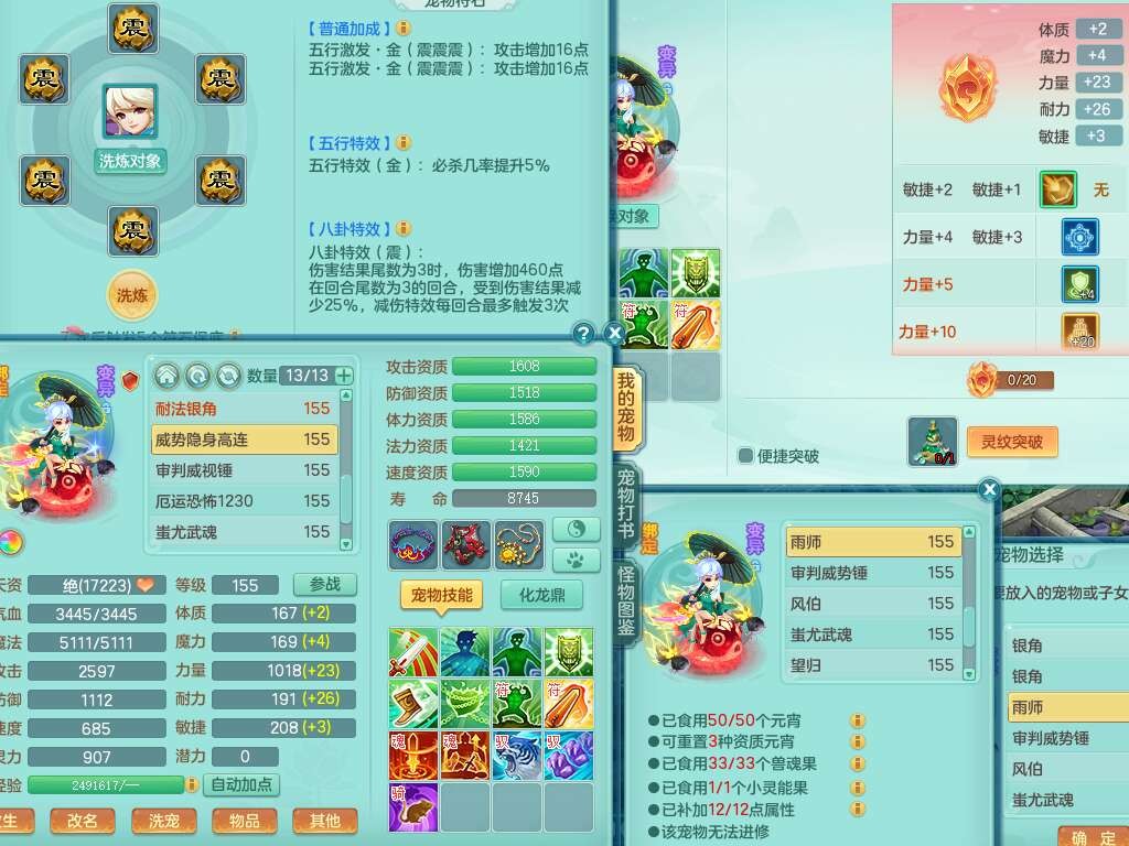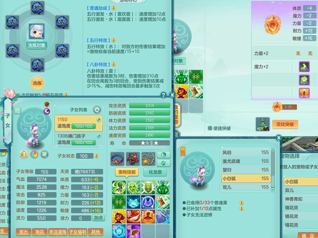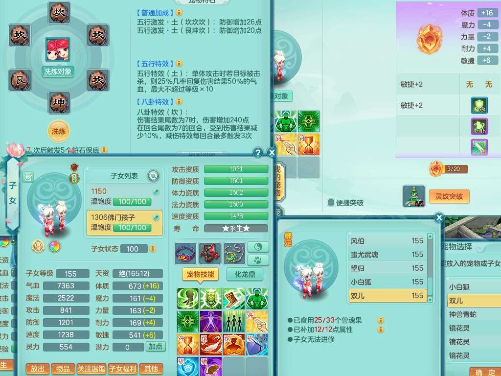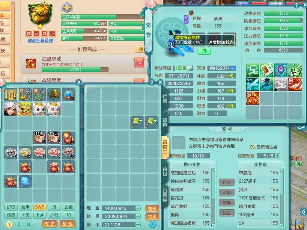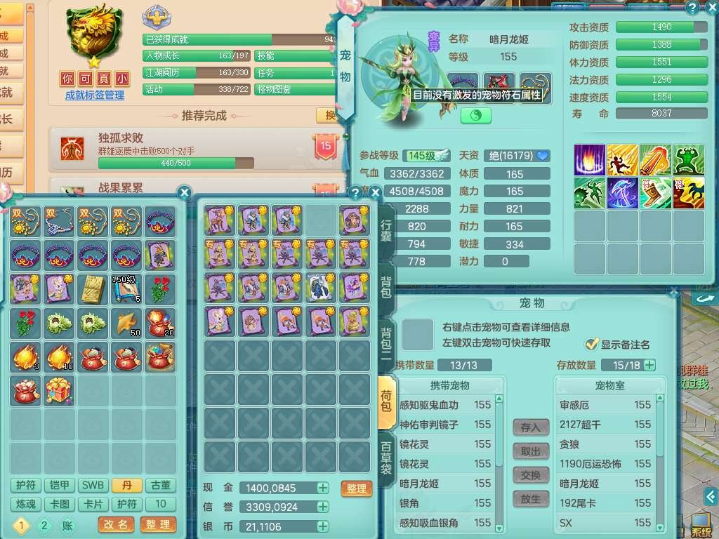S22452三生万物159万兽,精灵舞,1内丹蛇,6觉醒,1宠皮,2只六技能镜花灵,2只六技能龙姬,1只九技能炼妖,三红匠心易成长崩山单加54头,932易成长罗汉武器,易成长疾速单加腰带,易成长单加57鞋子,5.0基础鼎,6个纯六字,2个五字,8只满果子,神驹马上发财,带2075金币,32个仙兽蛋,195天月卡。