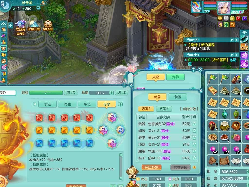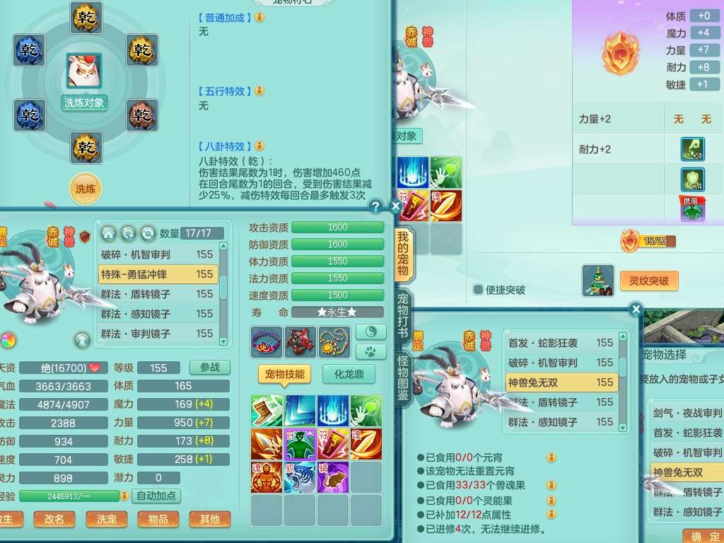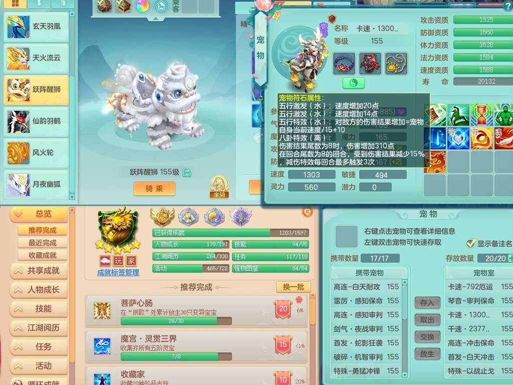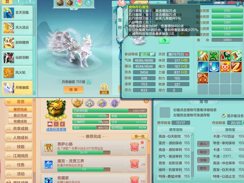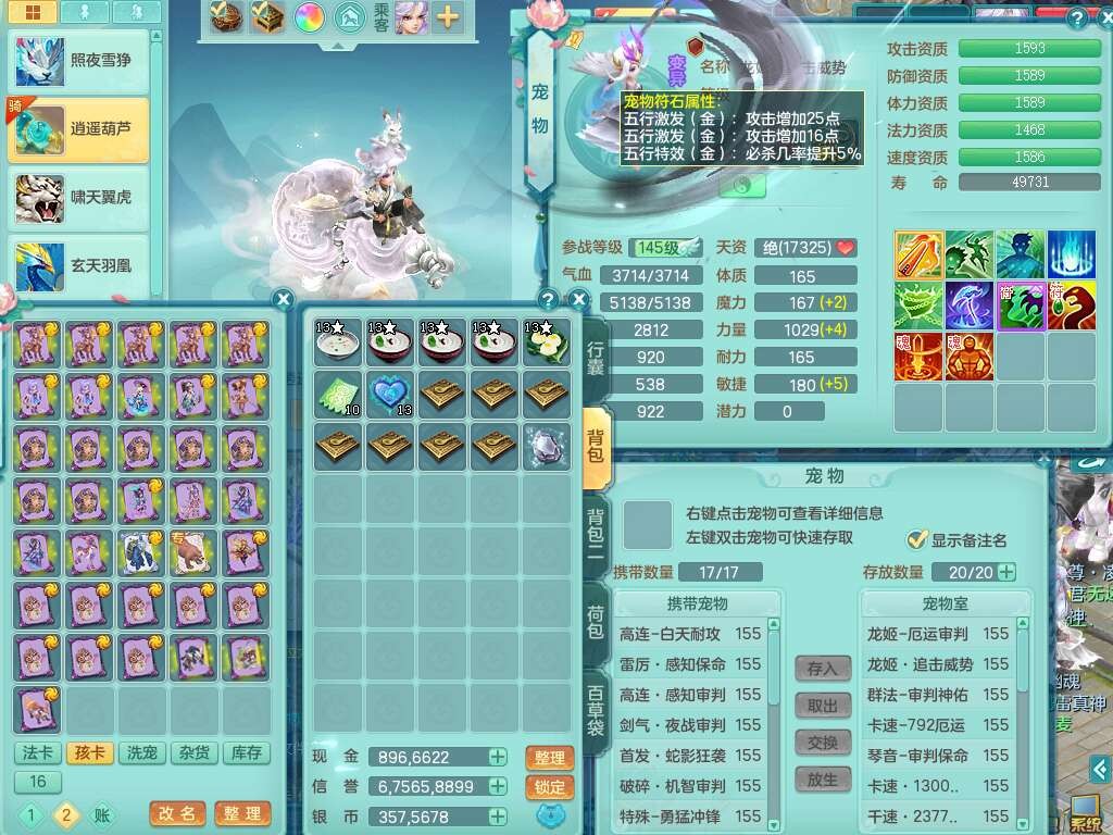 a22450任剑逍遥159男魔王,4龙3内胆神,5破镜,1神兽马+23个神兽内丹碎片,【17觉醒,已潜龙】,4位靓号不含4,8宠皮,5特殊(月光,勇猛,舍身,琴音,以战)3只六技能镜花灵,2只六技能龙姬,易成长单加53头,法爆单加56武器,易成长单加57衣服,266易成长单加56链子,五雷单加50鞋,5.5基础鼎+70攻+280血,15个永久格子,17个纯六字,2个五字,28只满果子,宠排在榜,经验修炼成就在榜,4个孩子,永久称谓,6只双人坐骑,带2180金币,357w神武币,141天月卡。➕159男无量,1神兽,1觉醒,1只六技能镜花灵,愤怒五特,4.5基础鼎,1个五字,1只满果子,双人坐骑,带168w神武币。➕151男鬼谷,1神兽。