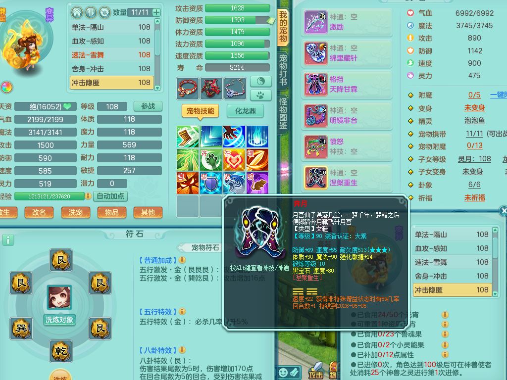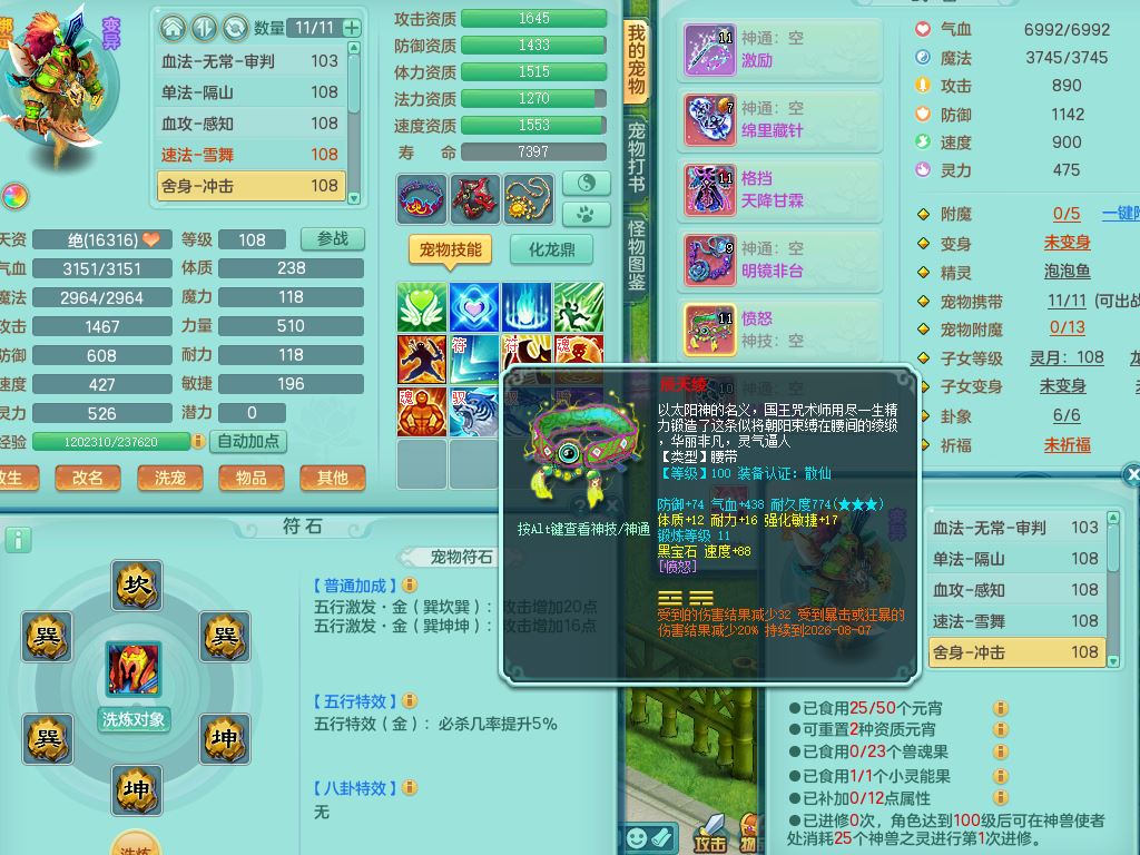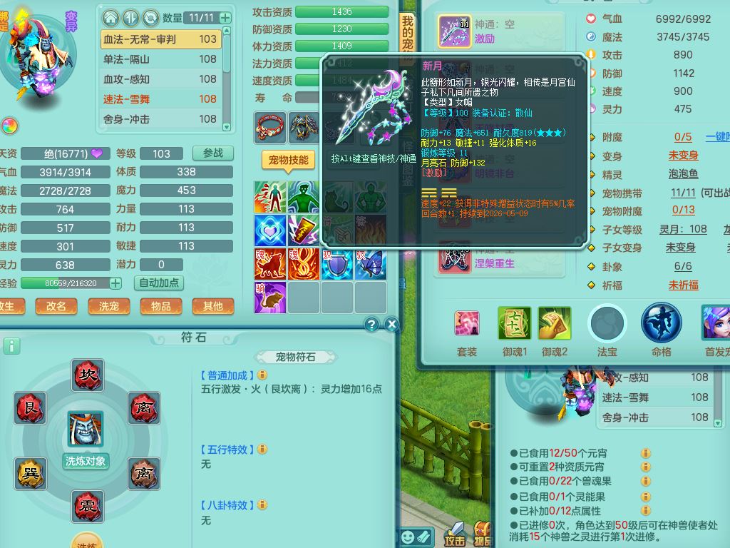 26-10516,2026区103女方寸【马上发财+暴龙泰坦+火焰之力】2内丹神(1蛇1马)2只满果子3个4字,愤怒5特,格挡四海衣服,鼎2.0,鼎145天月卡,永久背饰,2291金币,宠排在榜,2坐骑