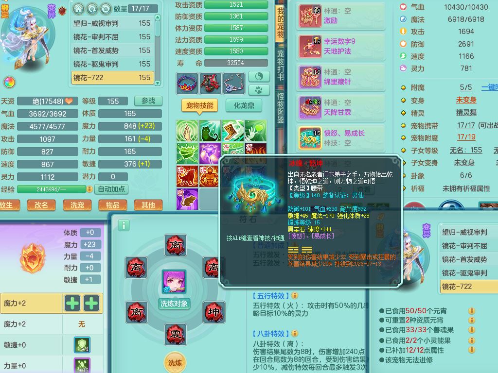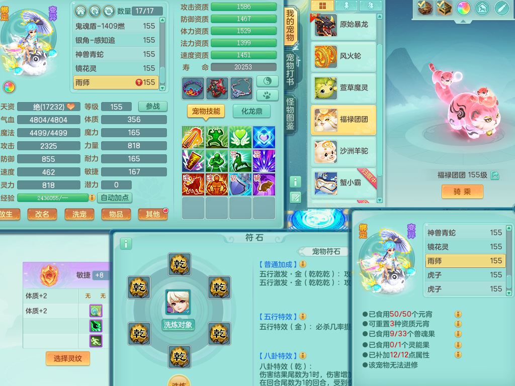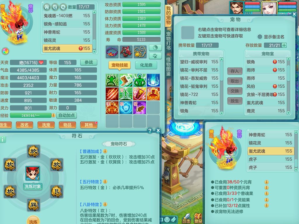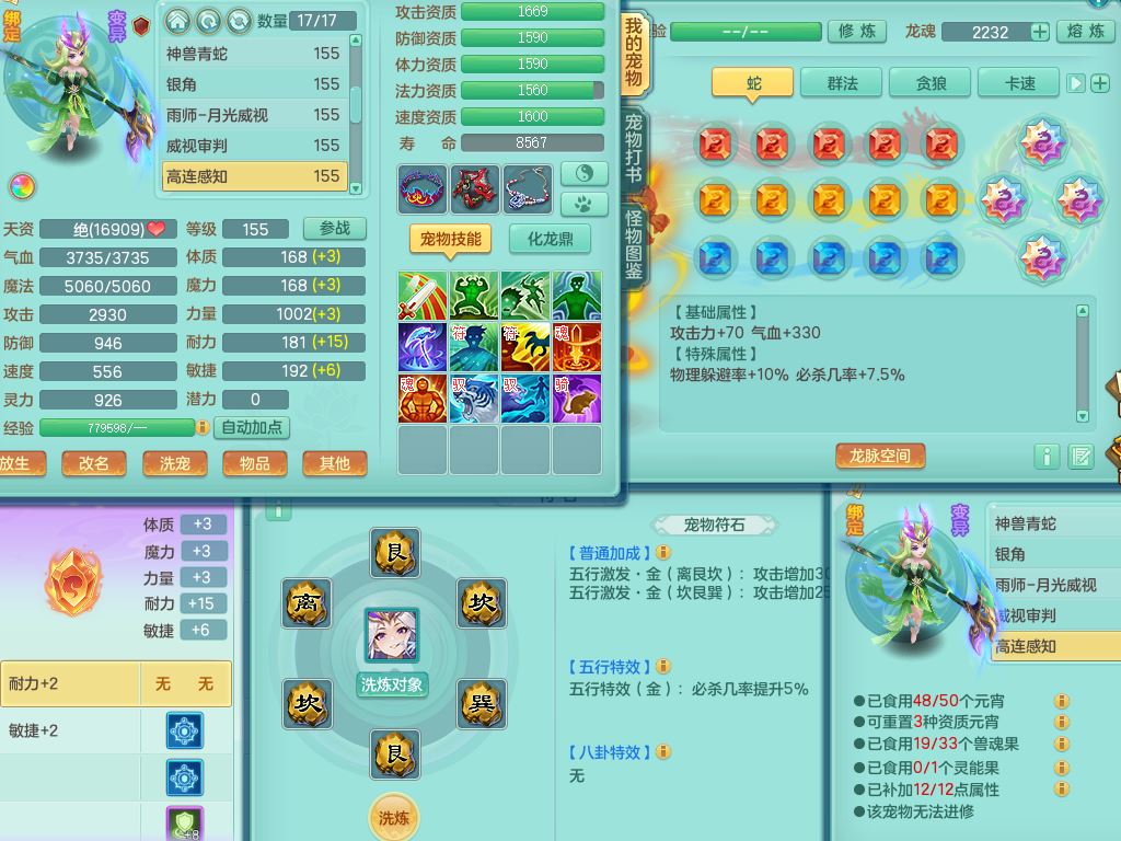 cy10524彩云追月159女地府【潜龙号+暴龙逍客+西瓜冰】精灵舞,1龙(无内)2青蛇(1只无内)6特殊(翻江/双星/月光/焚心/兽决荒古/禁锢)13只满果子10觉醒9个纯6字,8红全单加,愤怒5特,幸运罗汉武器,愤怒Y腰带,鼎5.5+70+280,179天月卡,庭院165房屋181,永久外观精灵皮肤,宠排在榜,4坐骑(2只双人)带4个150奶粉