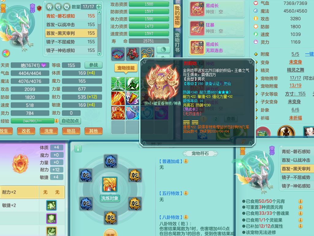tx10517天下无双159男无名【潜龙号】精灵舞,4字靓号,1龙(无内)1内丹青蛇1神兽内丹,5特殊(以战/荒古/逆龙/怒破/舍身)5镜花1龙姬,20只满果子9觉醒9个纯6字,9红,934狂暴武器,Y破血衣服,愤怒Y3红腰带,鼎5.5+70+280,39天月卡,冰晶庭院160房屋151,永久外观精灵皮肤,43内丹碎片,3坐骑(2只双人)