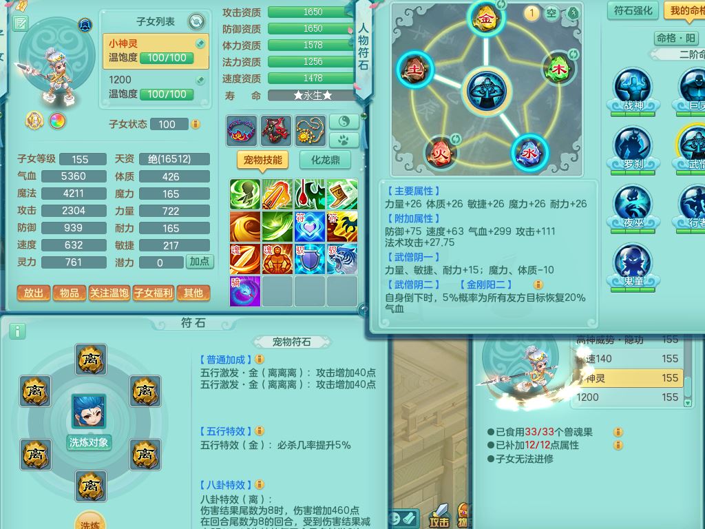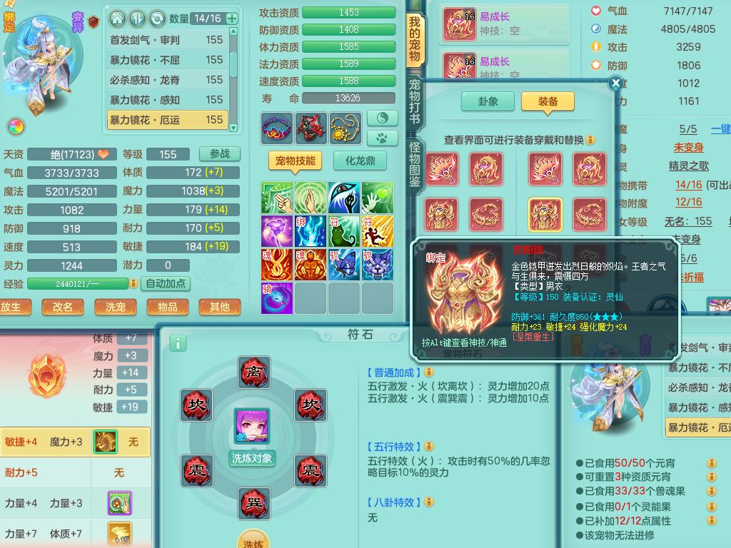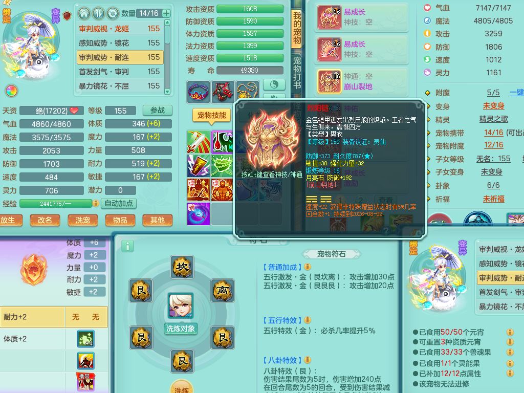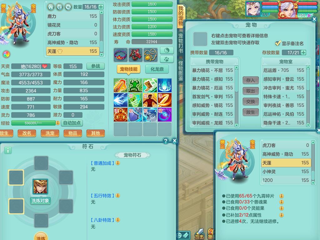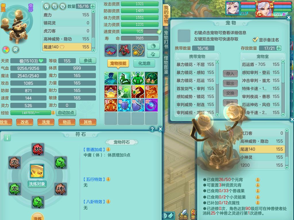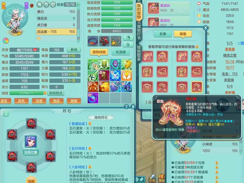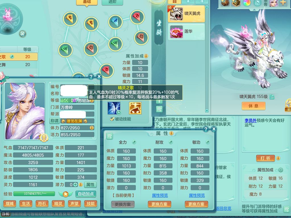tx10520天下无双159男万兽【潜龙号】精灵歌+舞,2套星穹,1内丹龙1内丹神1皮4特殊(登云/守护/善恶/飞花兽决)4镜花灵2龙姬,22只满果子12觉醒10个纯6字,932Y武器,崩山衣服,单加Y野兽鞋,鼎5.5+70+280,庭院157房屋166,永久外观精灵皮肤,1185金币,60内丹碎片,宠排在榜,飞行双人坐骑