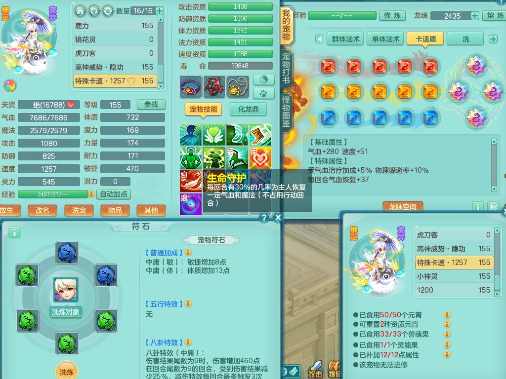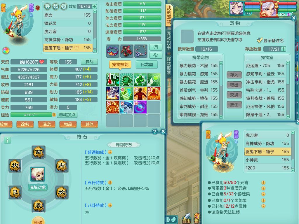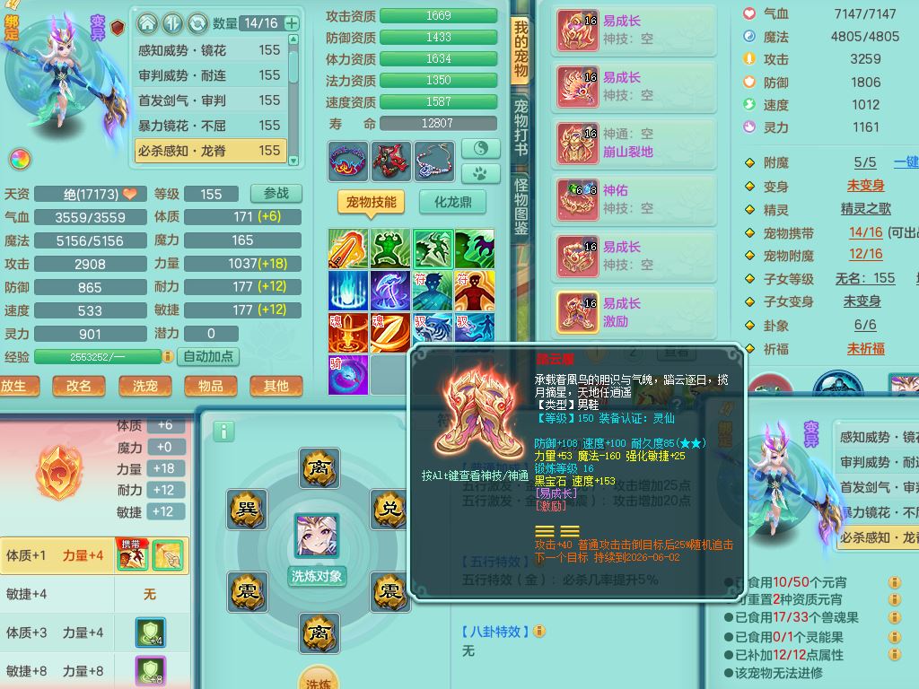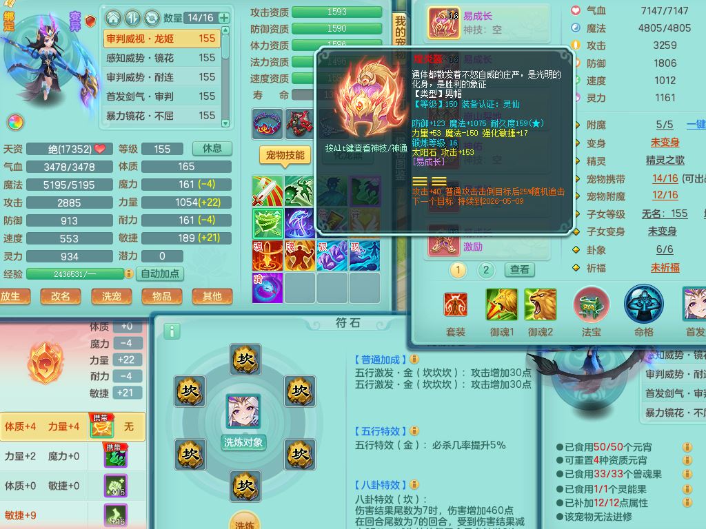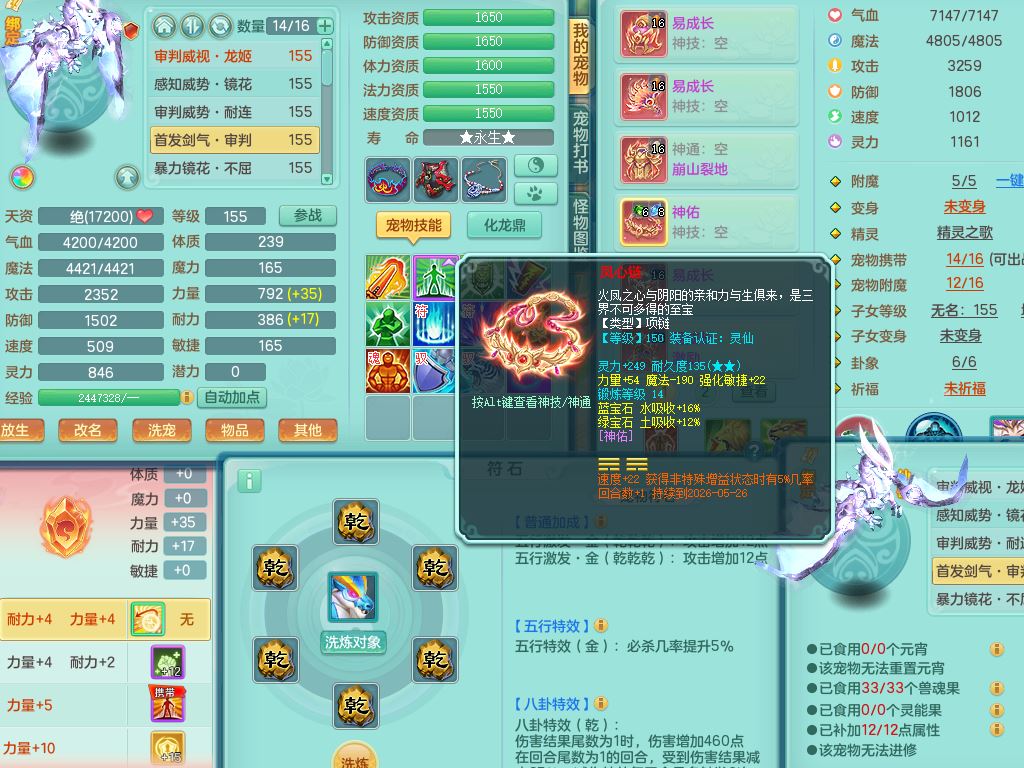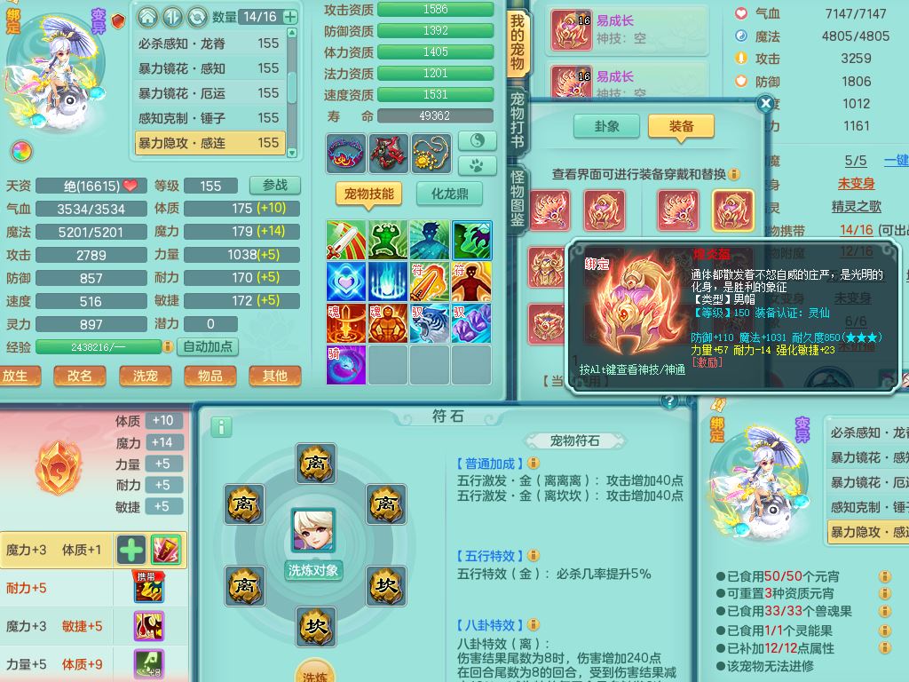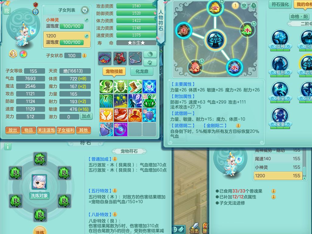 tx10520天下无双159男万兽【潜龙号】精灵歌+舞,2套星穹,1内丹龙1内丹神1皮4特殊(登云/守护/善恶/飞花兽决)4镜花灵2龙姬,22只满果子12觉醒10个纯6字,932Y武器,崩山衣服,单加Y野兽鞋,鼎5.5+70+280,庭院157房屋166,永久外观精灵皮肤,1185金币,60内丹碎片,宠排在榜,飞行双人坐骑