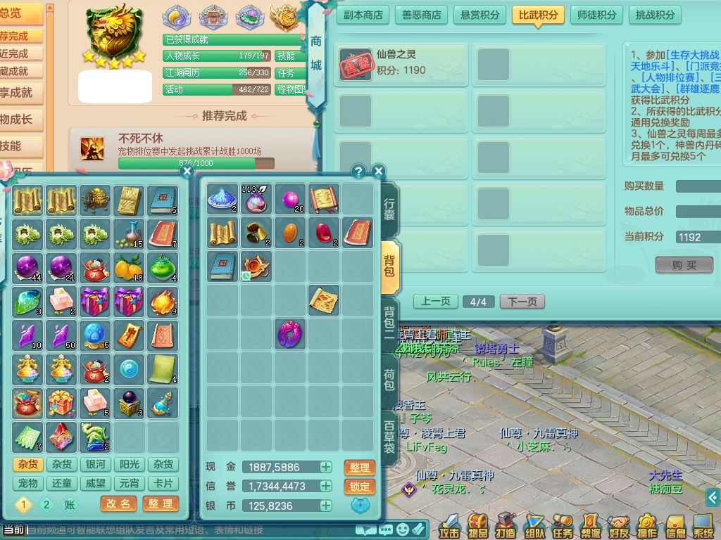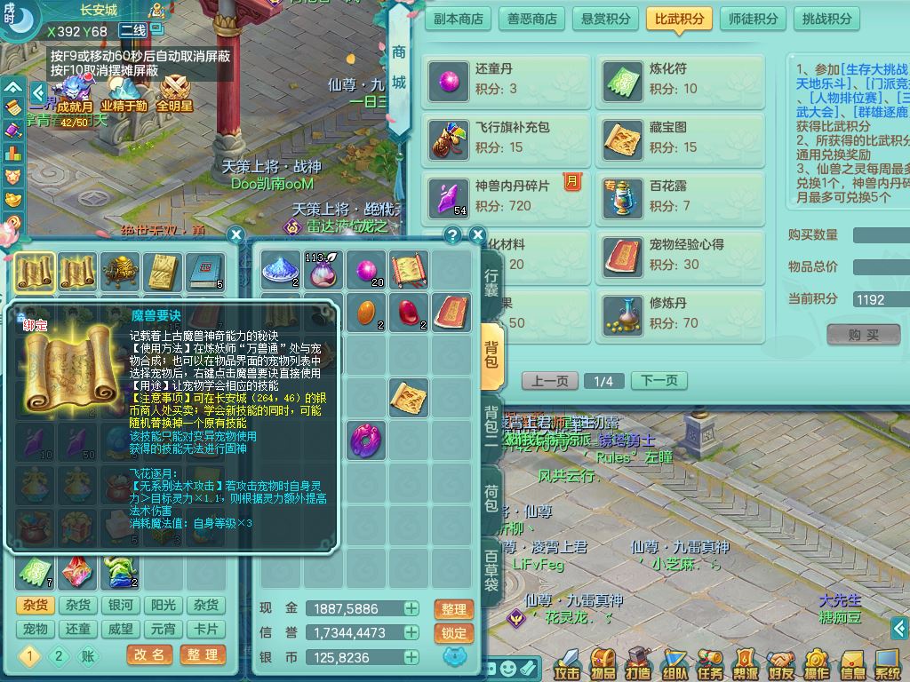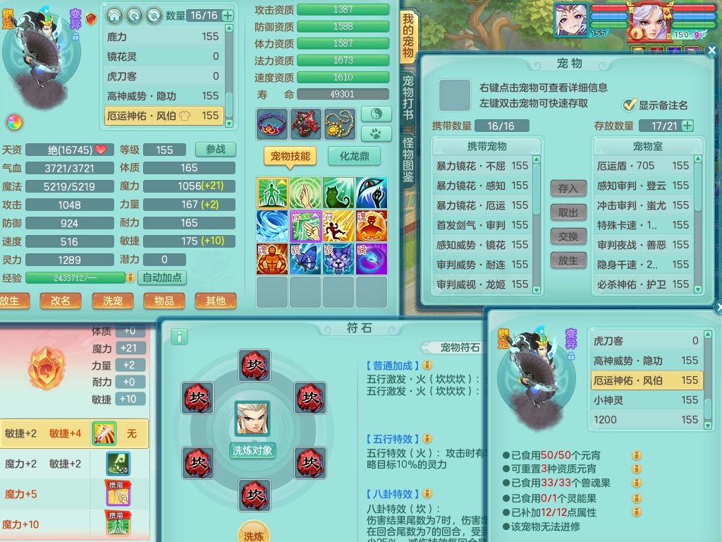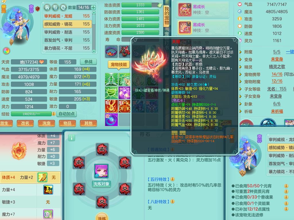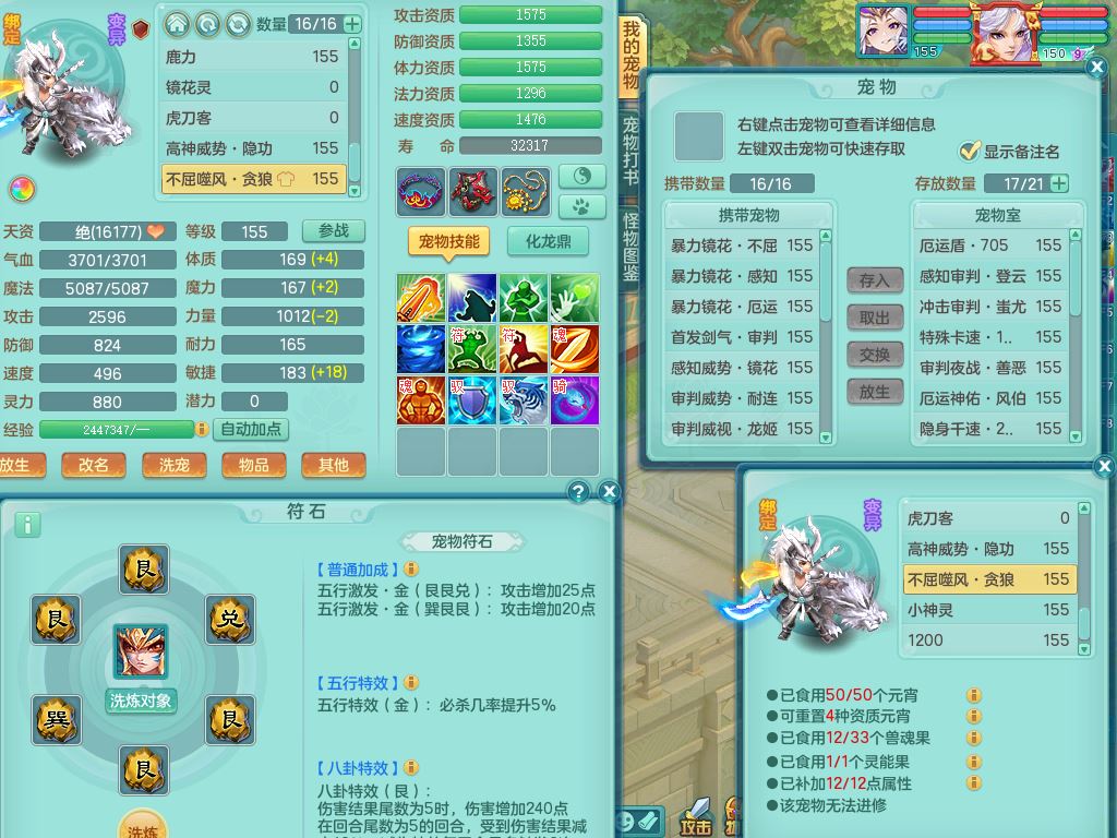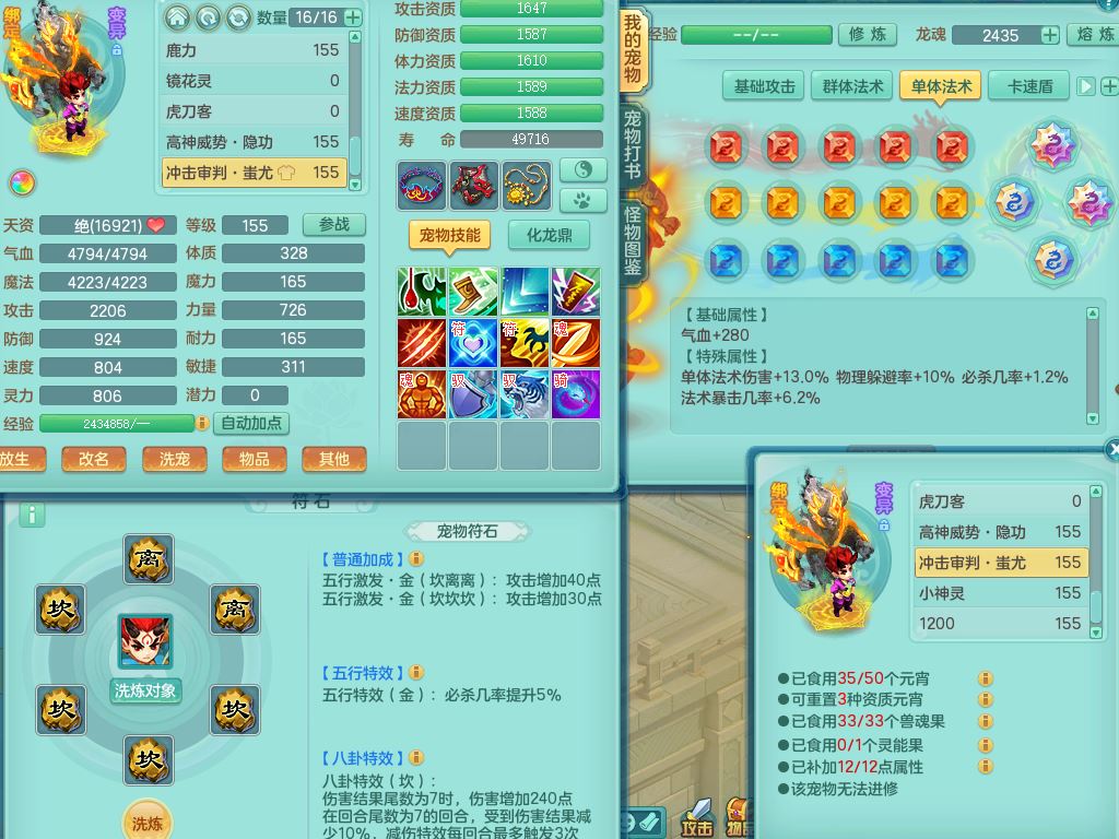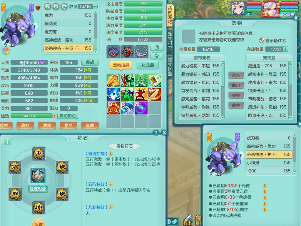 tx10520天下无双159男万兽【潜龙号】精灵歌+舞,2套星穹,1内丹龙1内丹神1皮4特殊(登云/守护/善恶/飞花兽决)4镜花灵2龙姬,22只满果子12觉醒10个纯6字,932Y武器,崩山衣服,单加Y野兽鞋,鼎5.5+70+280,庭院157房屋166,永久外观精灵皮肤,1185金币,60内丹碎片,宠排在榜,飞行双人坐骑