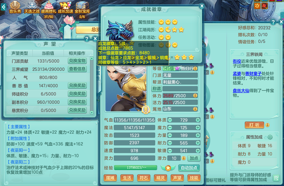 ym8027 月满西楼 145 无量 暴龙坐骑 精灵歌 化龙鼎 月卡104天 1内龙 1觉醒 1个真6字 综合2+满果子 QQ邮箱