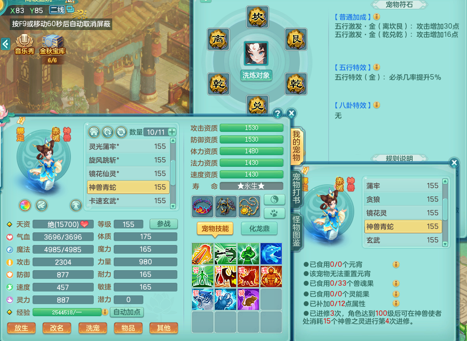 tx8083 天下无双 159 天宫转万兽了 +159 无量 +159 万兽 三开号 单人坐骑 精灵歌 满星穹 4.5化龙鼎 装备都很好 BB还不错 QQ邮箱 天宫无量 都有60+仙兽灵