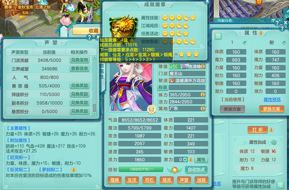 hh8149 花好月圆 159 魔王 双飞坐骑 精灵歌 满星穹 4.5化龙鼎 3龙2内 1内神 2宠物皮肤 特殊(流星、堕天) 6觉醒 4个真6字 16+满果子 2980邮箱