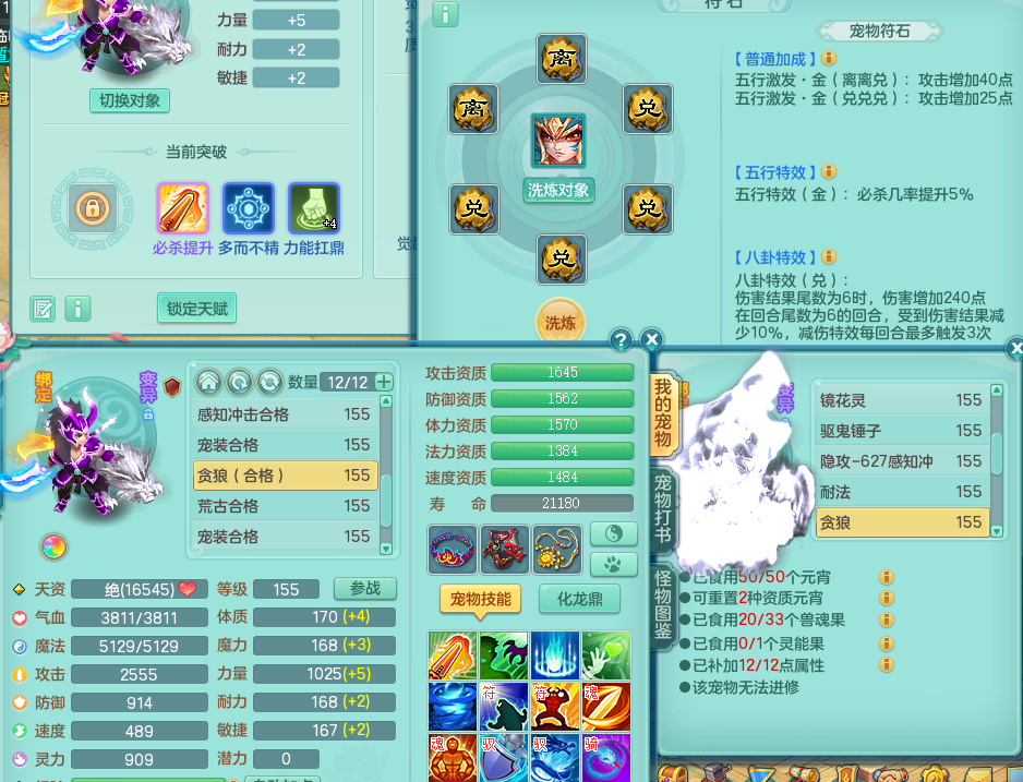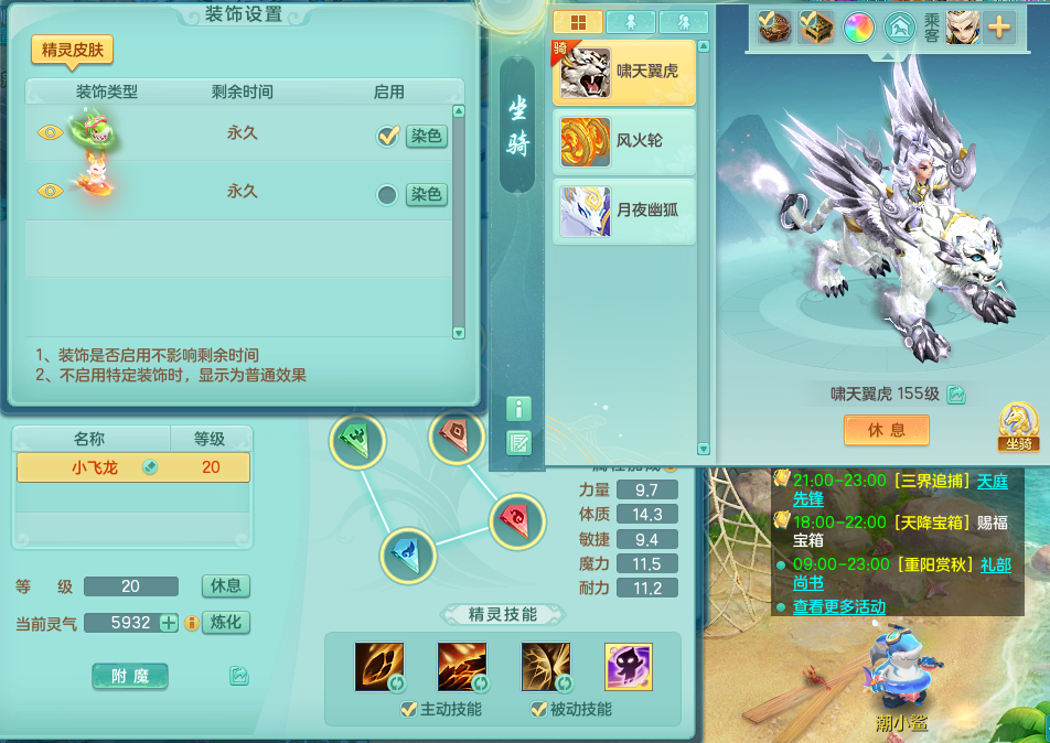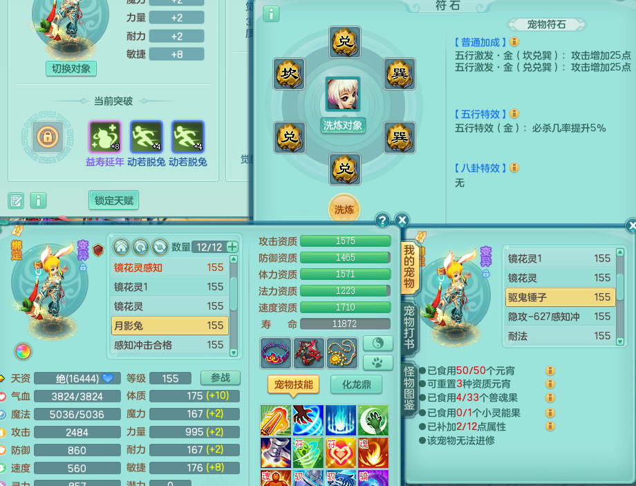 tx8240 天下无双 159 天宫 双飞坐骑 精灵舞 满星穹 5.5化龙鼎 月卡165天 47神兽碎片 1宠物皮肤 4觉醒 1个真6字 5+满果子 2980邮箱