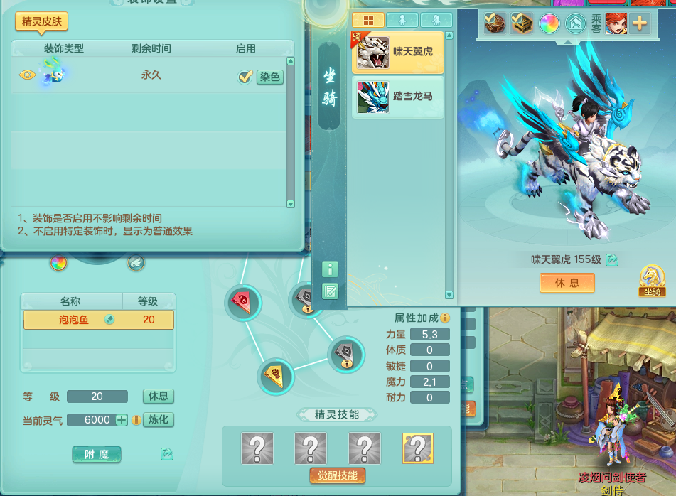 tx8270 天下无双 捡漏150力天魔,双人飞行白色大老虎全套,神兽青蛇,精灵皮肤,带62万神武币 2980邮箱