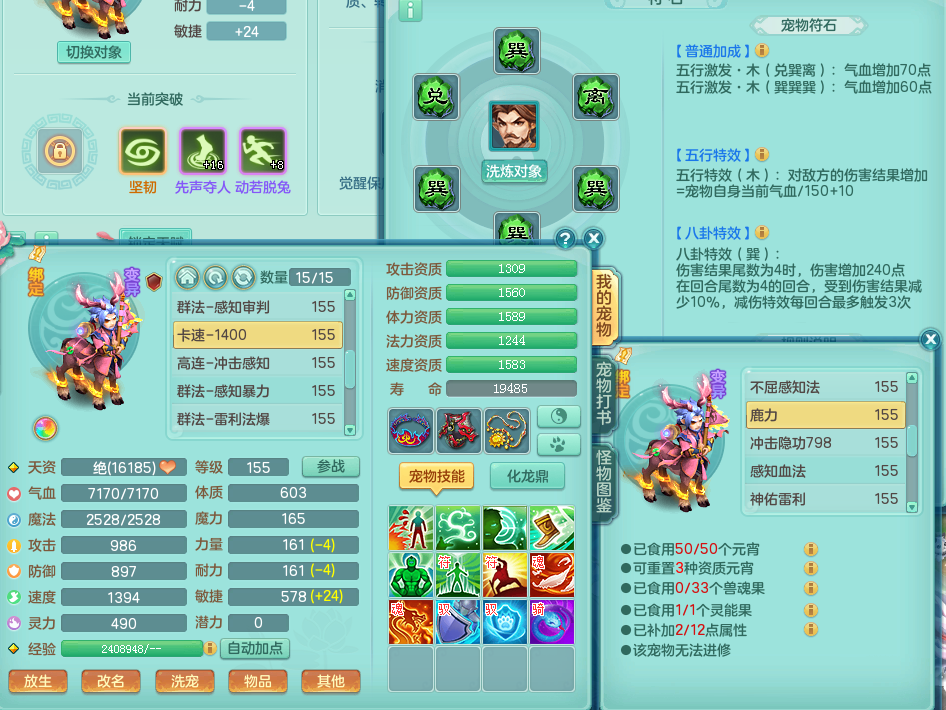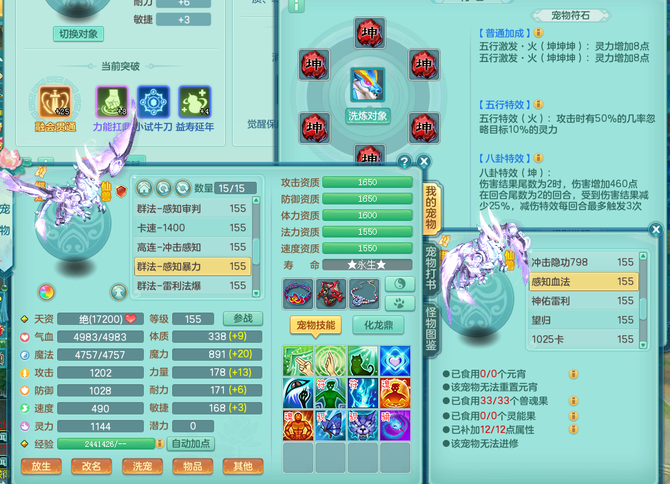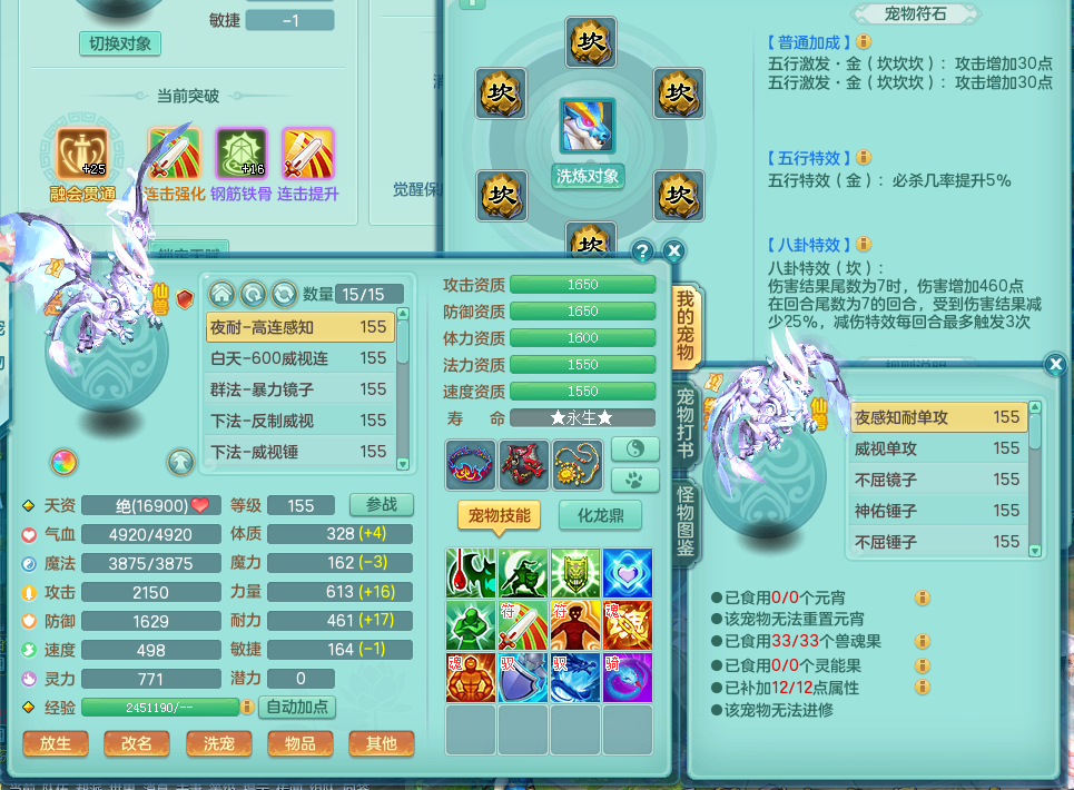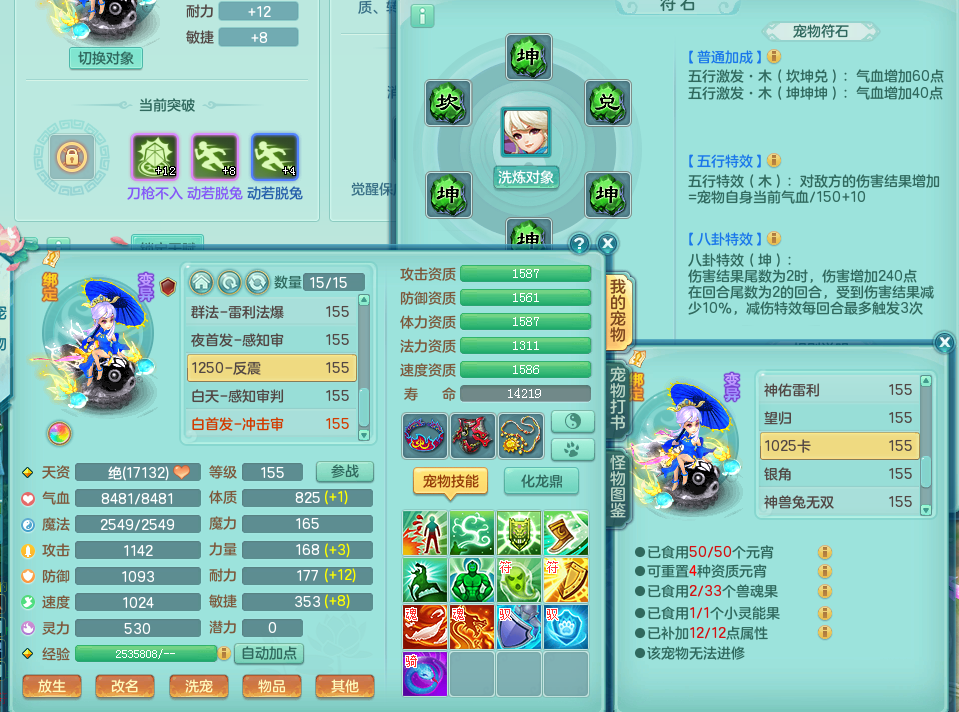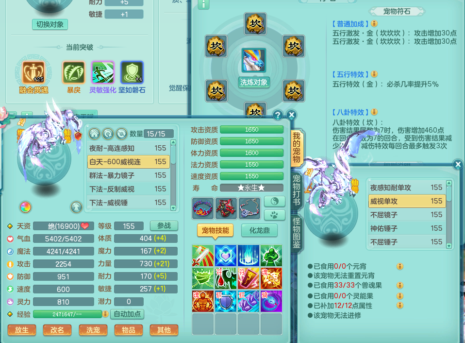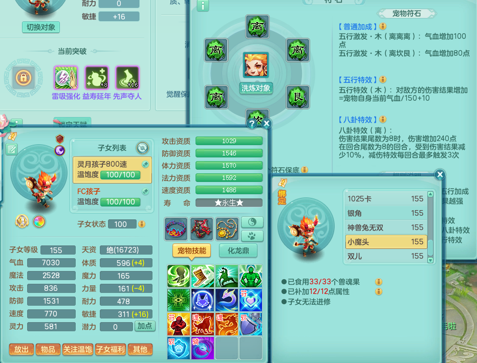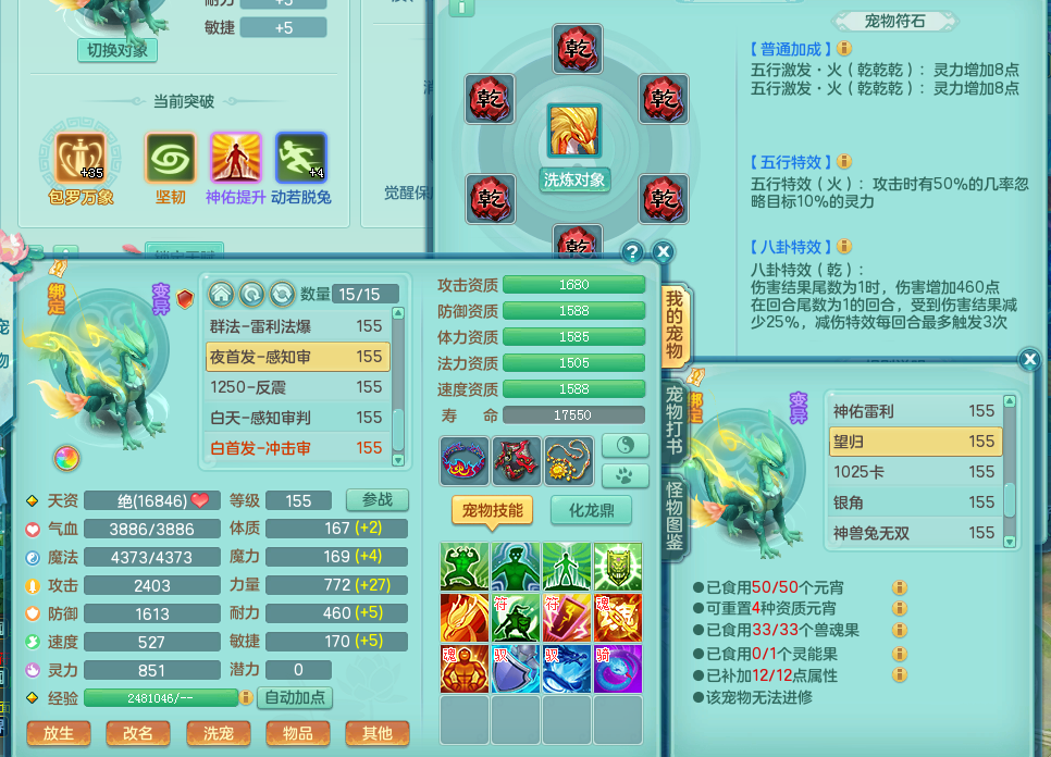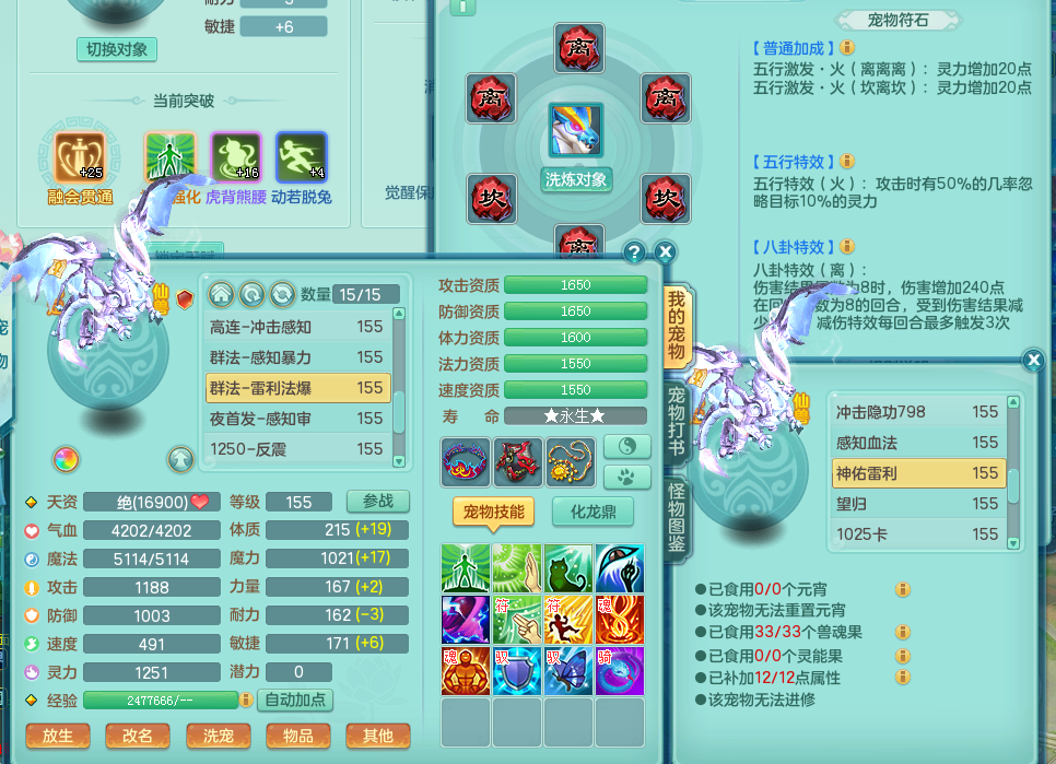 qq8288 【潜龙在渊】七窍玲珑 159 天宫 8位靓号 双飞坐骑 精灵歌 满星穹 5.5化龙鼎毕业 月卡43天 5内龙 2内神 4宠物皮肤 特殊(生命、荒古、以战) 9觉醒 7个真6字 14+满果子 仓库还有91个果子 163邮箱