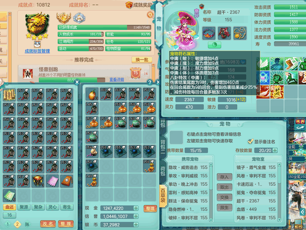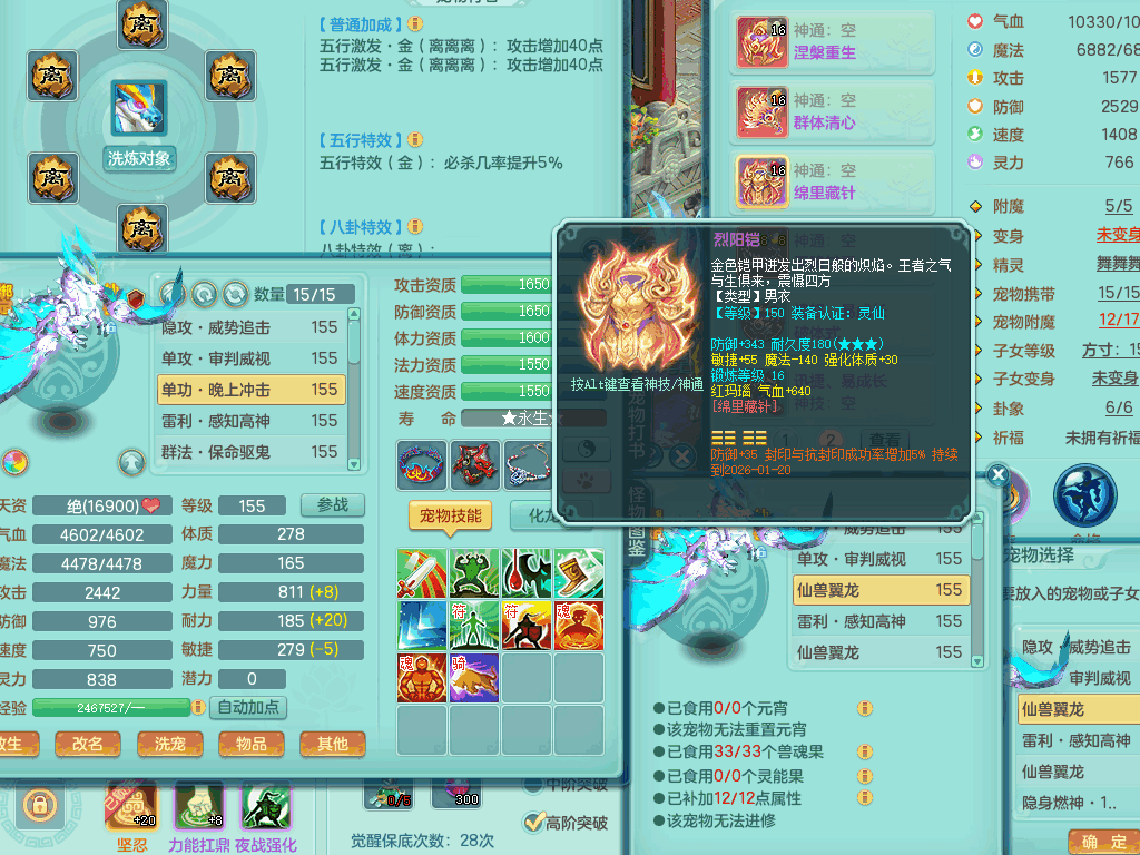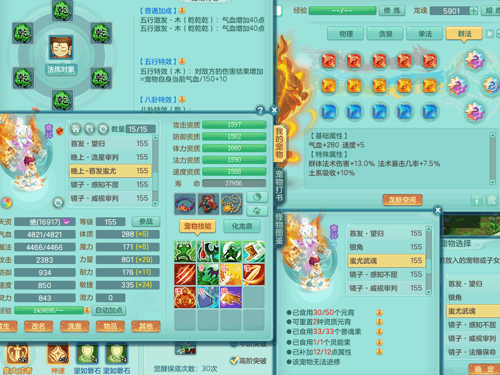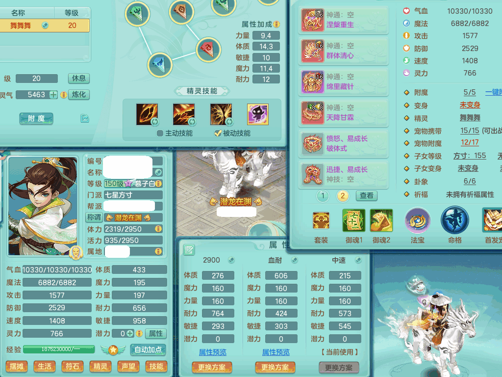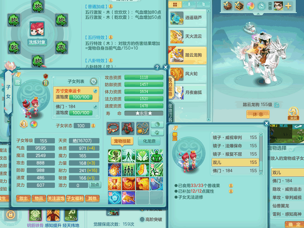 tx8367 J18511天下无双159男方寸,精灵舞,6龙2内丹神,【8只觉醒,已潜龙】,8位靓号,5宠皮,6只六技能镜花灵,5特殊(流星,夺命,风卷,善恶,勇猛),三红愤怒易成长破体式腰带、迅捷易单加51鞋子,顶级封,5.5基础鼎+70攻+280血,15个格子,17个六字,25只满果子,宠排在榜,经验修炼在榜,4个坐骑,带73天月卡 QQ邮箱