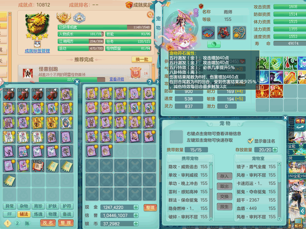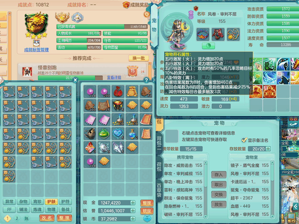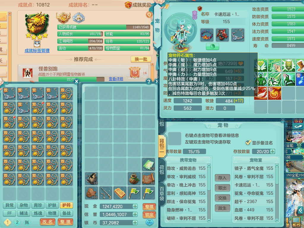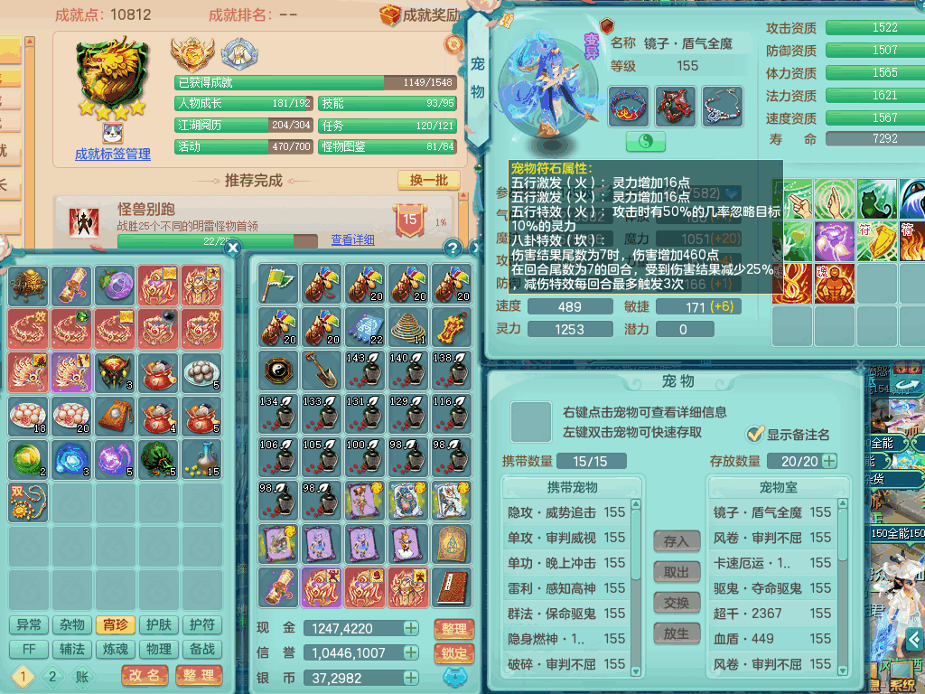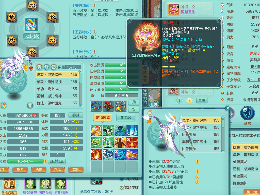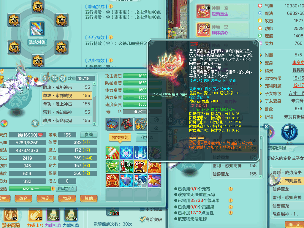 tx8367 J18511天下无双159男方寸,精灵舞,6龙2内丹神,【8只觉醒,已潜龙】,8位靓号,5宠皮,6只六技能镜花灵,5特殊(流星,夺命,风卷,善恶,勇猛),三红愤怒易成长破体式腰带、迅捷易单加51鞋子,顶级封,5.5基础鼎+70攻+280血,15个格子,17个六字,25只满果子,宠排在榜,经验修炼在榜,4个坐骑,带73天月卡 QQ邮箱
