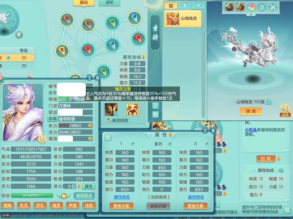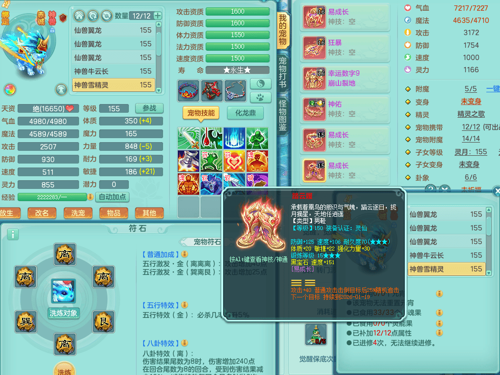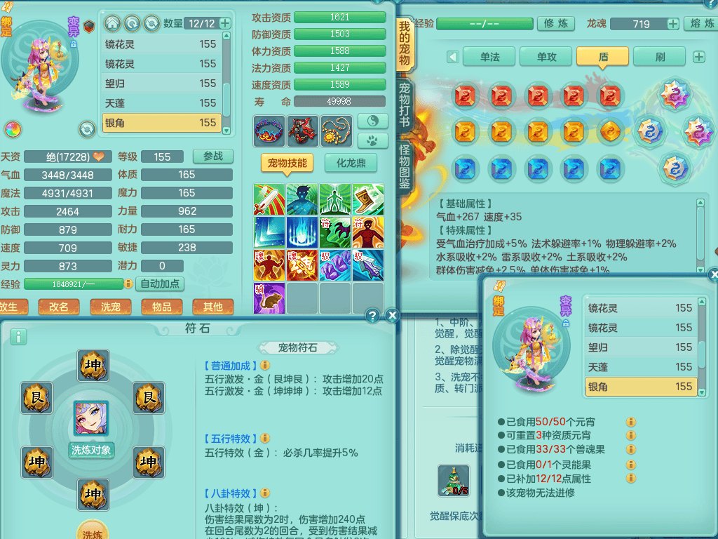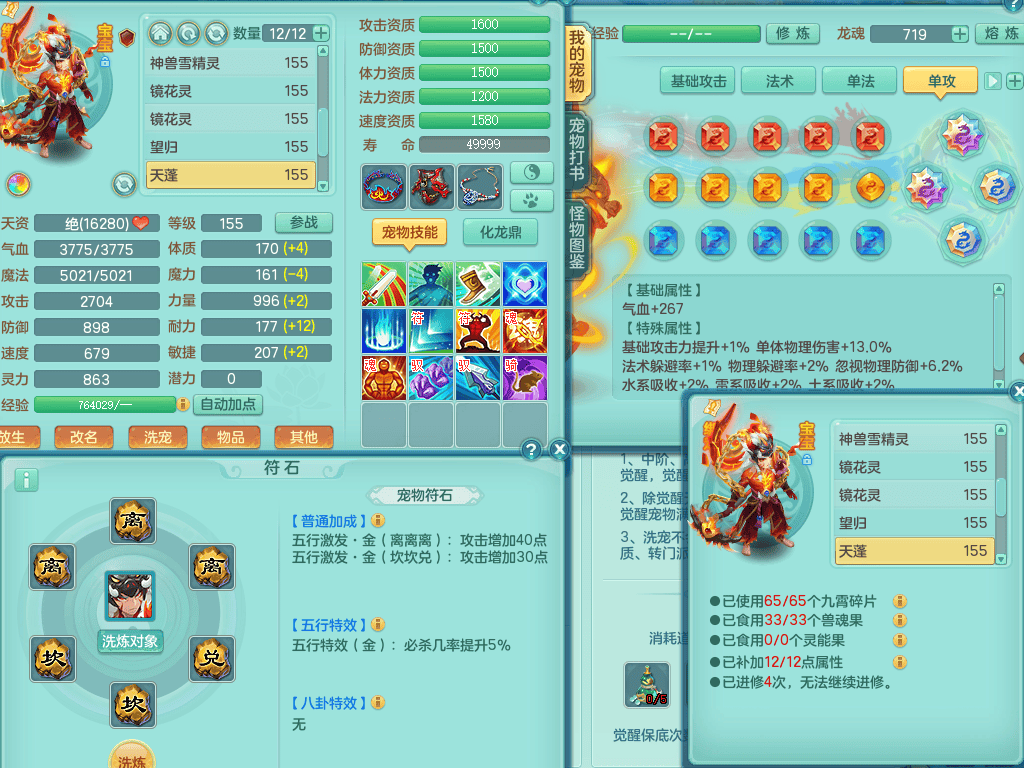 ss8368 三生万物159男万兽【潜龙过半+1龙皮】精灵歌+舞,8字靓号,4龙1龙皮2内4皮,2镜花灵,13只满果子4觉醒5个纯6字,顶尖物理装备,913狂暴武器,单加55Y头,幸运崩山衣服,单加51神佑项链,单加53Y腰带,Y鞋,鼎4.5+70,2套符石,冰晶庭院174房屋175,永久外观,精灵皮肤,1542金币,57仙兽灵,宠排在榜,飞行烛龙坐骑 2980邮箱
