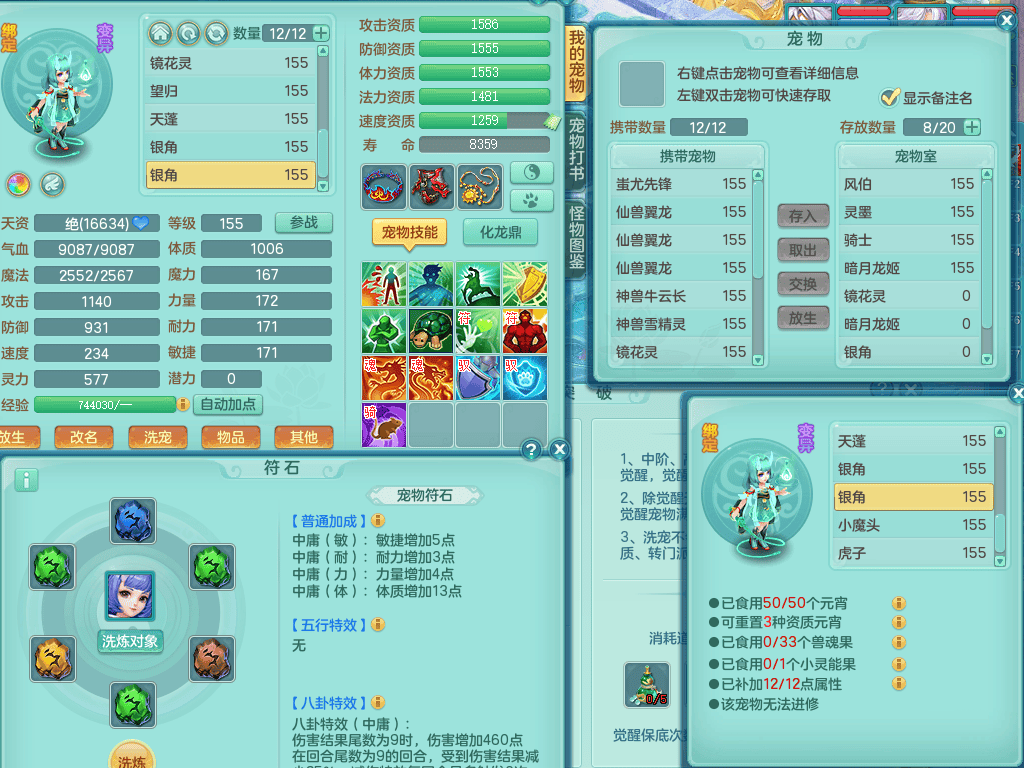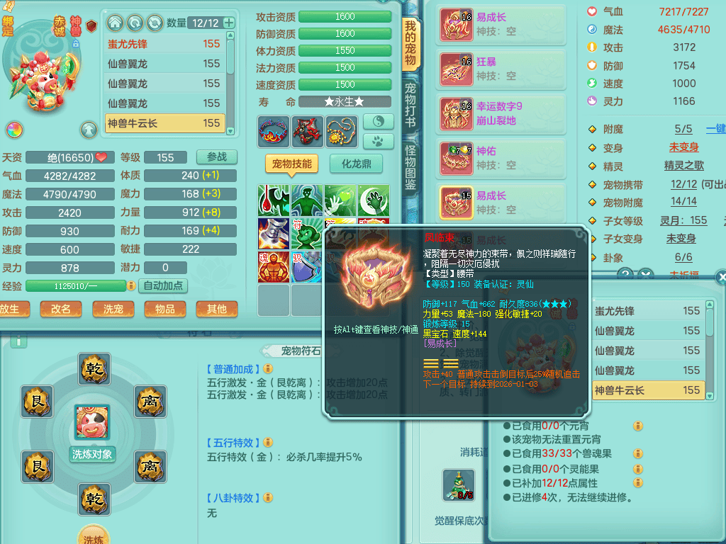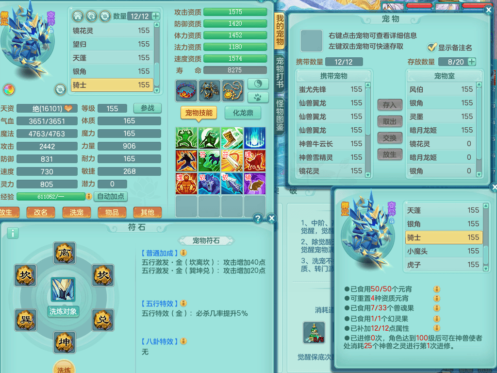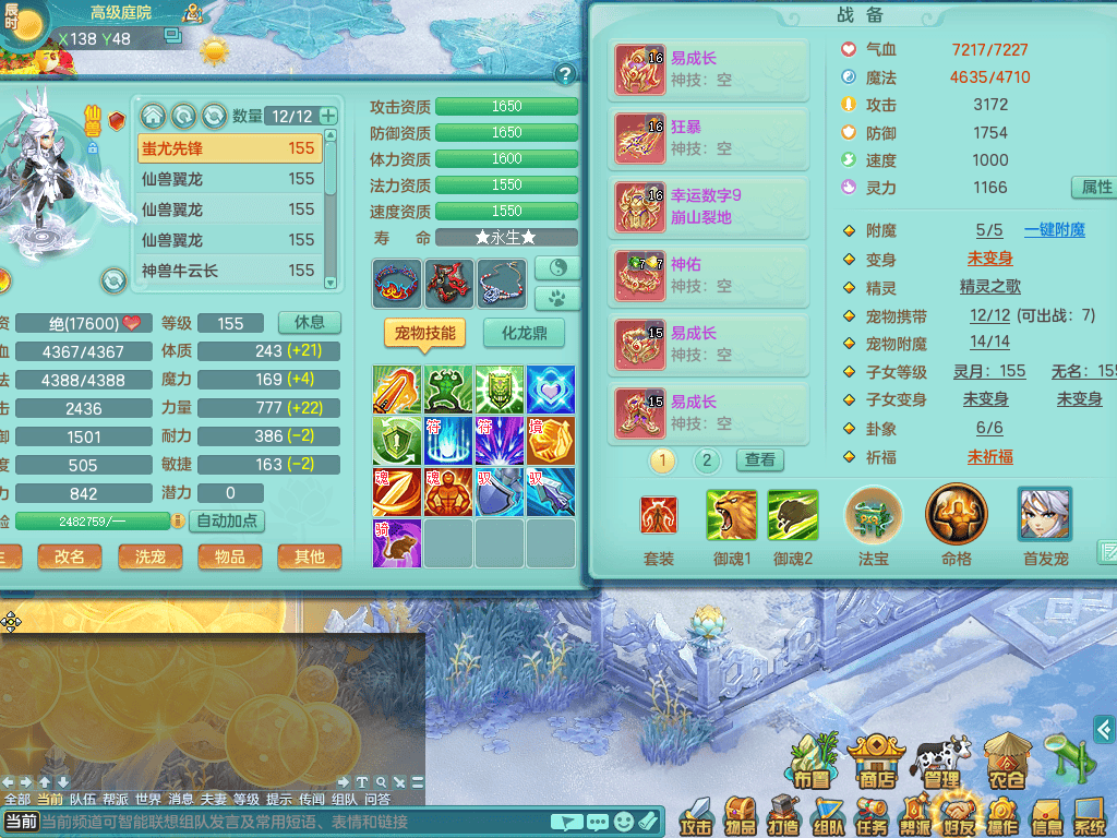 ss8368 三生万物159男万兽【潜龙过半+1龙皮】精灵歌+舞,8字靓号,4龙1龙皮2内4皮,2镜花灵,13只满果子4觉醒5个纯6字,顶尖物理装备,913狂暴武器,单加55Y头,幸运崩山衣服,单加51神佑项链,单加53Y腰带,Y鞋,鼎4.5+70,2套符石,冰晶庭院174房屋175,永久外观,精灵皮肤,1542金币,57仙兽灵,宠排在榜,飞行烛龙坐骑 2980邮箱