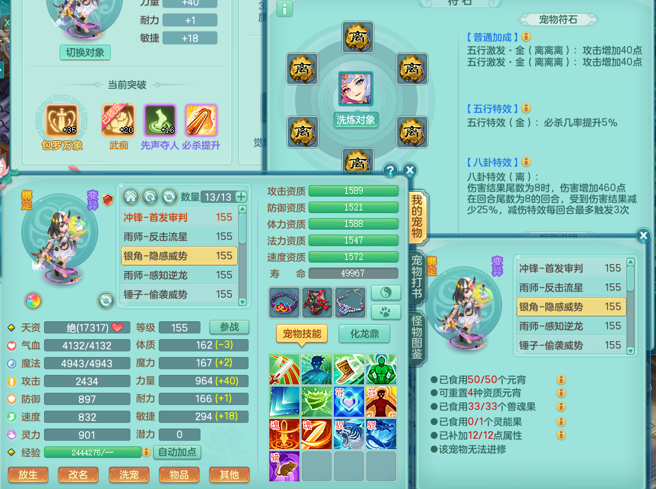 tx8383 天下无双 159 五庄 双飞坐骑 精灵舞 满星穹 5.56化龙鼎毕业 1内龙 2内神 6皮肤 特殊(逆龙、流星、飞花、烈焰斩、雷光 琴音 )4镜子 7觉醒 8个真6字 13+满果子 163邮箱 差2个小符石潜龙