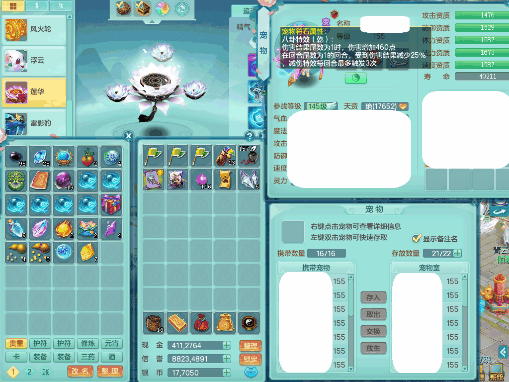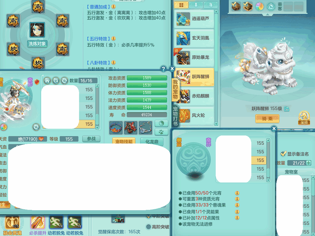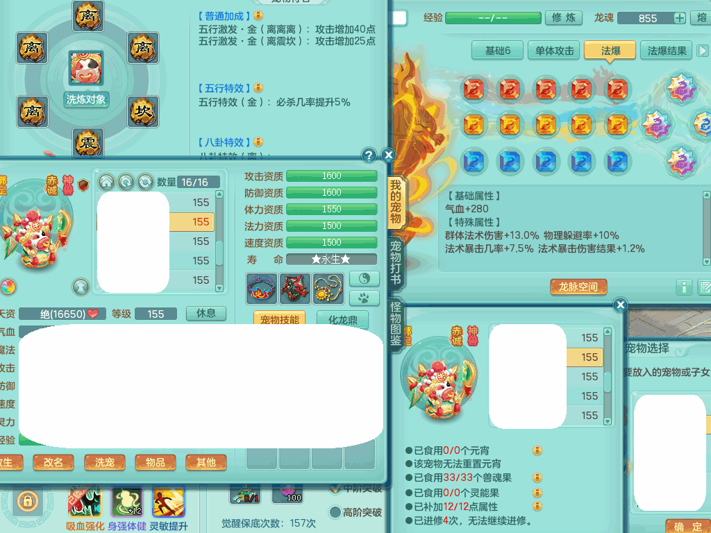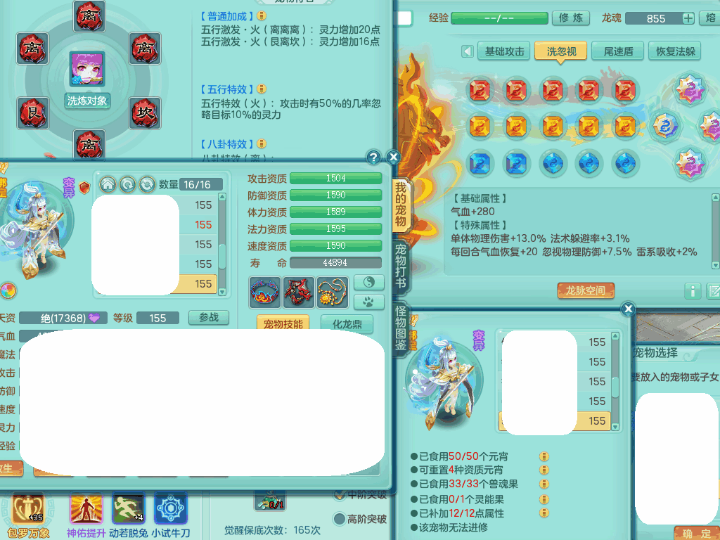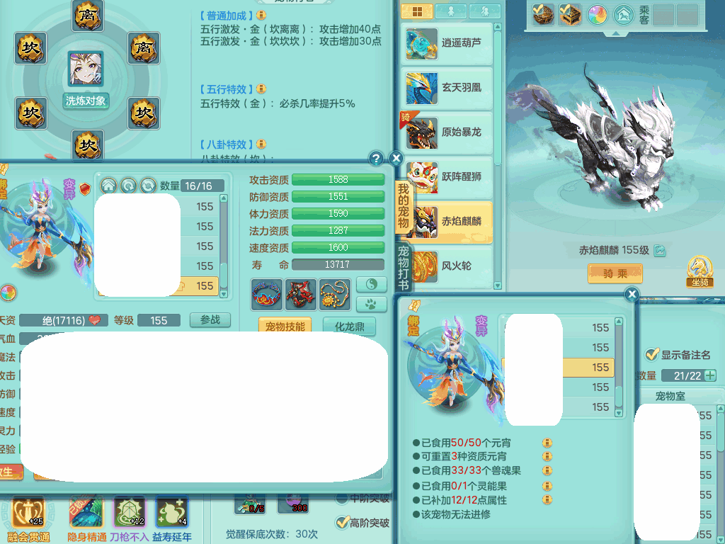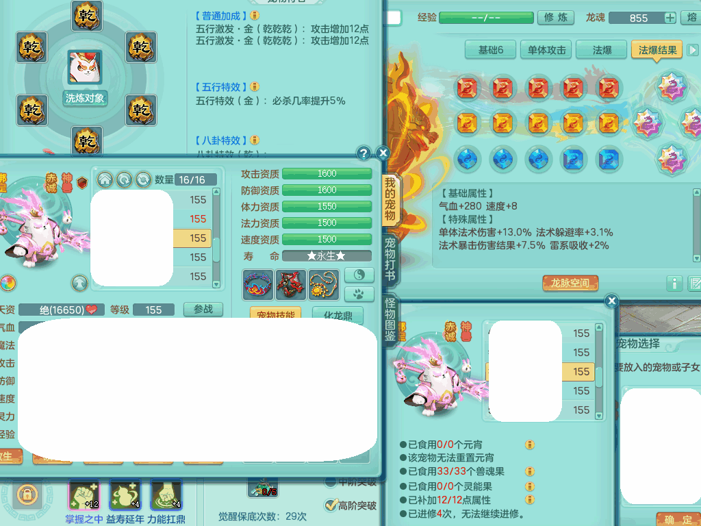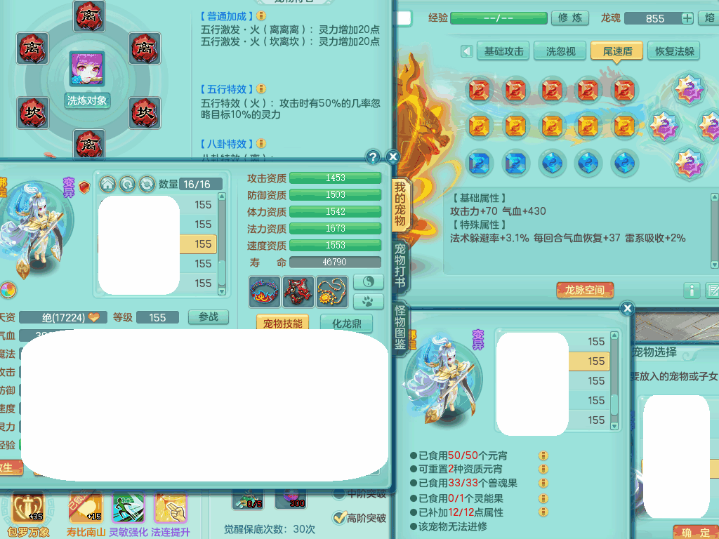 jn8405 【潜龙在渊】今年勇159女灵月山,精灵歌+舞,9龙7龙皮,3内胆神,4破镜,【16觉醒,已潜龙】,4宠皮,4位靓号,5只六技能镜子,1只六技能龙姬,3特殊(噬风,流星,灵傀),迅捷明镜单加56鞋子,有崩山单加53衣服,928狂暴单加54武器,6.0基础鼎+70攻、280血,15个格子,15个六字,4个五字,27只满果子,宠排在榜,经验修炼成就在榜,2页永久称谓,9个坐骑,暴龙泰坦+西瓜冰。2980邮箱