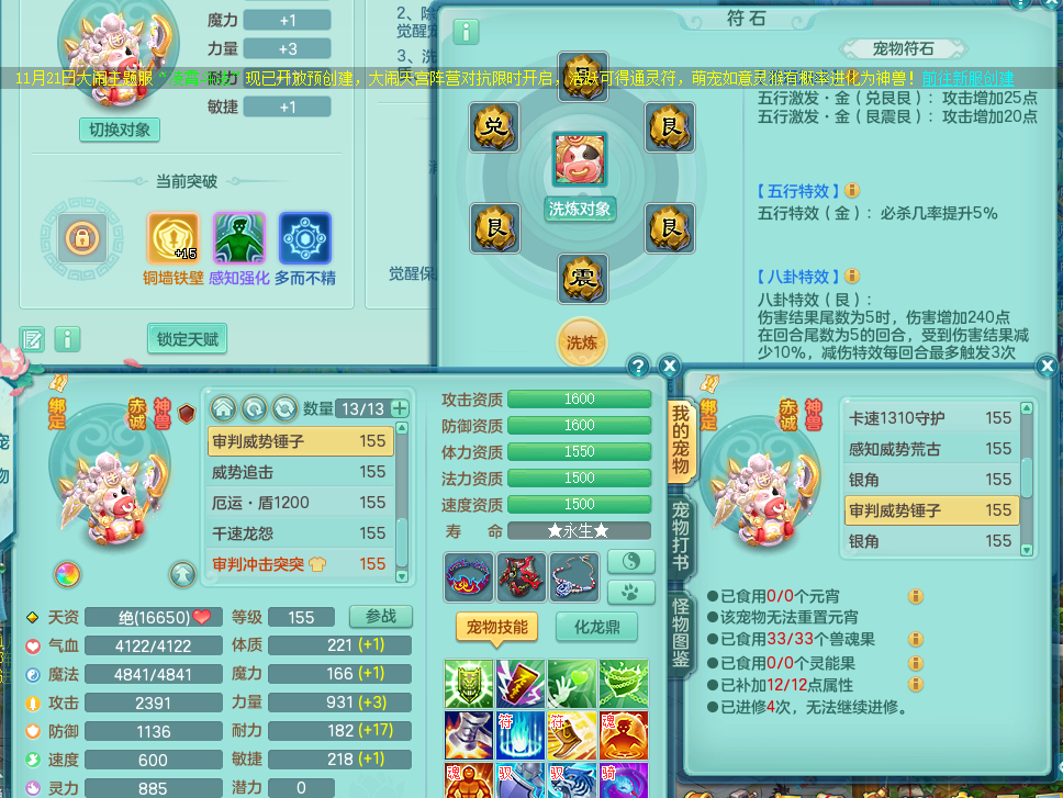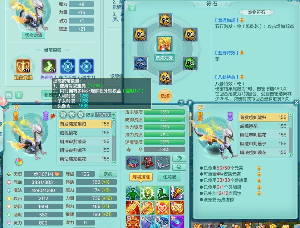 tx8416 天下无双 159 五庄转万兽了 双人坐骑 精灵歌 满星穹 4.5化龙鼎 月卡61天 4个镜花,1个红心6技能龙姬 1内神 特殊(生命、荒古、勇猛、噬风斩) 2觉醒 1个真6字 7+满果子 号上带650万神武币 QQ邮箱