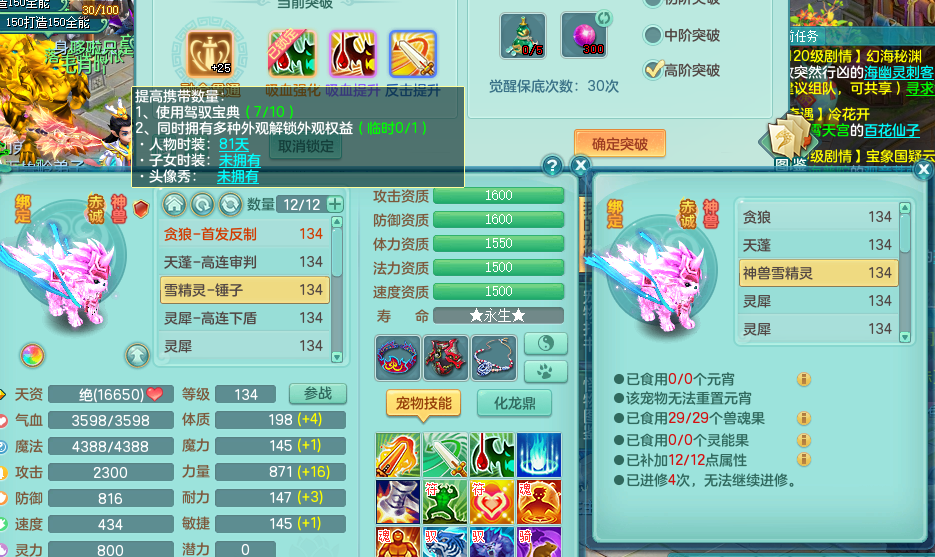 tx8418 天下无双 129 万兽 双飞坐骑 精灵舞+悟 满星穹 4.0化龙鼎毕业 1龙无内 1内神 5觉醒 2个真6字 5+满果子 2980邮箱