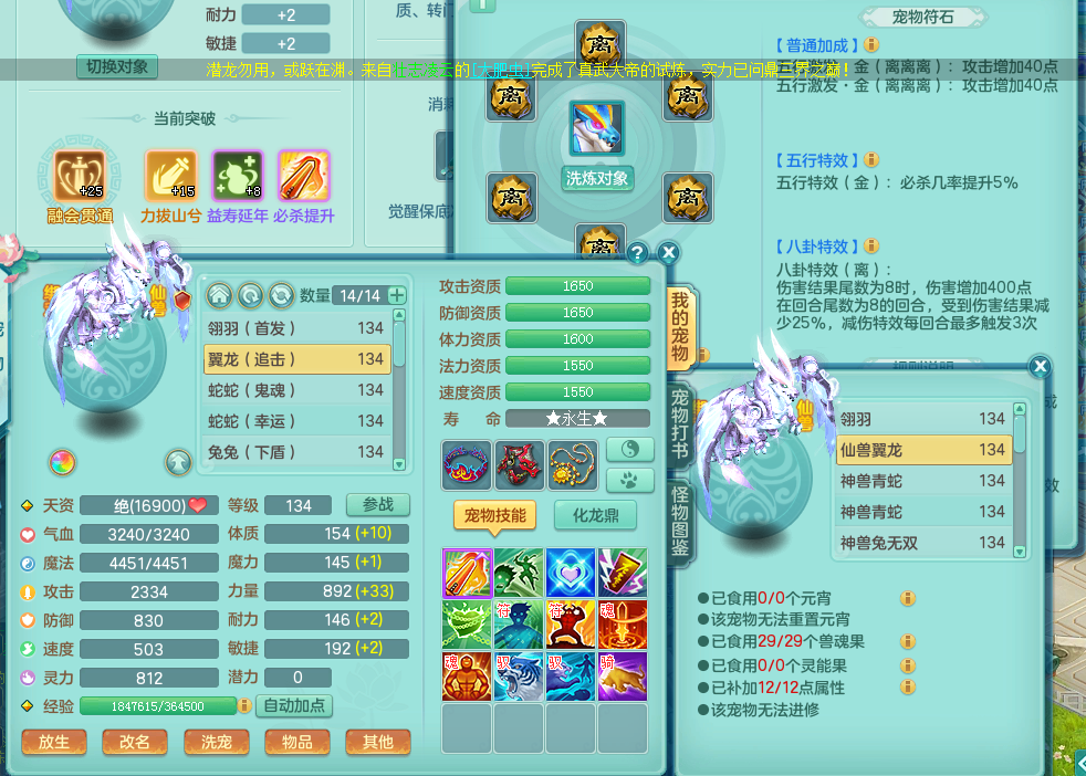 cy8434 【潜龙在渊】 彩云追月 129 天策 双人坐骑 精灵歌 满星穹 4.0化龙鼎毕业 月卡122天 1内龙 3内神 4宠物皮肤 8觉醒 7个真6字 13+满果子 QQ邮箱 有双重