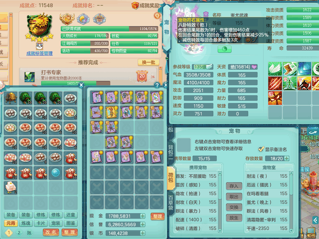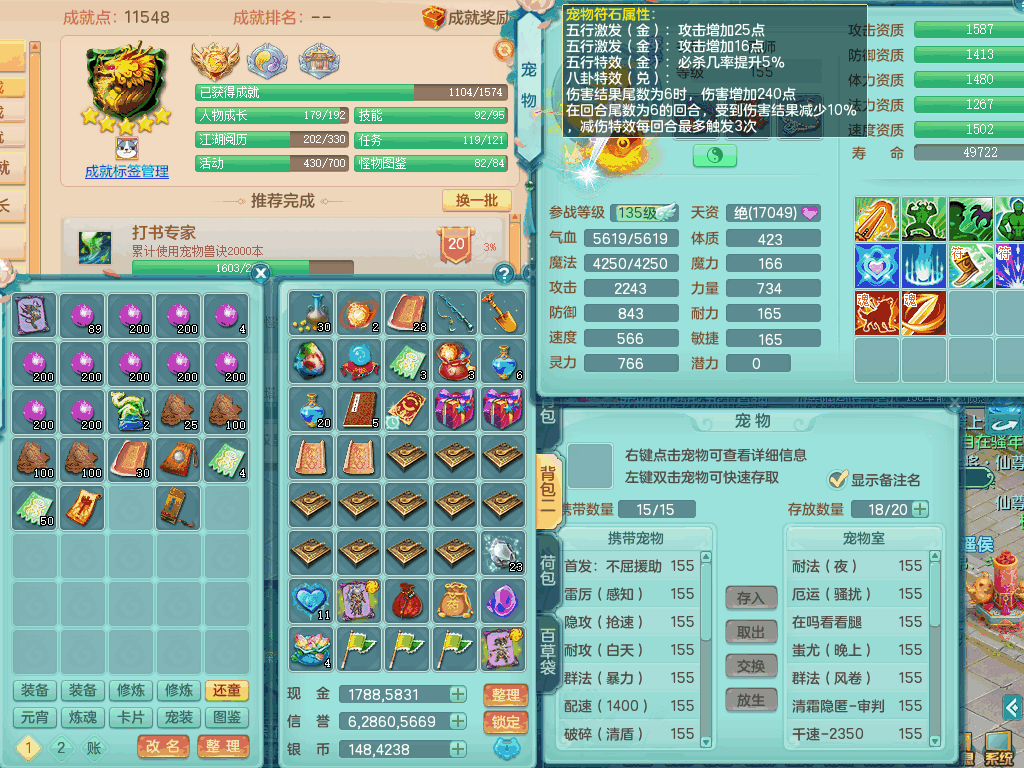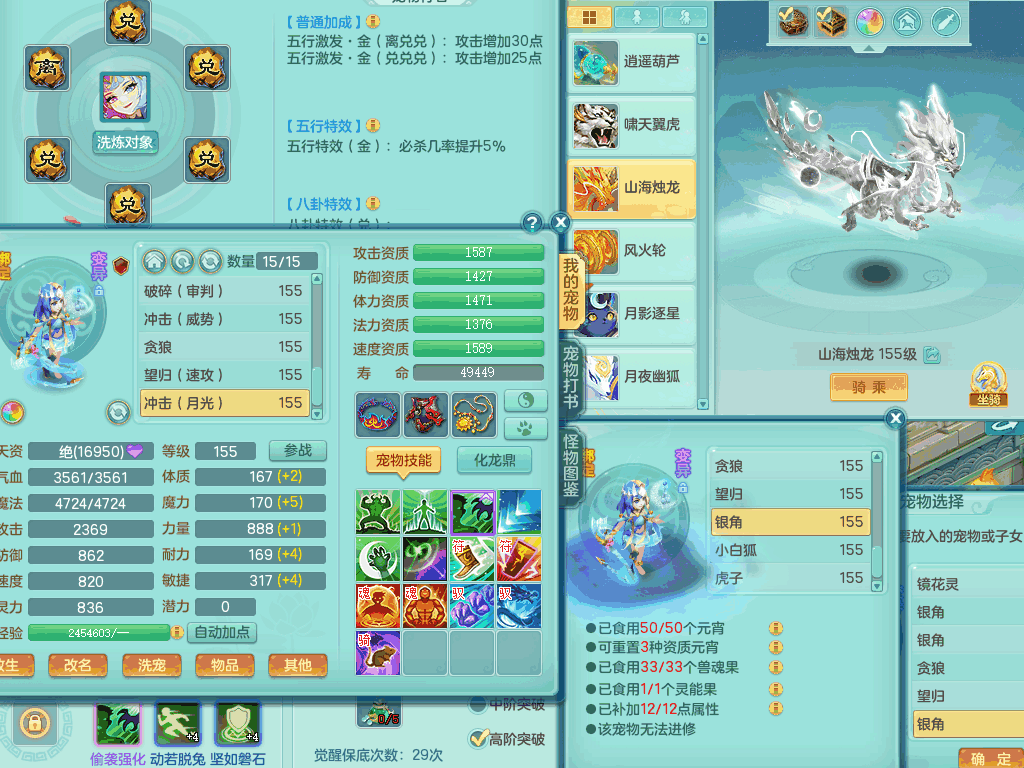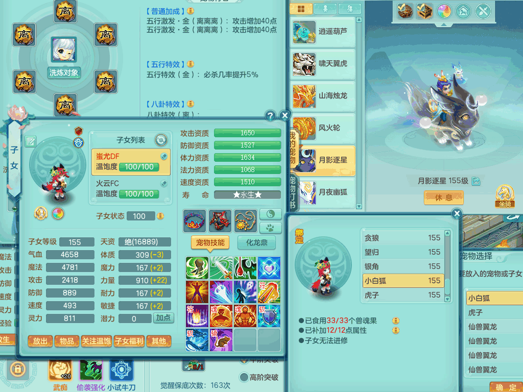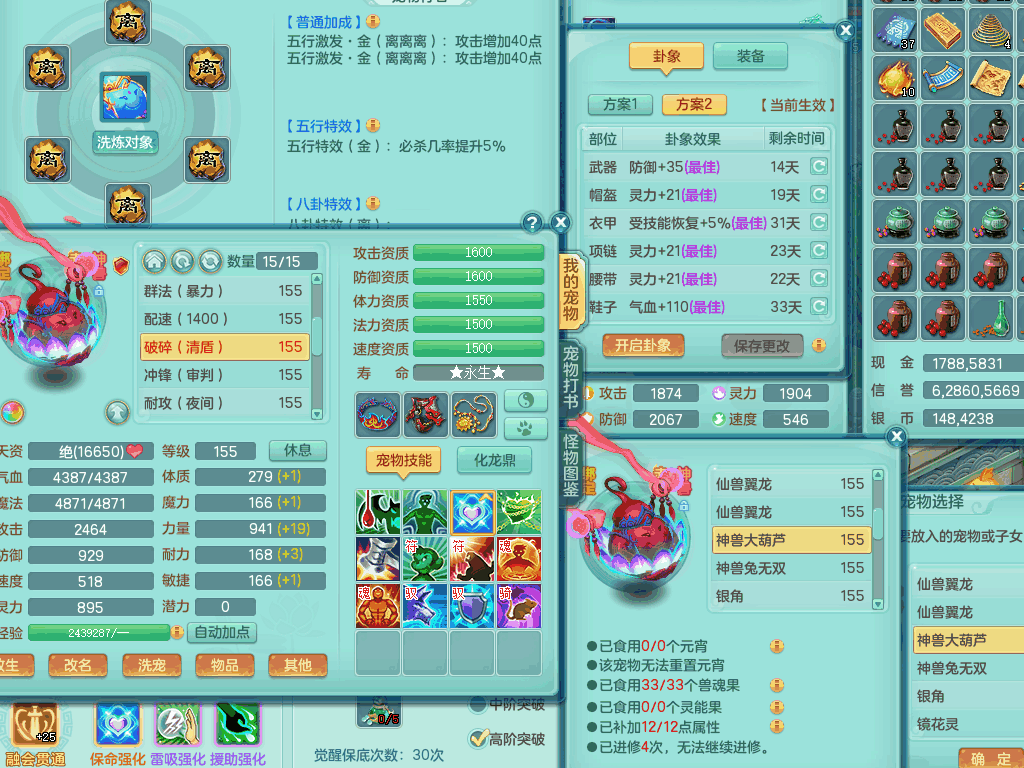 tx8441 天下无双159男龙宫,双精灵舞+盾,6龙3内胆神,2破镜,【9只觉醒,已潜龙】,8位靓号AABBAABB,10宠皮,2特殊(锤子,月光),2只六技能镜花灵,18段三红匠心易成长群疾衣服,5.5基础鼎+70攻+280血,15个格子,11个纯六字,2个五字,25只满果子,宠排在榜,经验修炼在榜,5个坐骑,带48天月卡。 2980邮箱