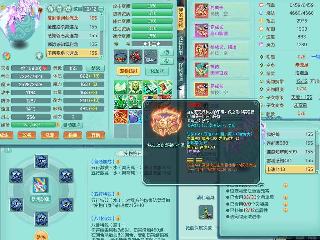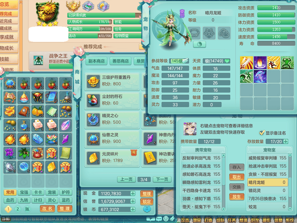 tx8465 【潜龙在渊】天下无双159男五庄【潜龙号+龙皮】精灵舞,4字靓号,5龙(换)1龙皮3内(1青蛇)6皮3特殊(羽袭/堕天/风卷)2镜花灵,18只满果子8觉醒11个纯6字,顶尖物理装备10红,单加Y崩山武器,单加53Y头,单加53Y格挡衣服,神佑四海项链,单加53Y腰带,迅捷破血鞋,18天月卡,冰晶庭院176房屋158,永久外观,精灵皮肤,70果子,677W神武币,4324金币,宠排在榜,6坐骑(4只双人)带152万兽,923匠心Y武器,单加50Y头,单加崩山衣服,单加52Y腰带,Y鞋 163邮箱