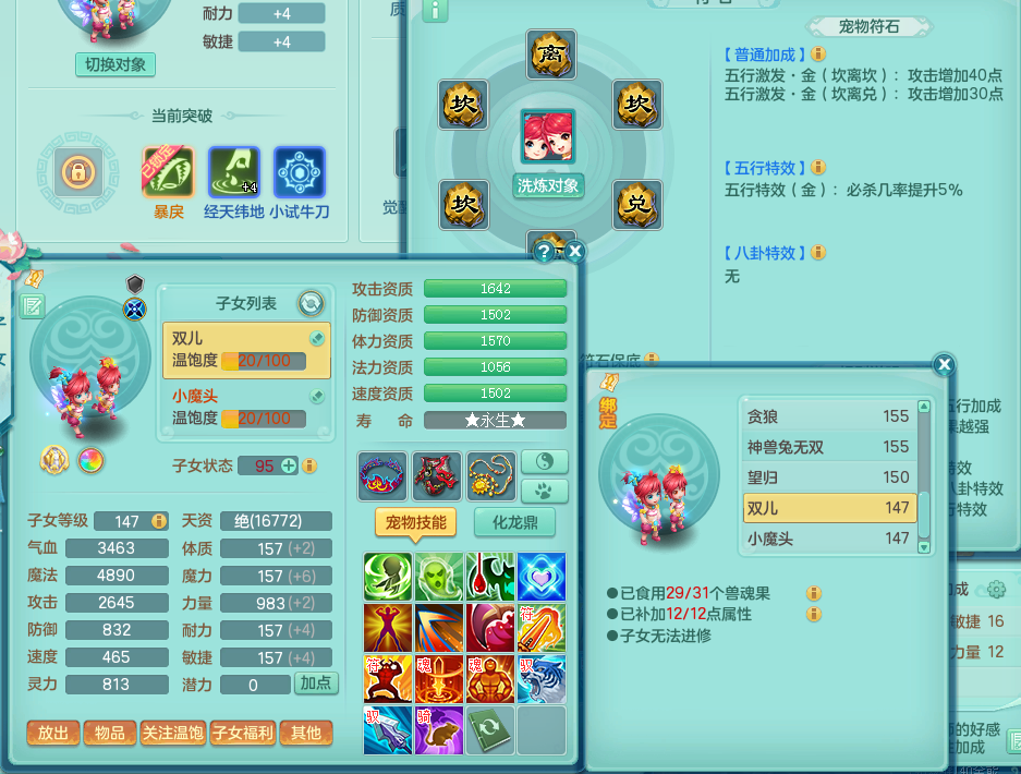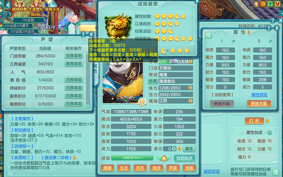 tx8472 天下无双 159万兽 崩山衣服 神佑链子 易成长 头盔 腰带 鞋子 综合5+满果子 1镜子 1觉醒 精灵歌 5.5基础+7.5法爆鼎 背包全开 2980邮箱