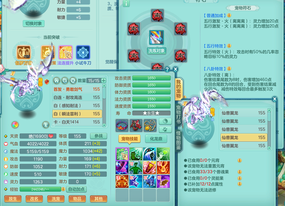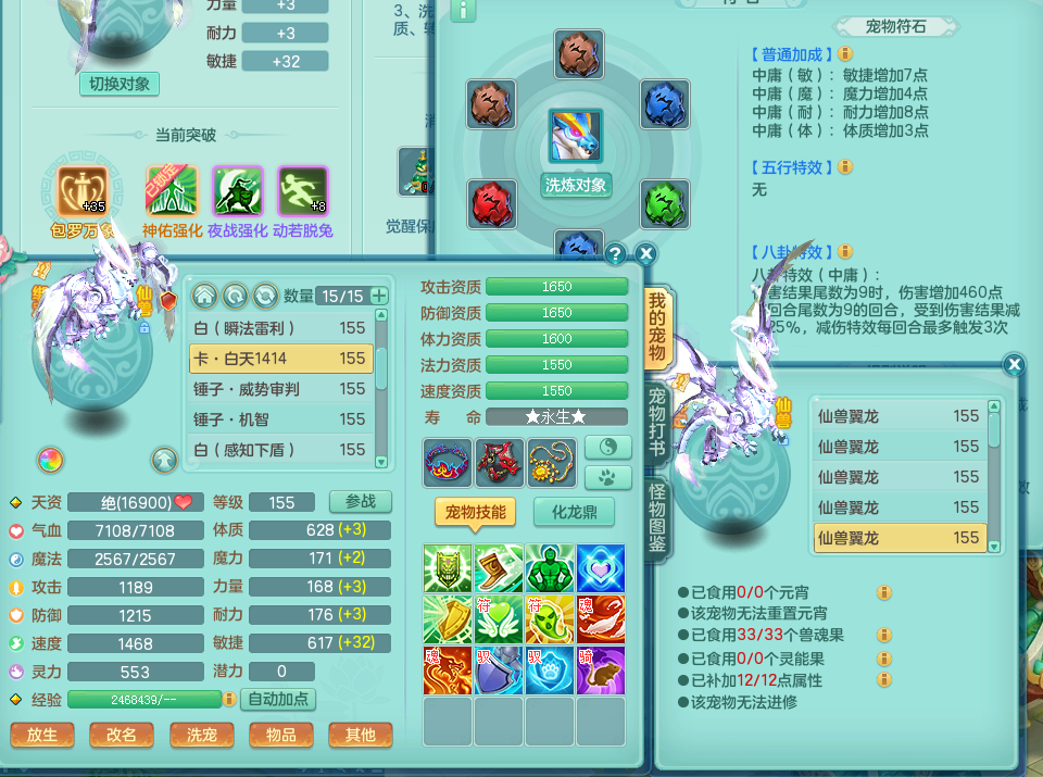 jx8479 【潜龙在渊】 锦绣河山 159 五庄 双飞坐骑 精灵歌 满星穹 6.0化龙鼎毕业 带11000金币 15格子 5内龙 2内神 2宠物皮肤 8觉醒 7个真6字 17+满果子 2980邮箱