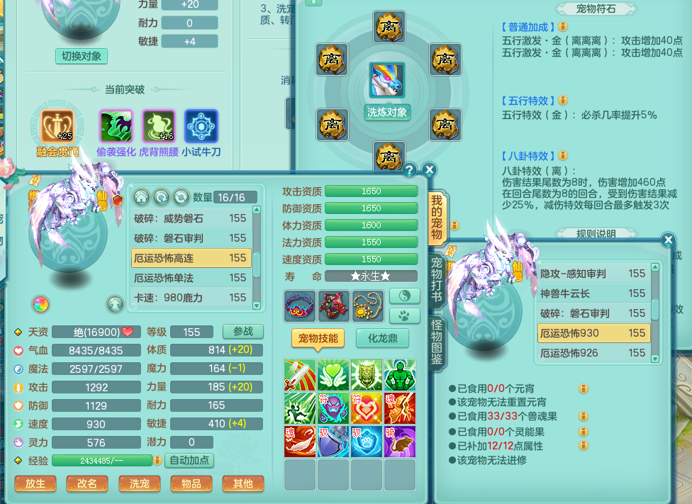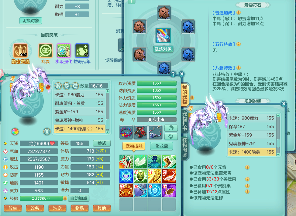 fc8482 【潜龙在渊】 风驰电掣 159 无名 暴龙坐骑 精灵歌+舞 满星穹 16宠物格子 6.0化龙鼎完美毕业 月卡126天 4内龙 2内神 6宠物皮肤 特殊(破碎、清霜)19觉醒 16+个真6字 20+满果子 2980邮箱