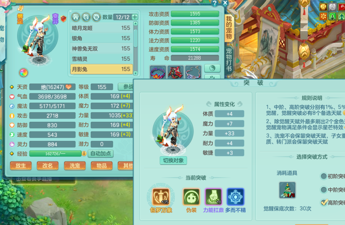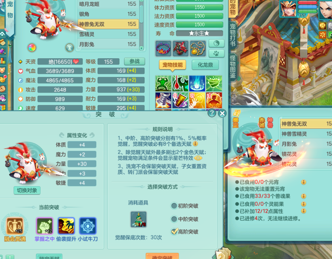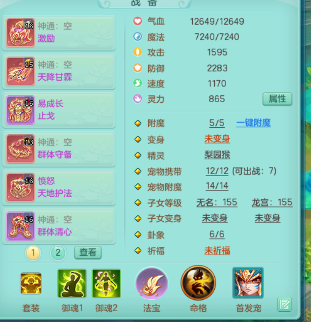 tx8504 天下无双 159无量 愤怒6特超级外观顶级实力辅助 15完美黑白染色双人特殊坐骑 9觉醒 2内神 11+满果 西瓜冰 镜子龙姬都有 化龙鼎5.5+气血280+全四级 各种毕业细节拉满该有的都有可以自己慢慢看 强化券保底差5次又可以凑一满技能镜子 仓库有各种替换 QQ不给 战盟7天