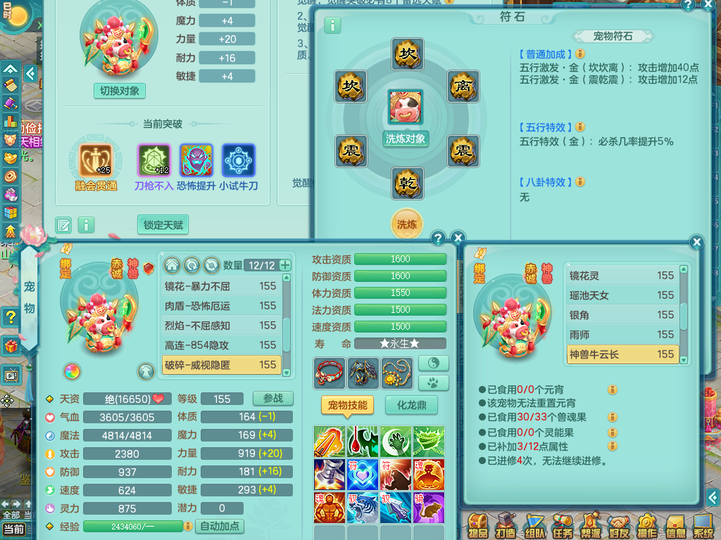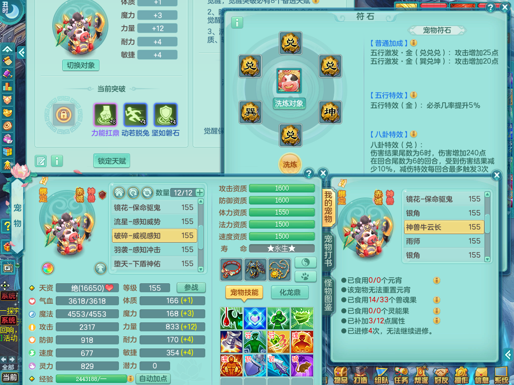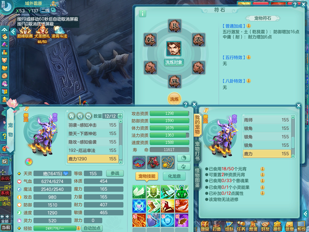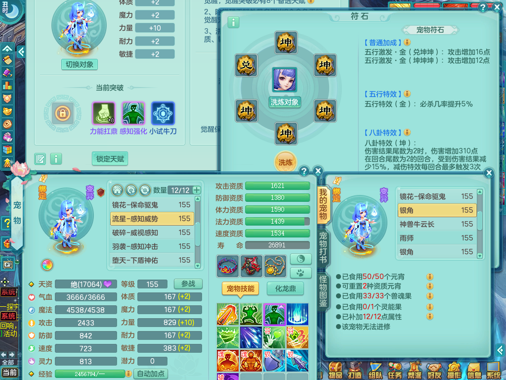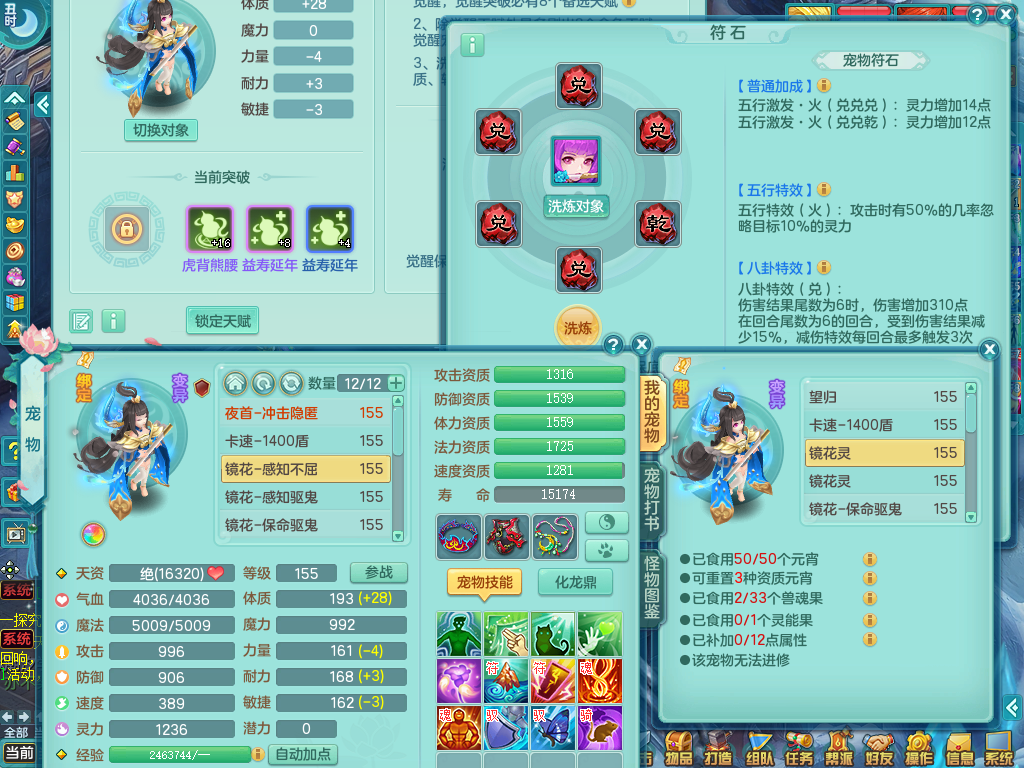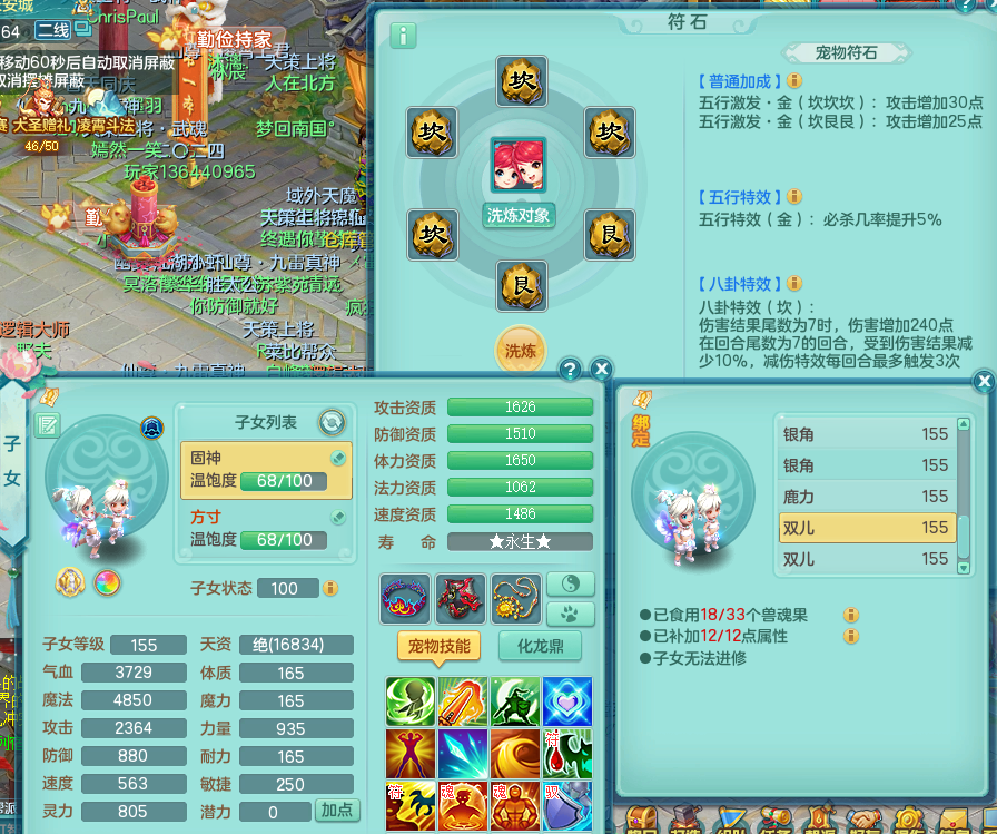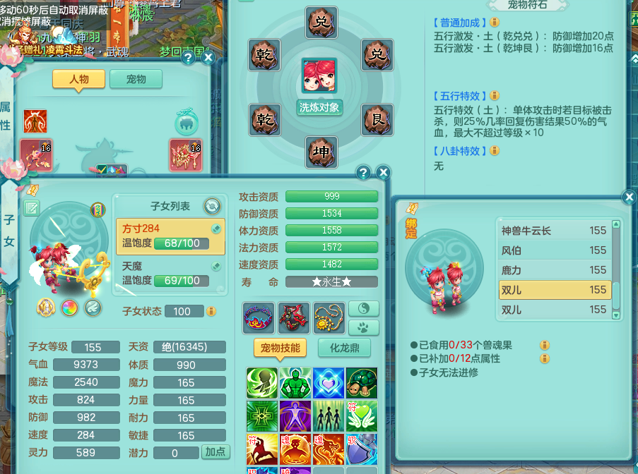 tx8512 天下无双夫妻号,159方寸,万兽 ,多只1621高成长银角。精灵歌力天魔,5特殊,(战争号角,堕天,流星,虎虎生威,羽袭)。双红926攻必杀激励武器,双红鞋子,。双人黑白老虎,万兽 精灵舞,1特殊烈炎 焚心,5.0 5.5鼎带双人坐骑物理装备基本成型,都是高属性单加易成长,套装齐。庭院双150。 2980邮箱