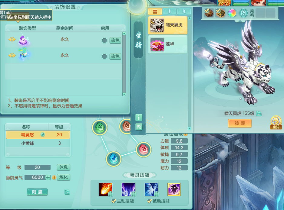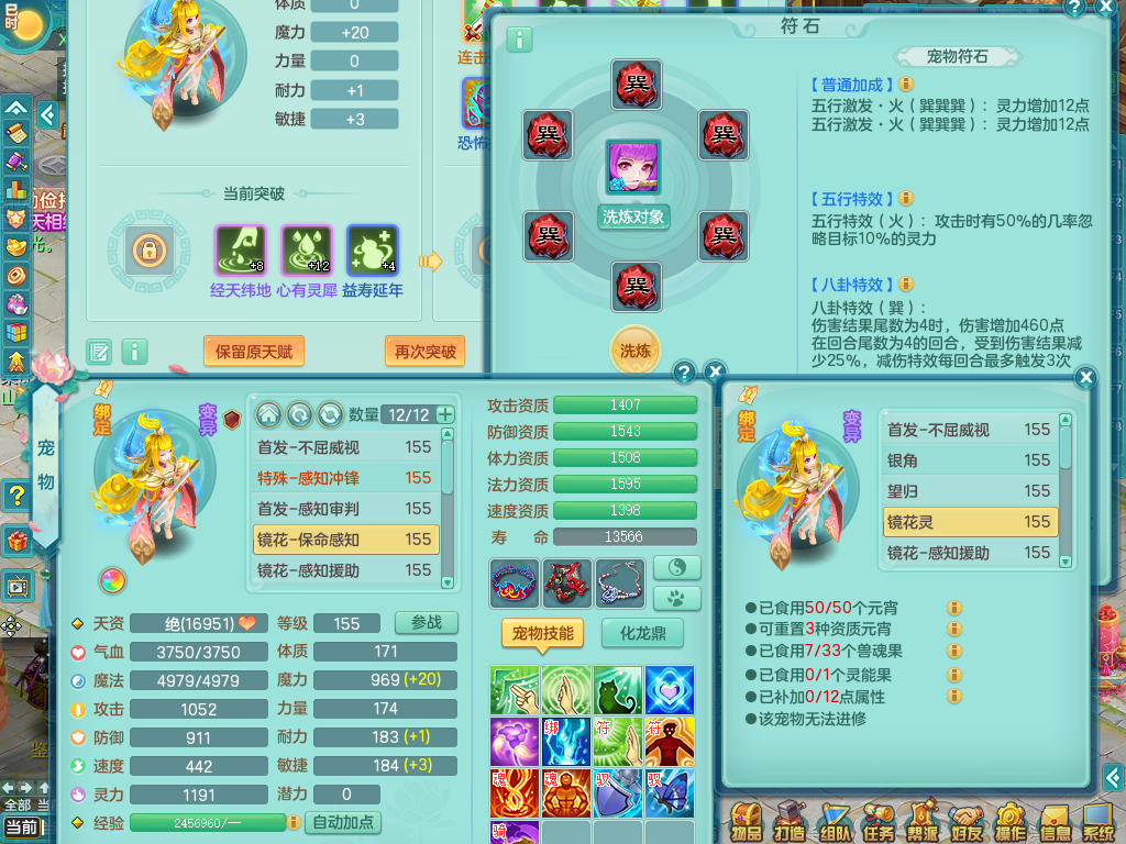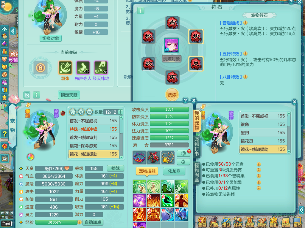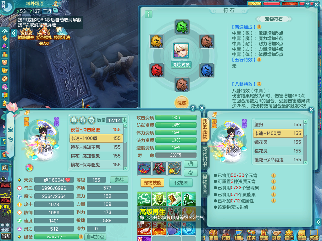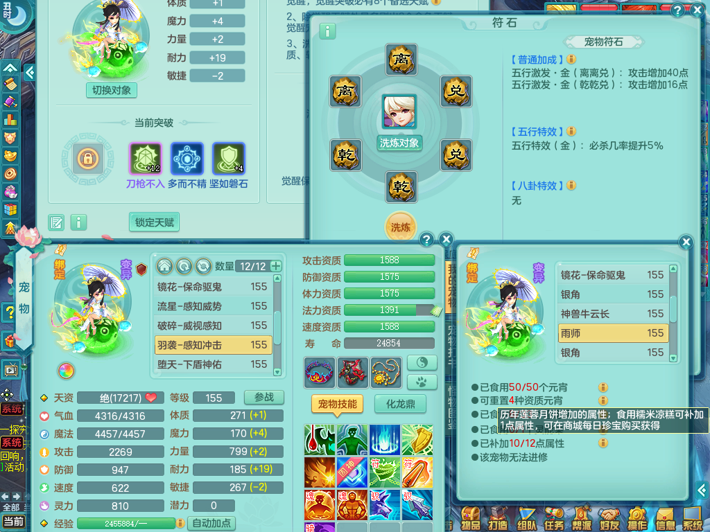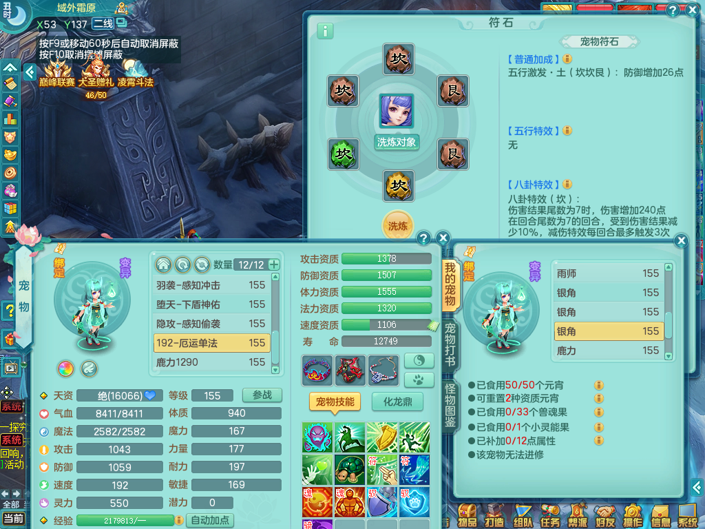 tx8512 天下无双夫妻号,159方寸,万兽 ,多只1621高成长银角。精灵歌力天魔,5特殊,(战争号角,堕天,流星,虎虎生威,羽袭)。双红926攻必杀激励武器,双红鞋子,。双人黑白老虎,万兽 精灵舞,1特殊烈炎 焚心,5.0 5.5鼎带双人坐骑物理装备基本成型,都是高属性单加易成长,套装齐。庭院双150。 2980邮箱