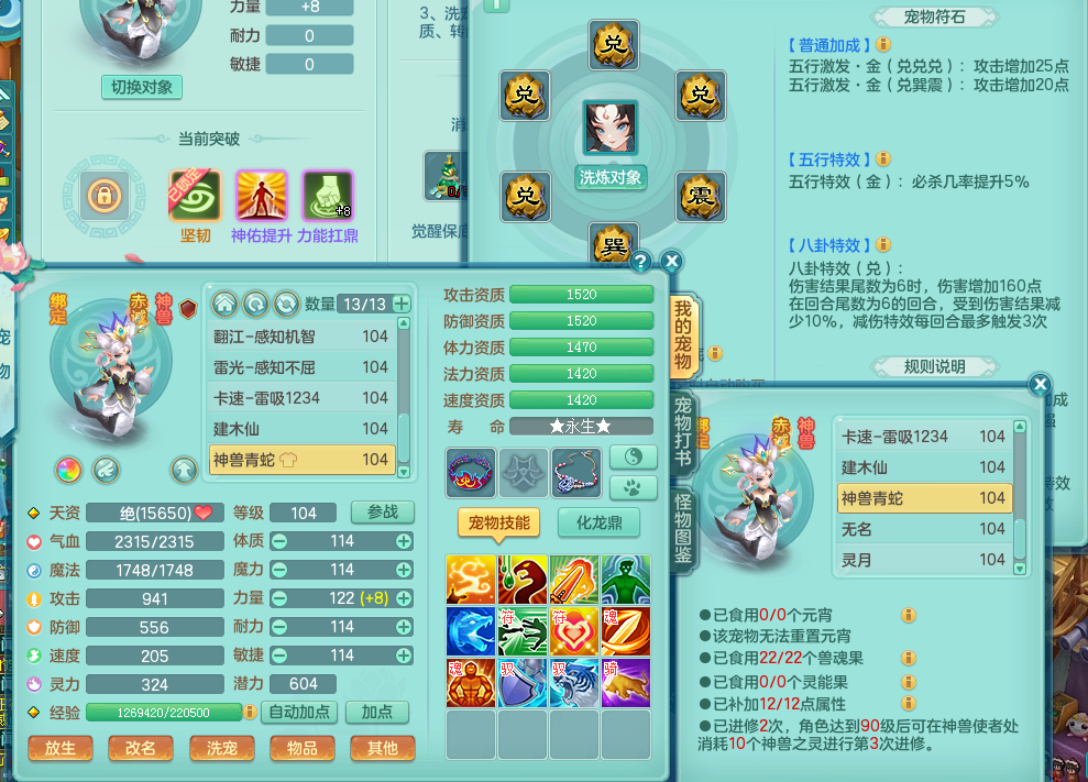 jn8532 【潜龙在渊】 今年勇 99 万兽 4位靓号 双飞坐骑 满星穹 3.0化龙鼎毕业 月卡146天 2龙1内 2内神 2宠物皮肤 8觉醒 8个真6字 15+满果子 2980邮箱